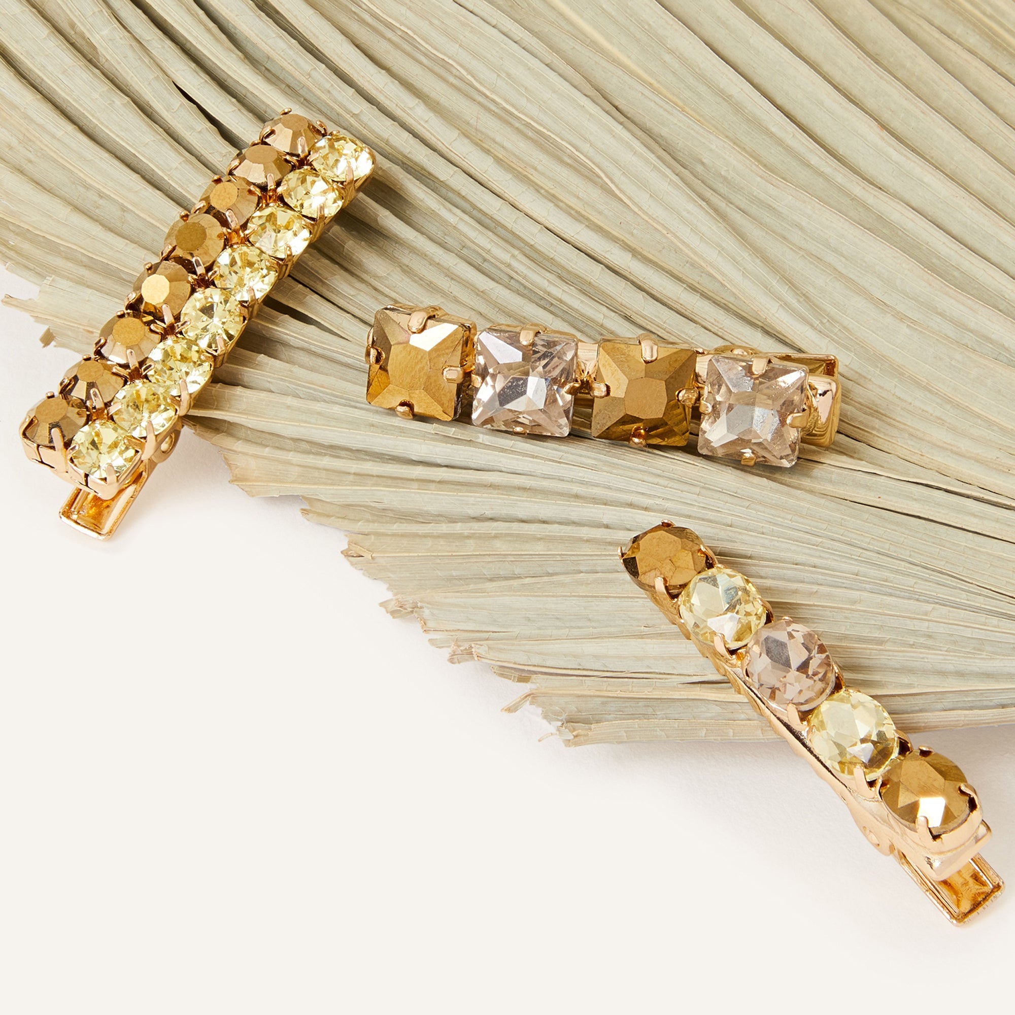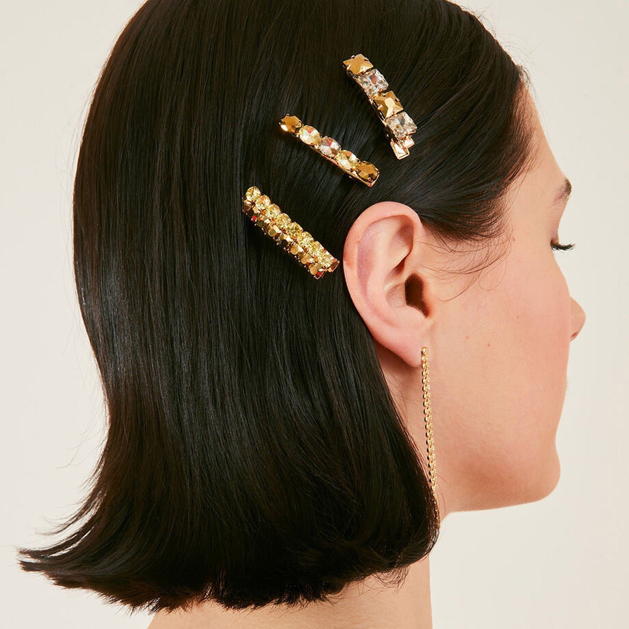 Gold Mixed pearl hair slides set of 2 Accessorize London Women's Gold Mixed pearl hair slides set of 2