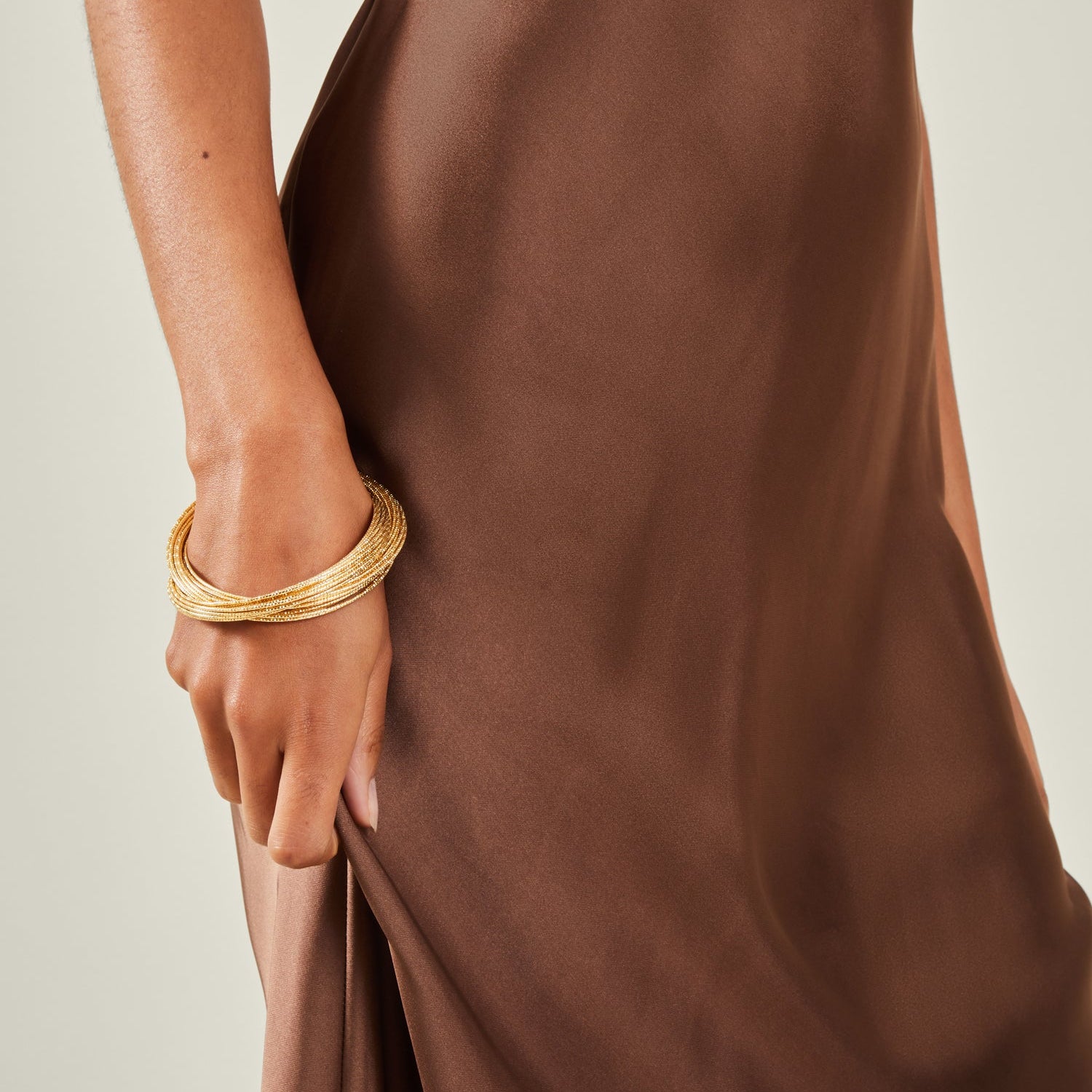An essential component of every woman's jewellery collection, a gold plated bracelet bestows an air of classic sophistication while still retaining its eternal allure. Our gold-plated bracelets for ladies include various styles, such as traditional chains, intricate bangles, and layered and modern cuffs. Each hand bracelet in our collection is created from high-quality gold to give the wearer an air of opulence.
