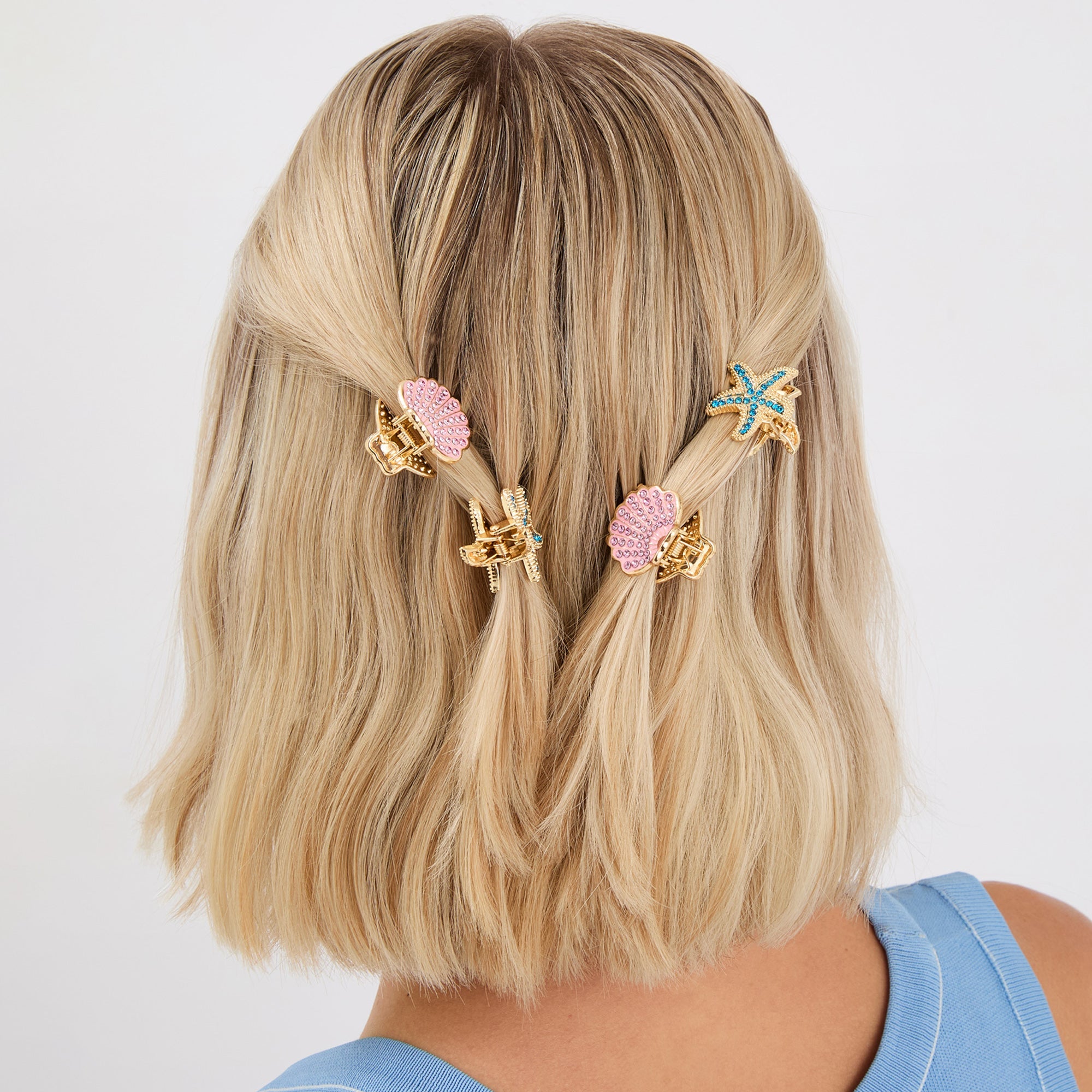 Set Of 4 Mini Gem Starfish Hair Claw Clip