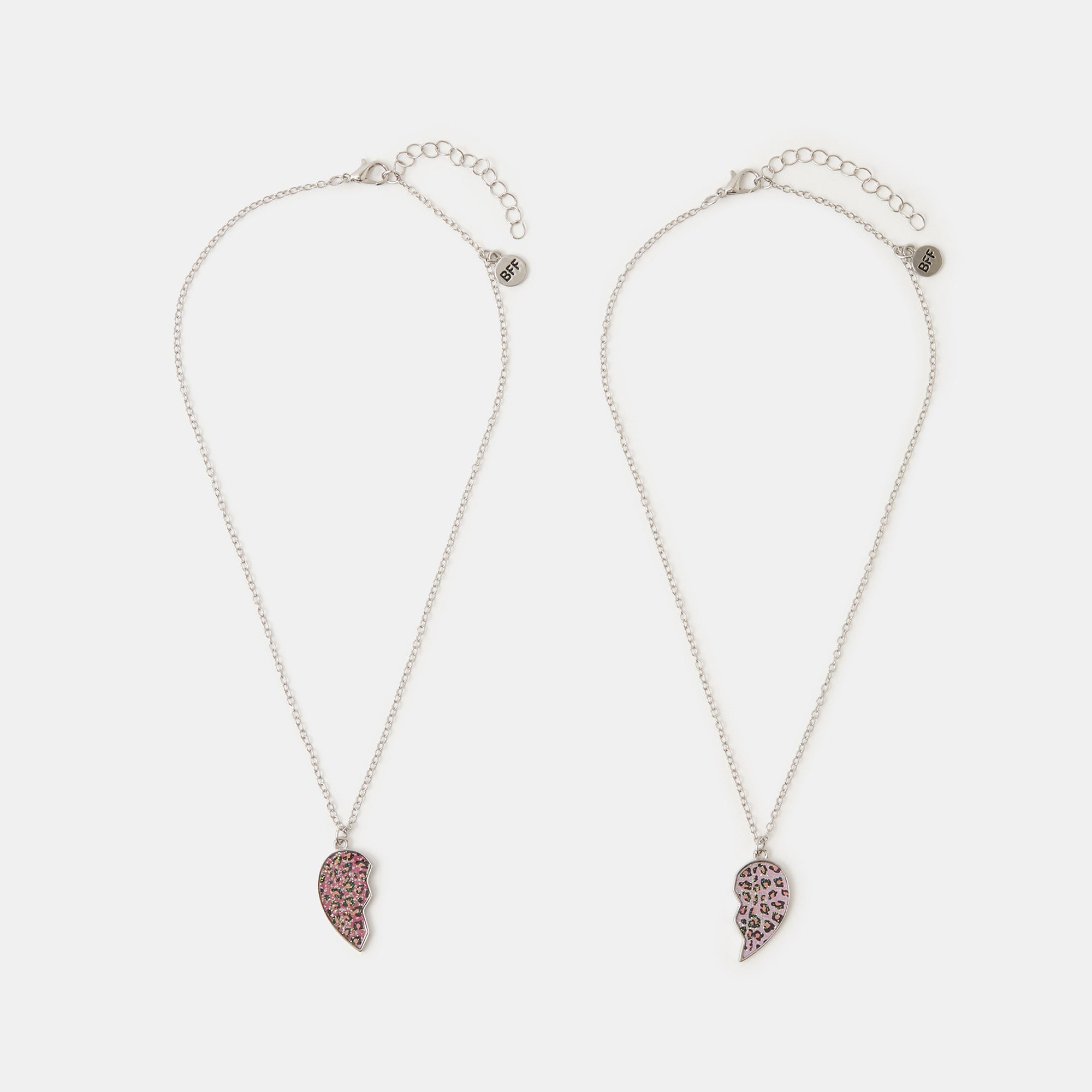 Kids Leopard Print Heart Friendship Necklaces Set Of 2