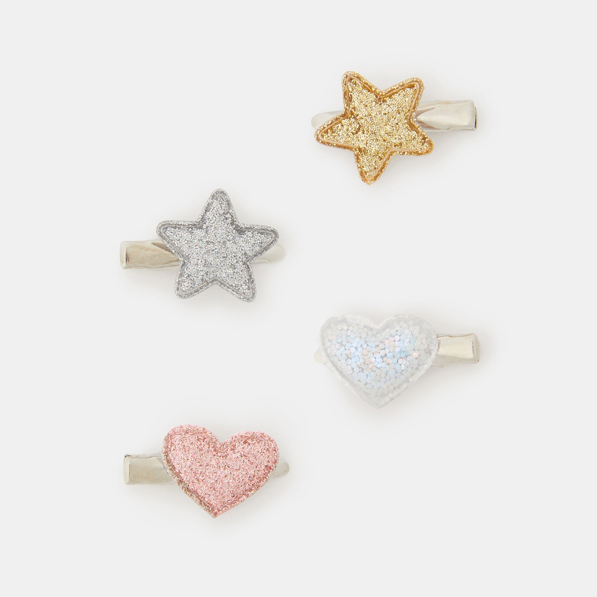 Kids Glitter Star Heart Hair Clips Set Of 4