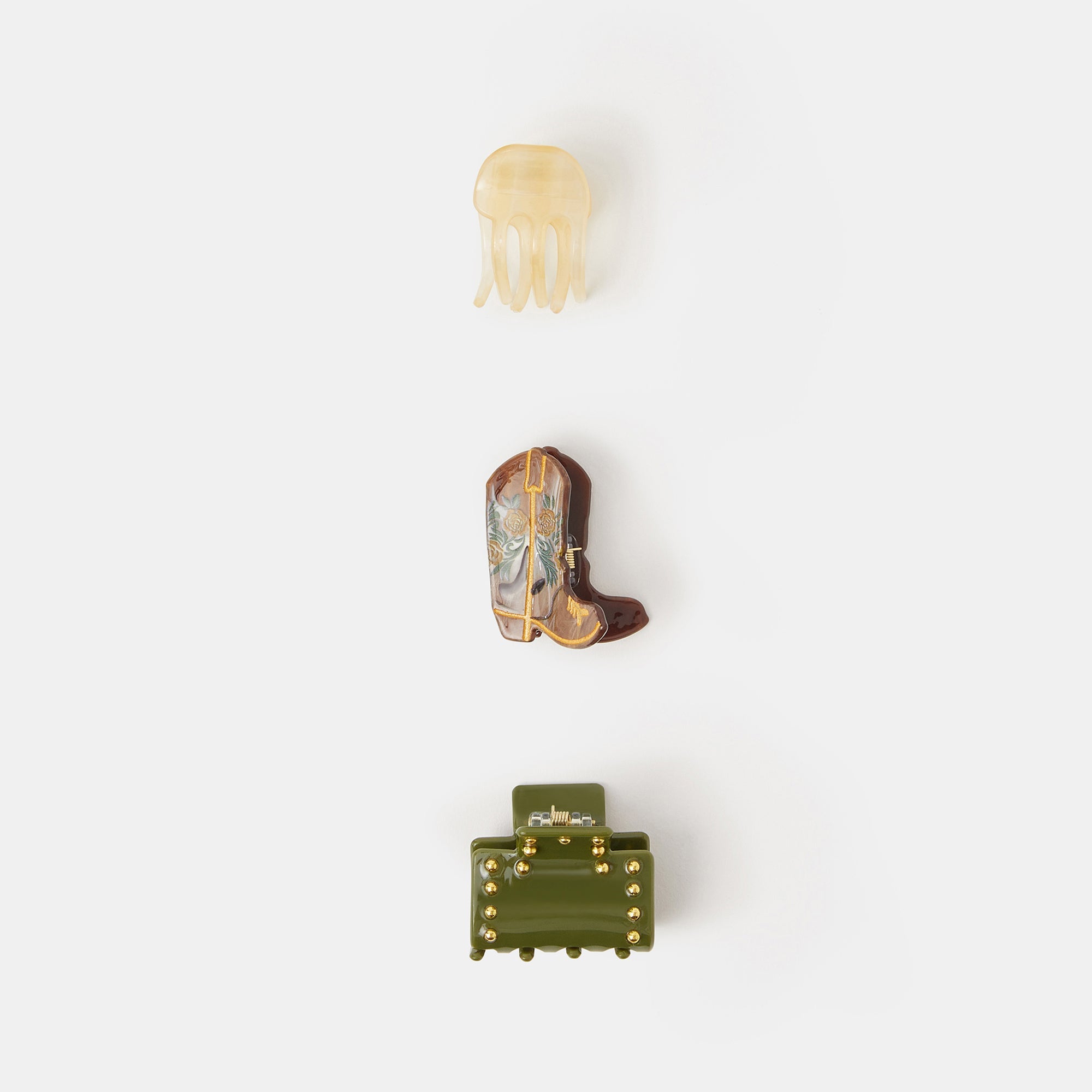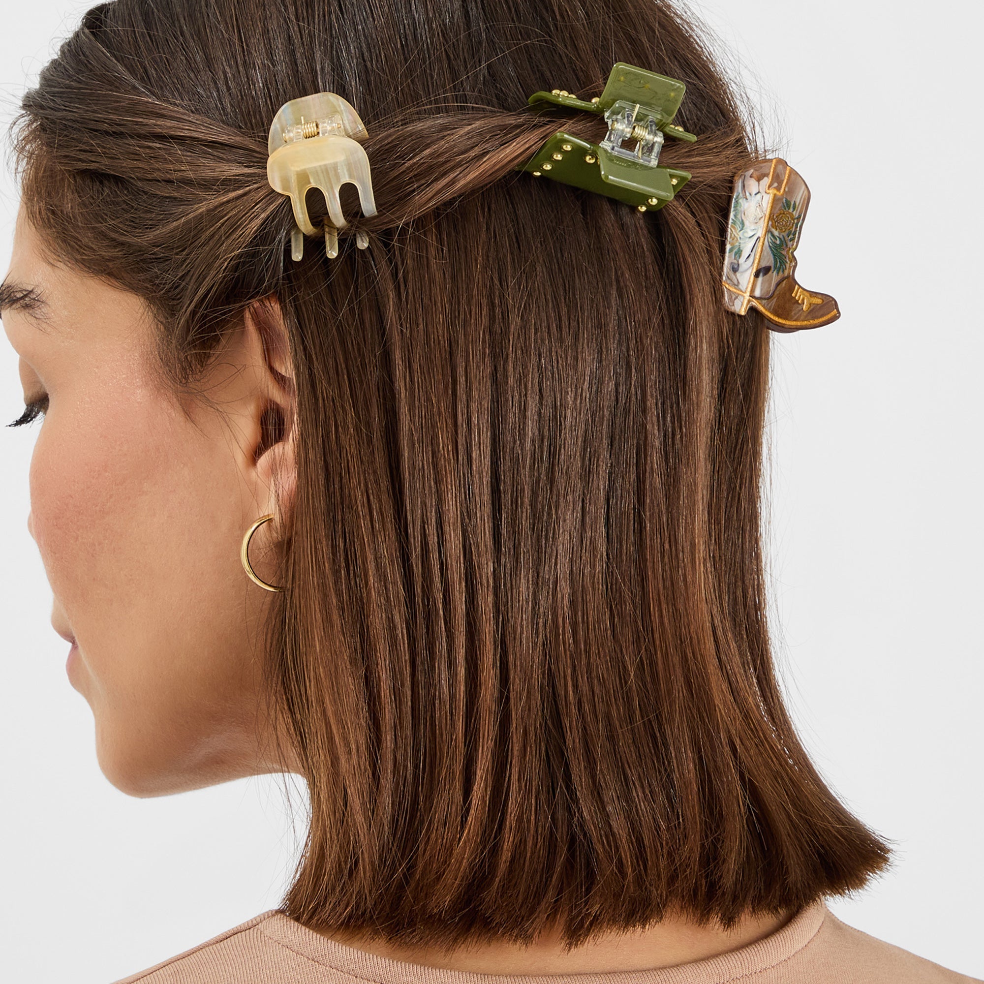 Set Of 3 Mix Cowboy Stud Hair Claw Clips