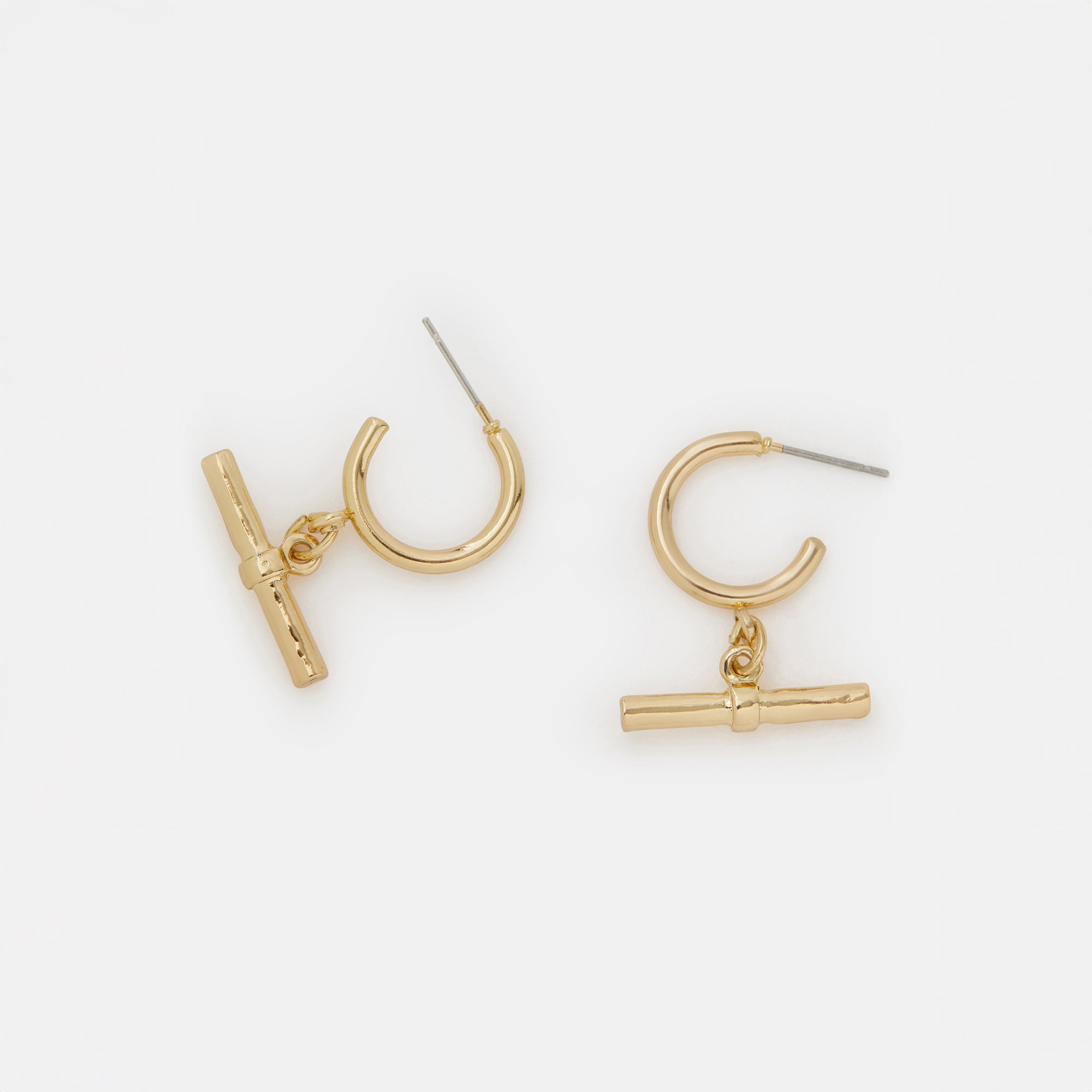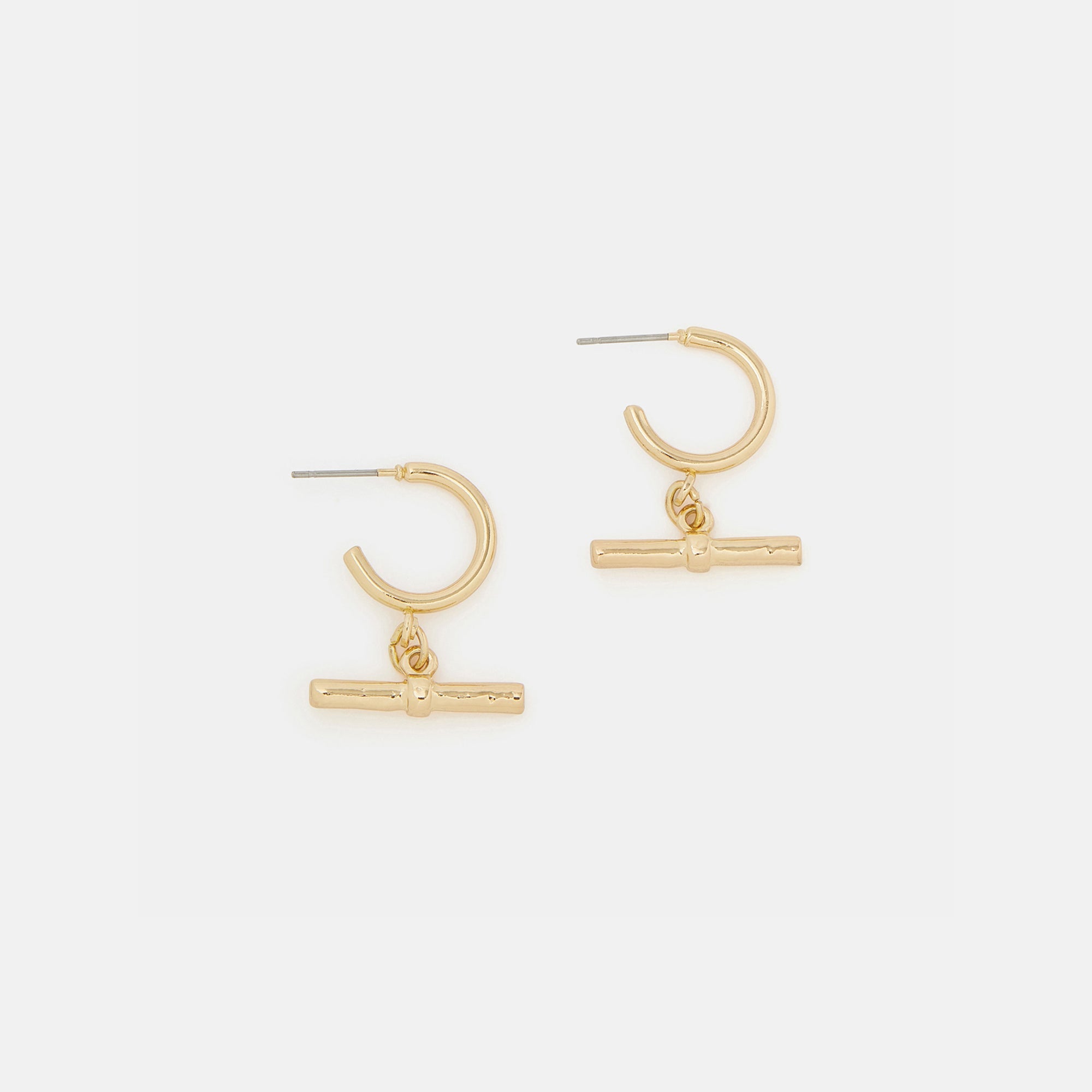 Waterproof Gold-Plated Accessorize Gold Tone Stainless Steel T-Bar Hoop Earrings