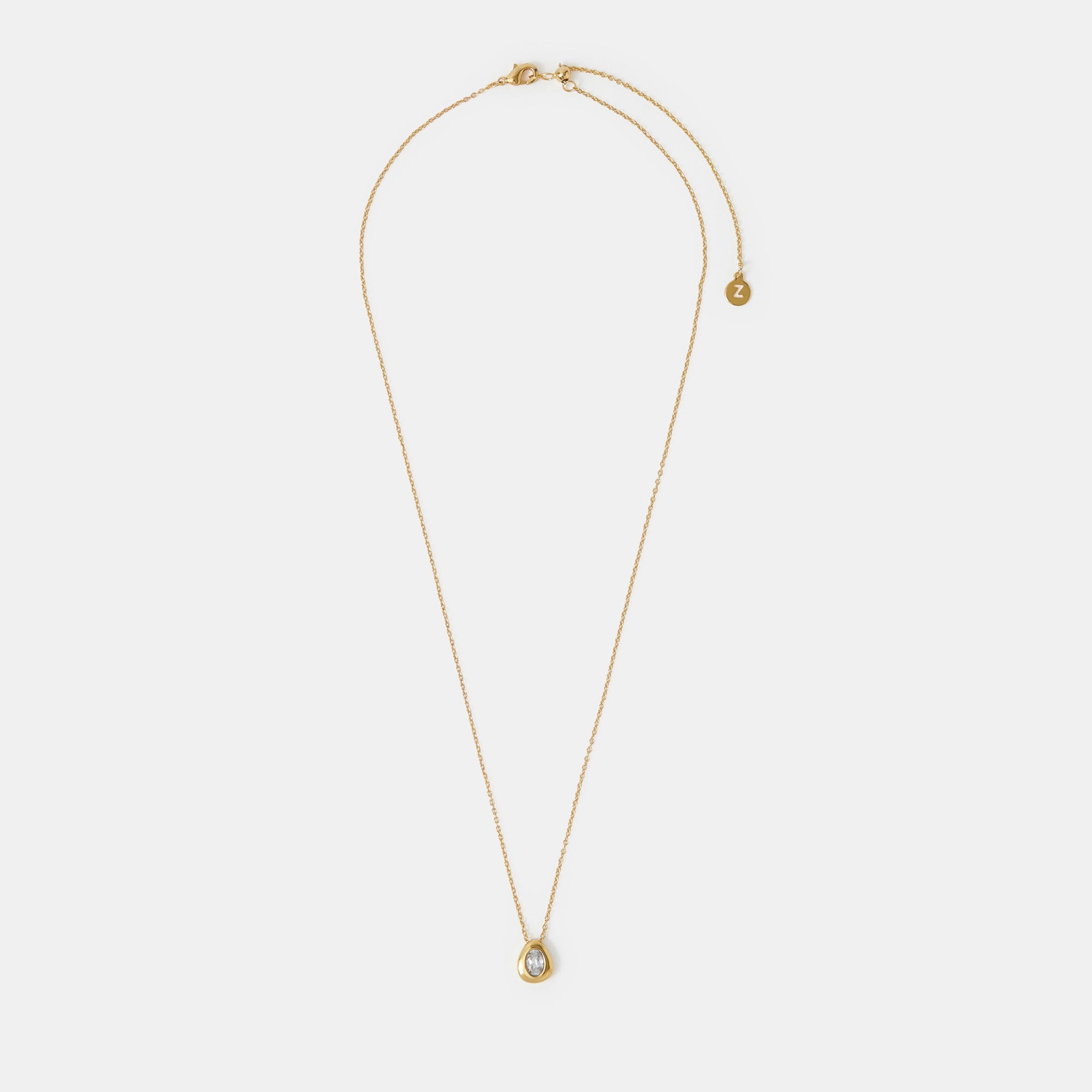 Showcasing a sculptural teardrop pendant with an oval crystal at the centre, this necklace is a dazzling addition to your everyday. Fastens with a lobster clasp and extender.