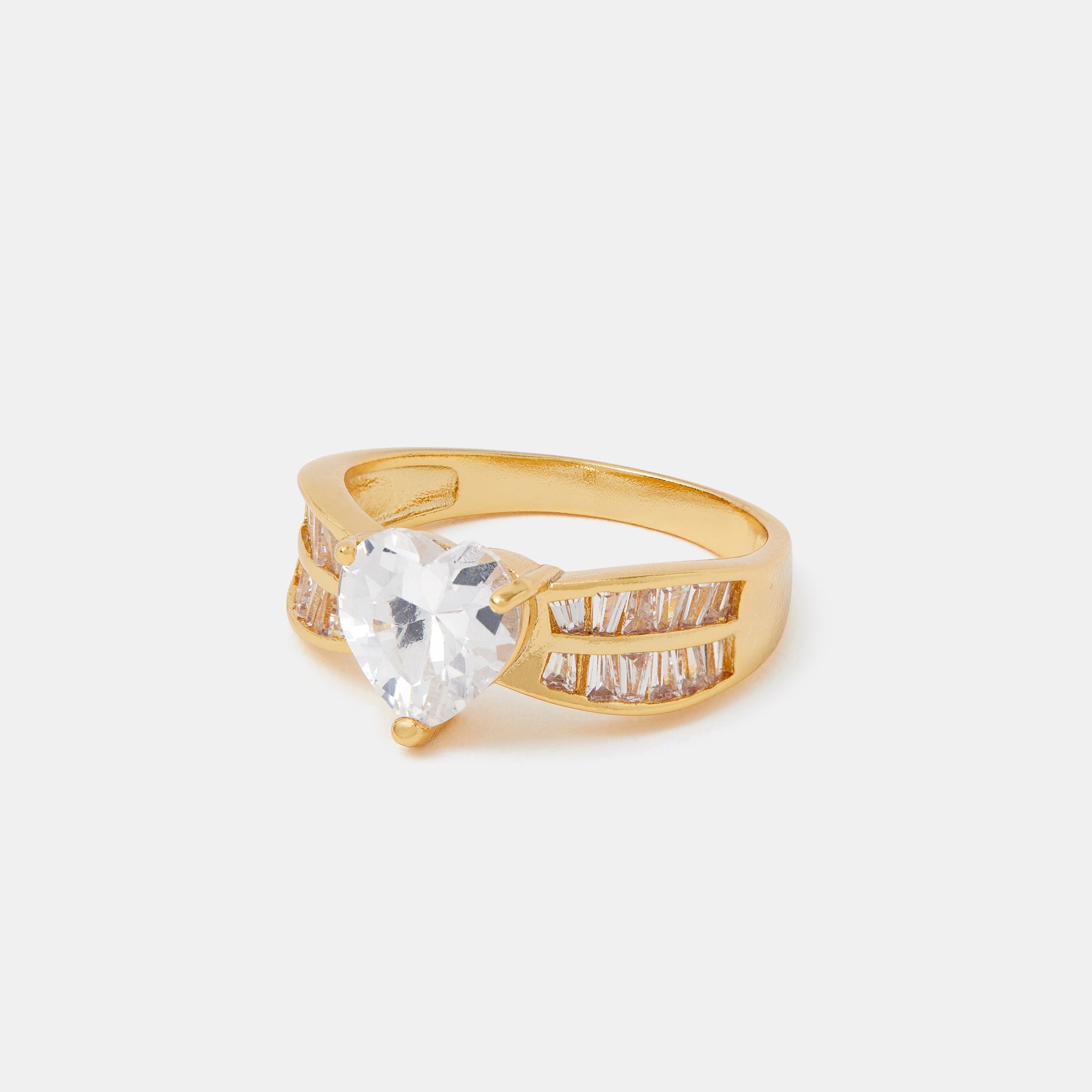 Captured your heart? This elegant ring boasts a heart-shaped diamanté at the centre, with two rows of smaller, irregular-shaped diamantés on either side to finish.