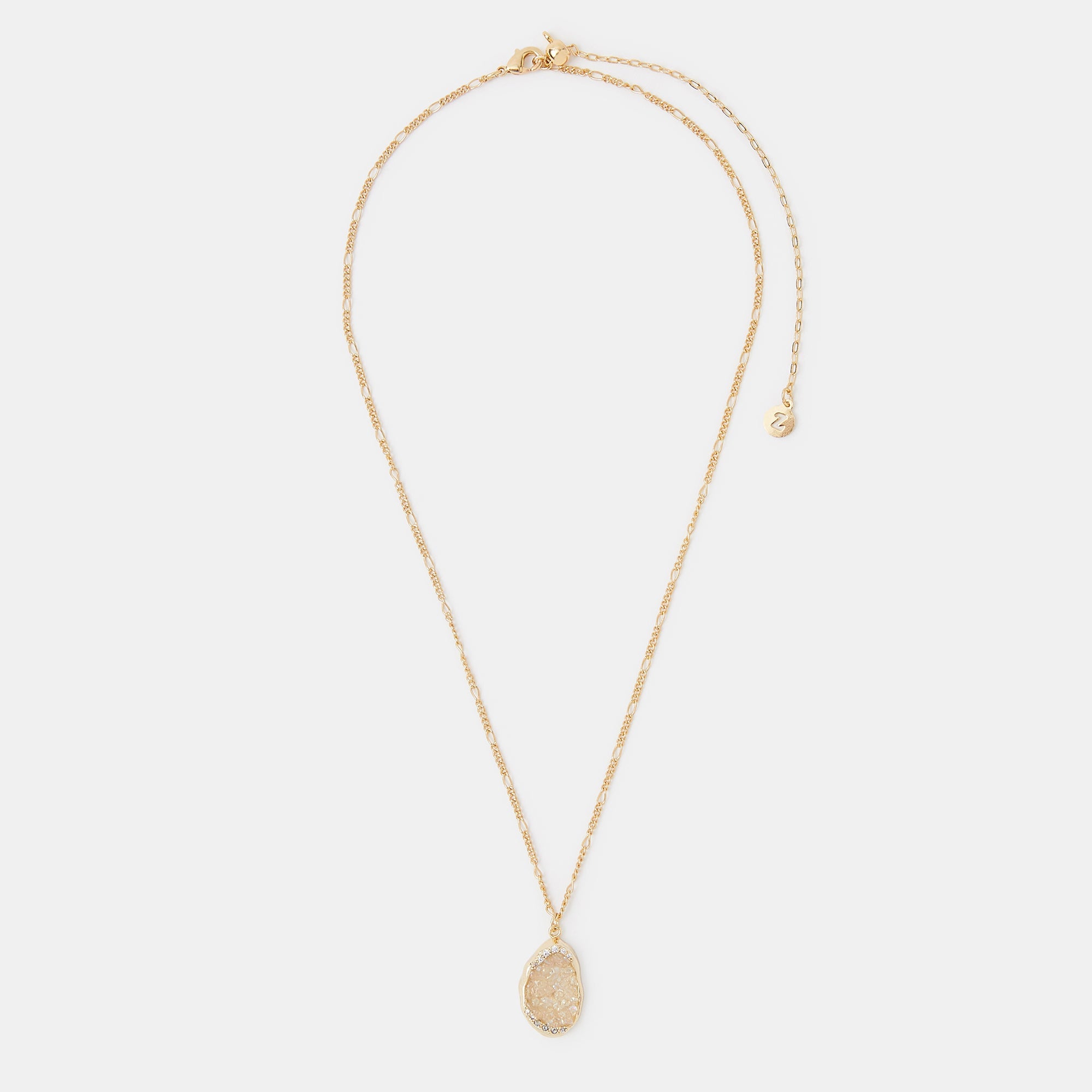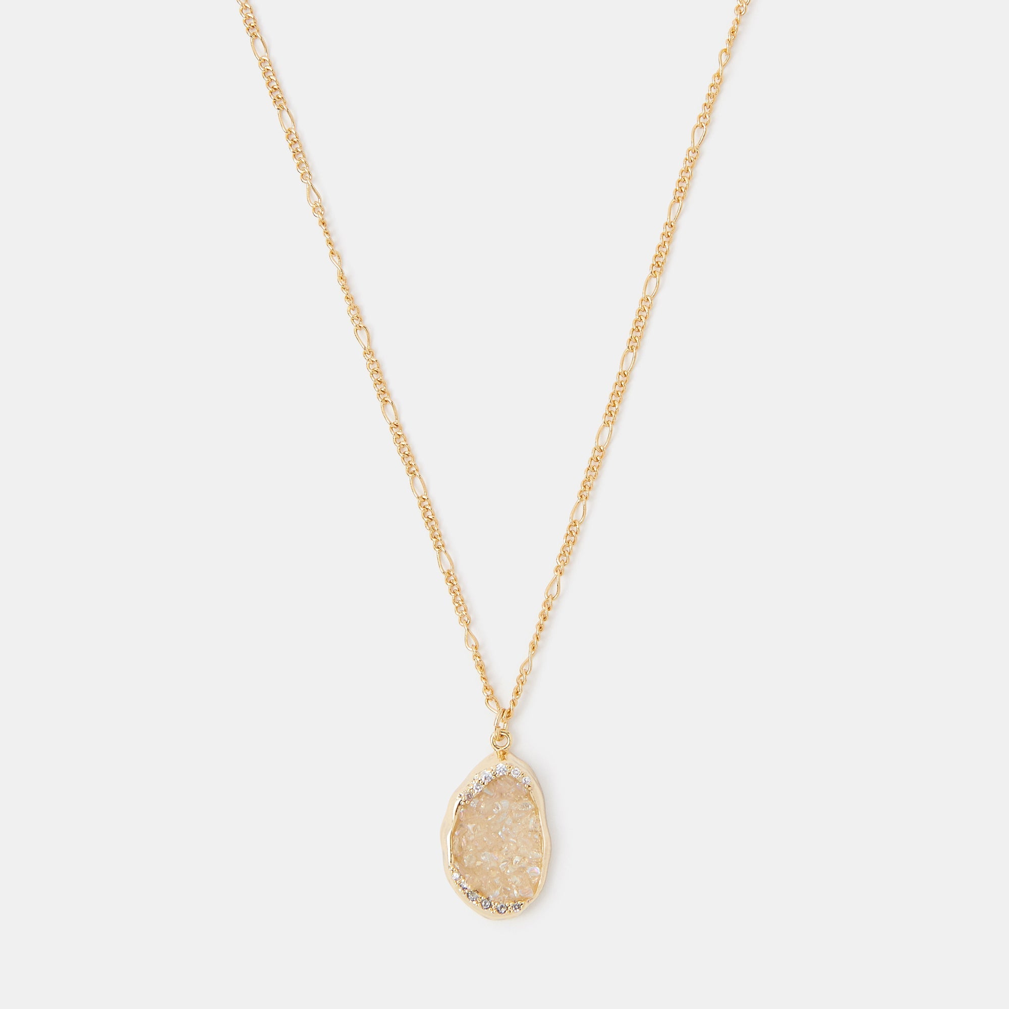 What a treasure. Perfect for special occasions, this elegant necklace showcases a drusy pendant with shimmery diamantés to finish. Fastens with a lobster clasp and extender.