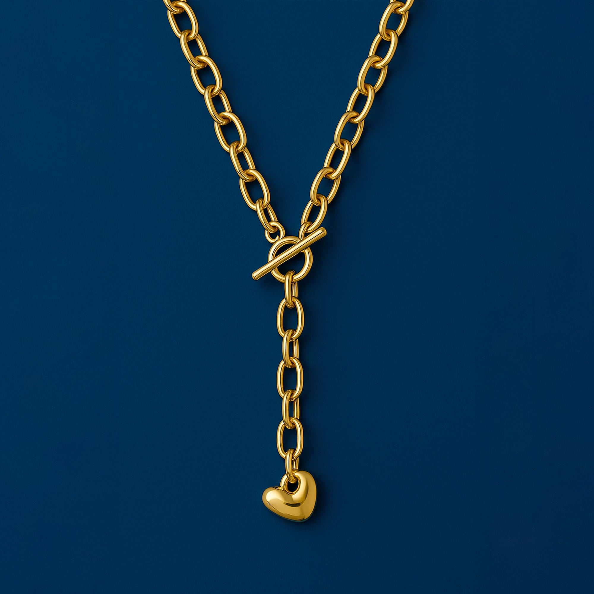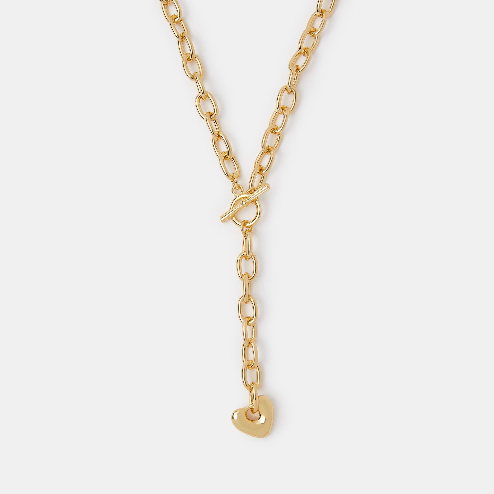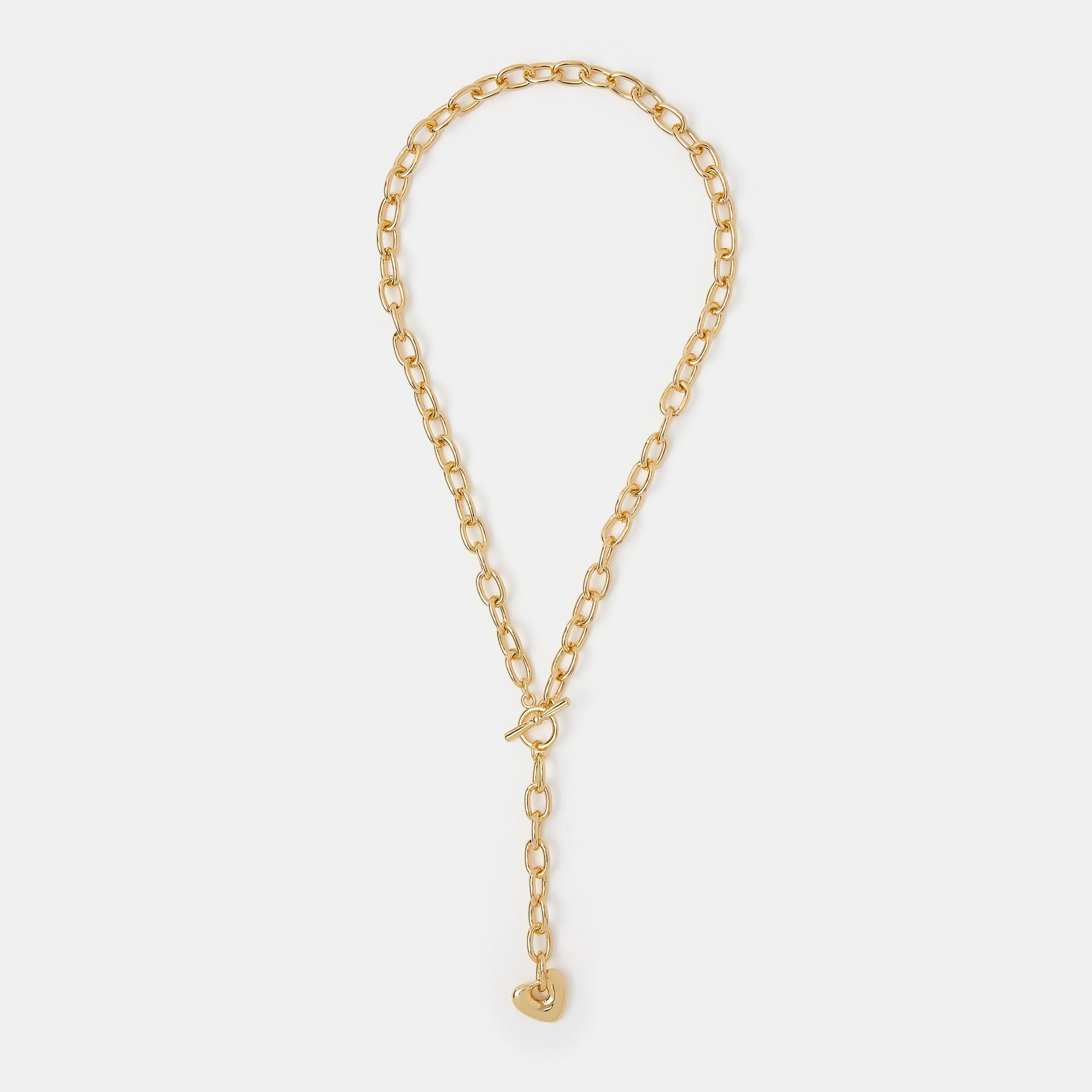 Whether it's casual or a look more suited to parties, this necklace is sure to add a bit of edge. Designed with a chunky link chain, it's finished with a heart pendant and T-bar fastening.