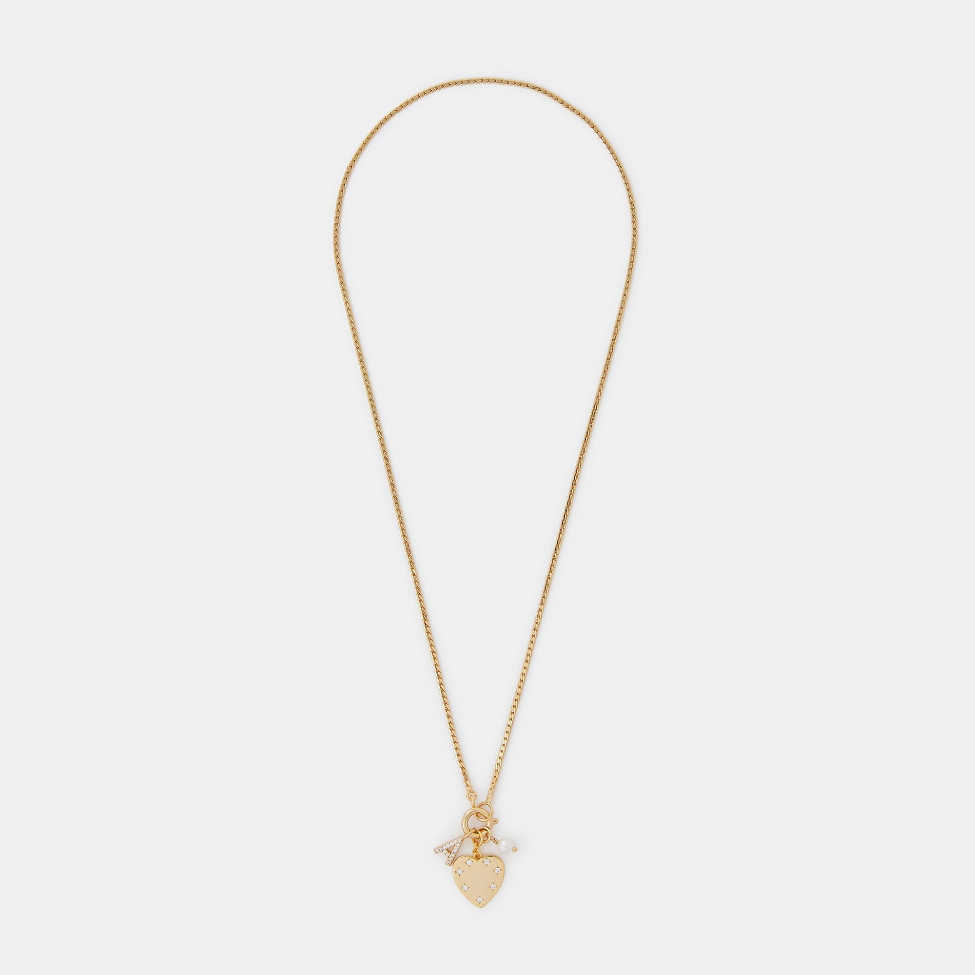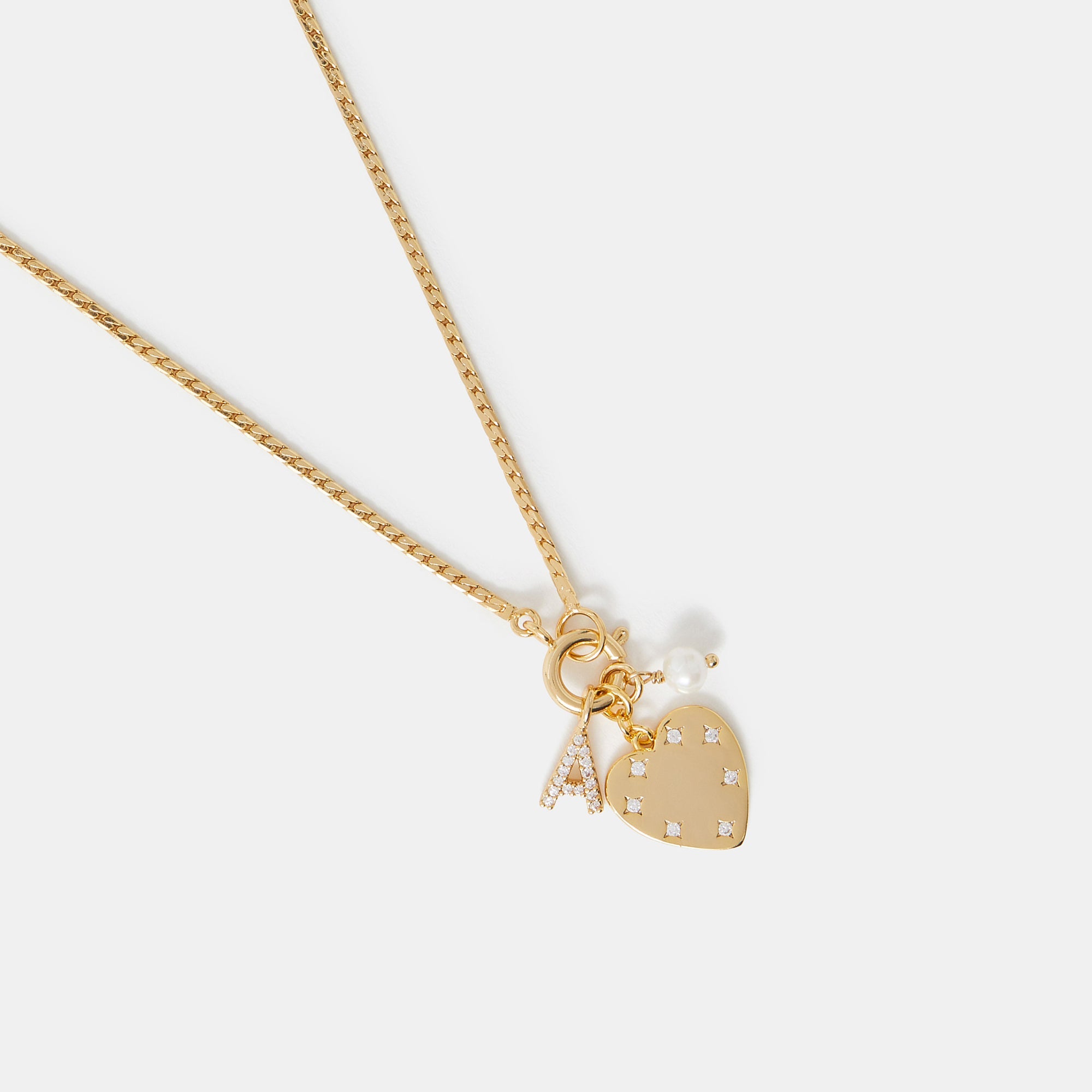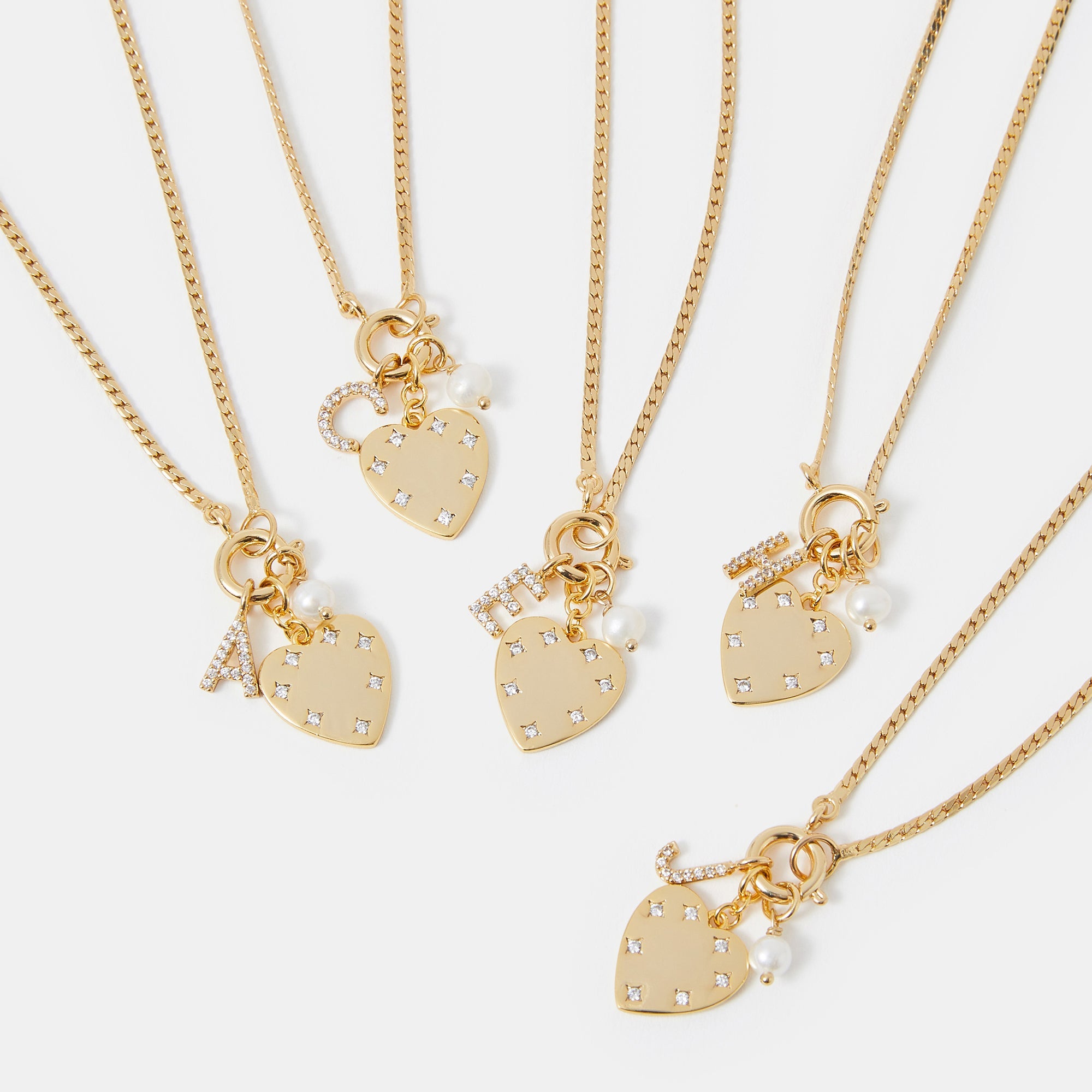 Add a cute, personalised touch to your everyday look with this charming necklace. Designed with an omega chain and a diamante-encrusted initial, heart and pearl charm at the centre.