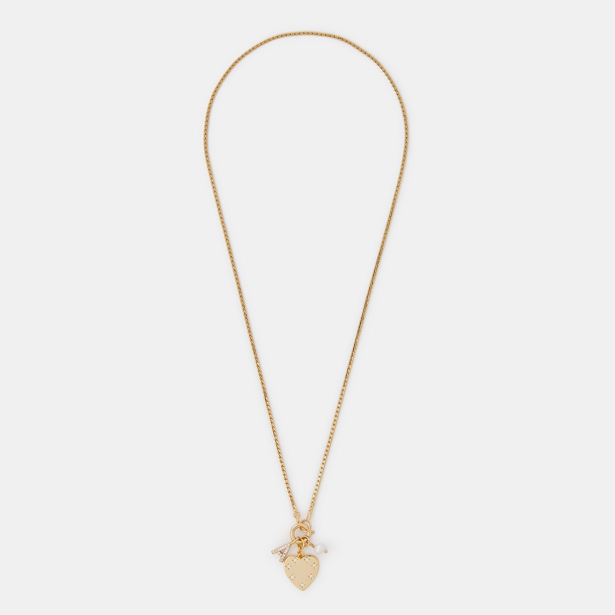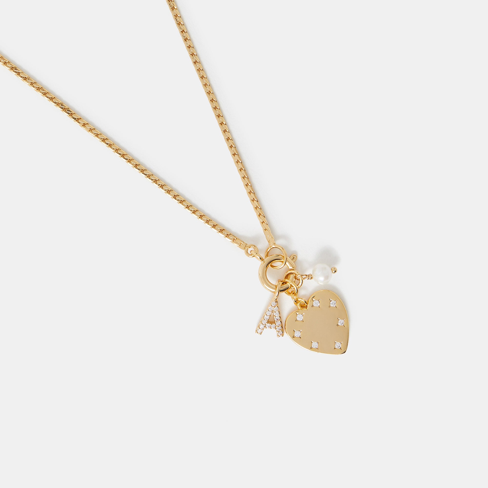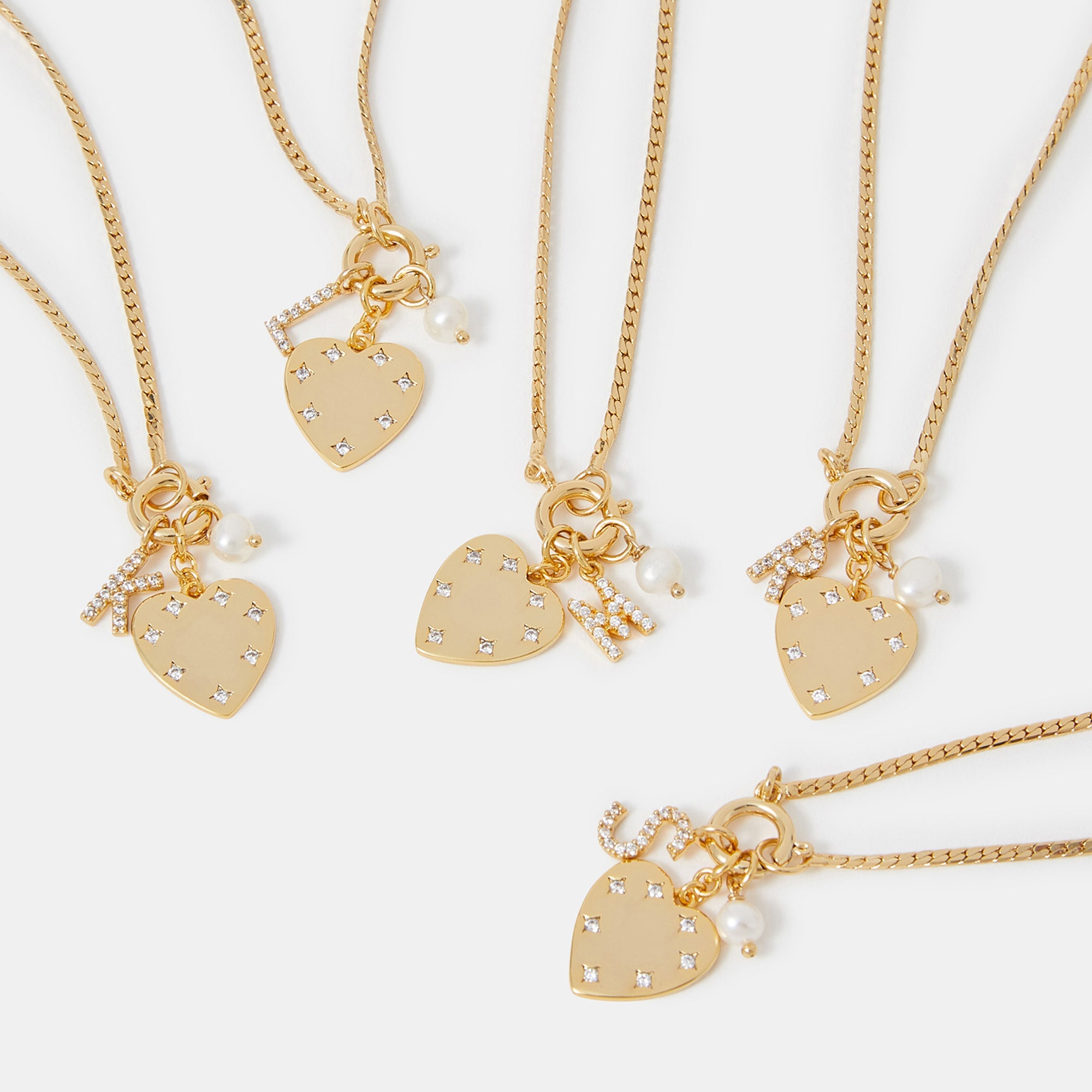 Add a cute, personalised touch to your everyday look with this charming necklace. Designed with an omega chain and a diamante-encrusted initial, heart and pearl charm at the centre.