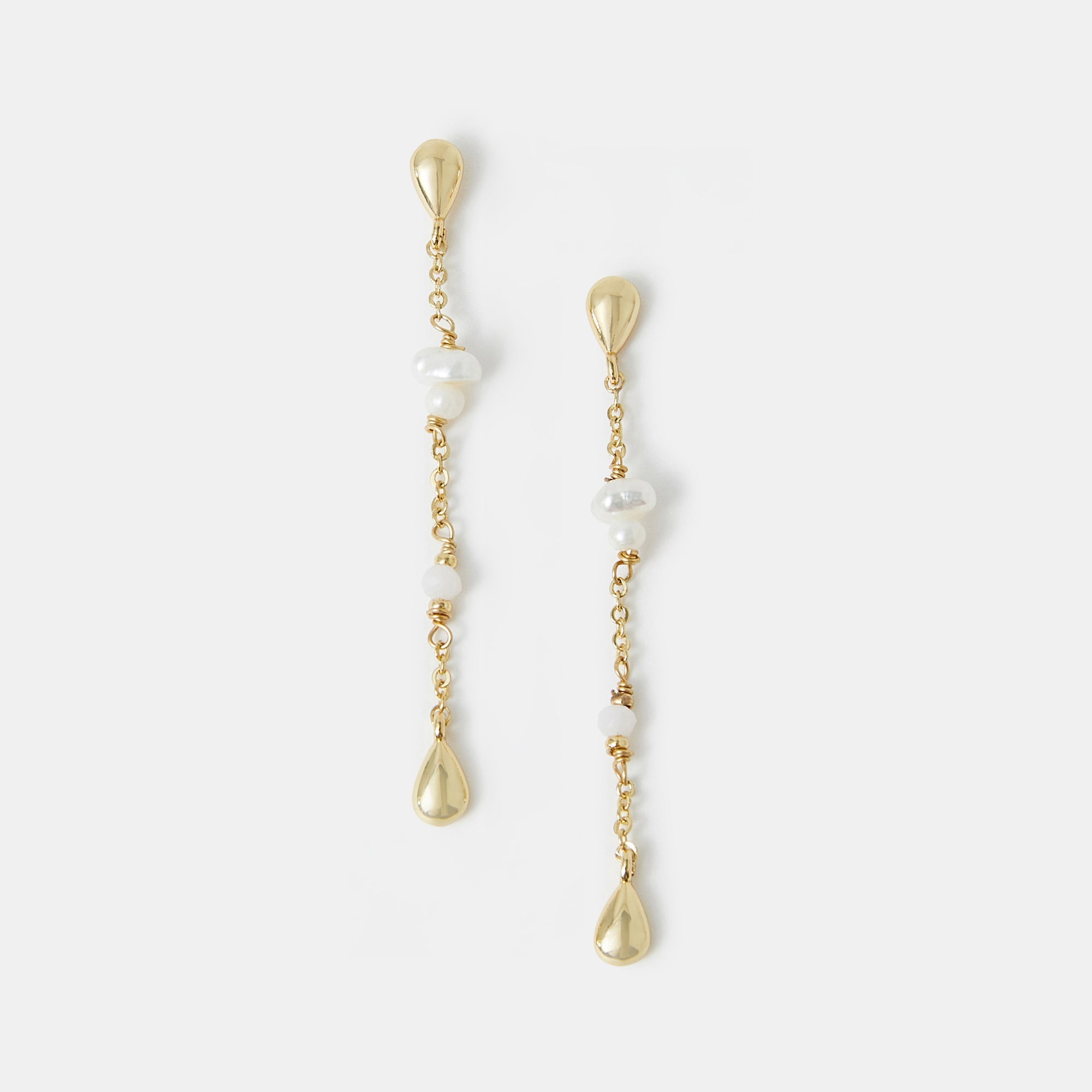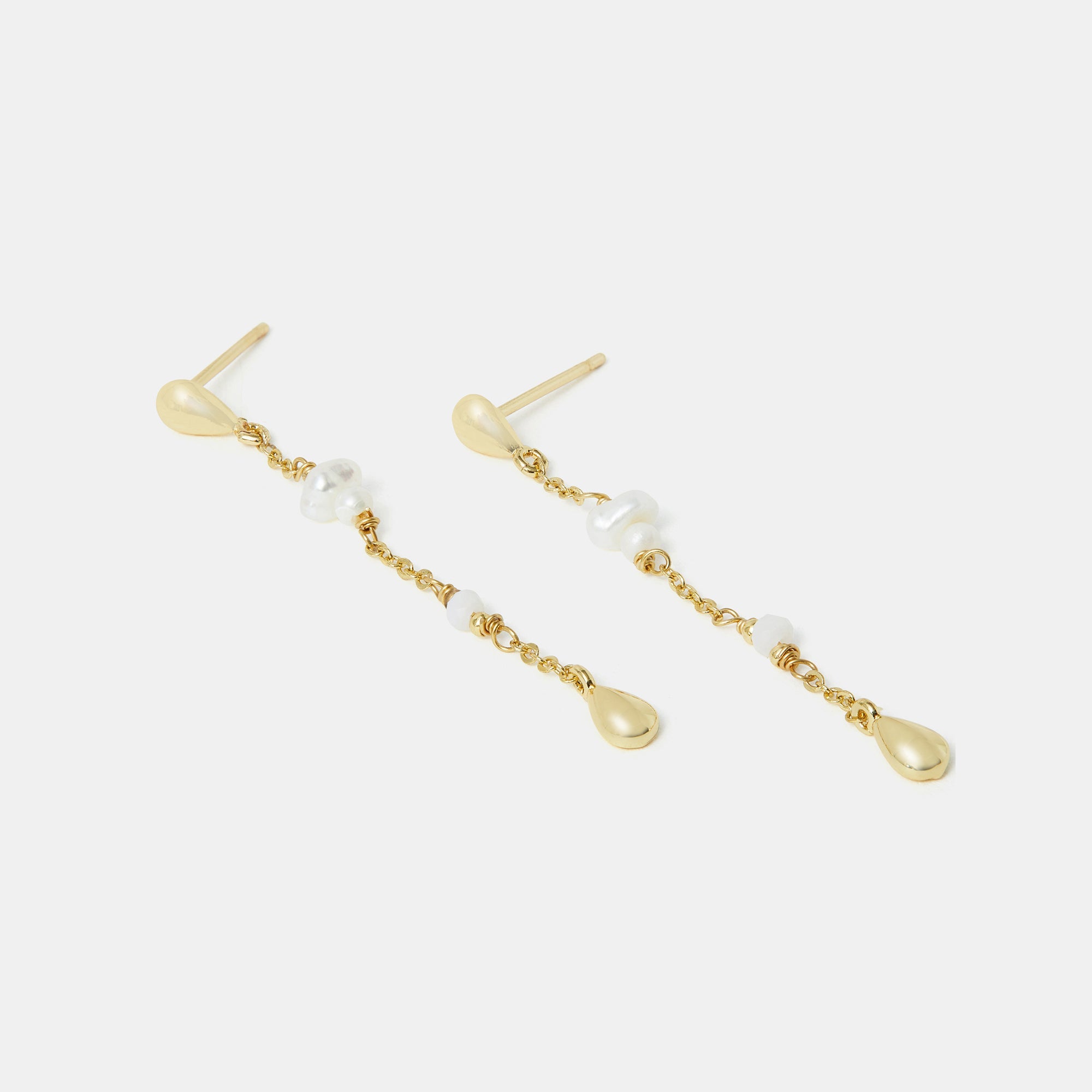 A dazzling pair to add to your treasure trove of jewels. These earrings showcase freshwater pearls dangling through a delicate chain.