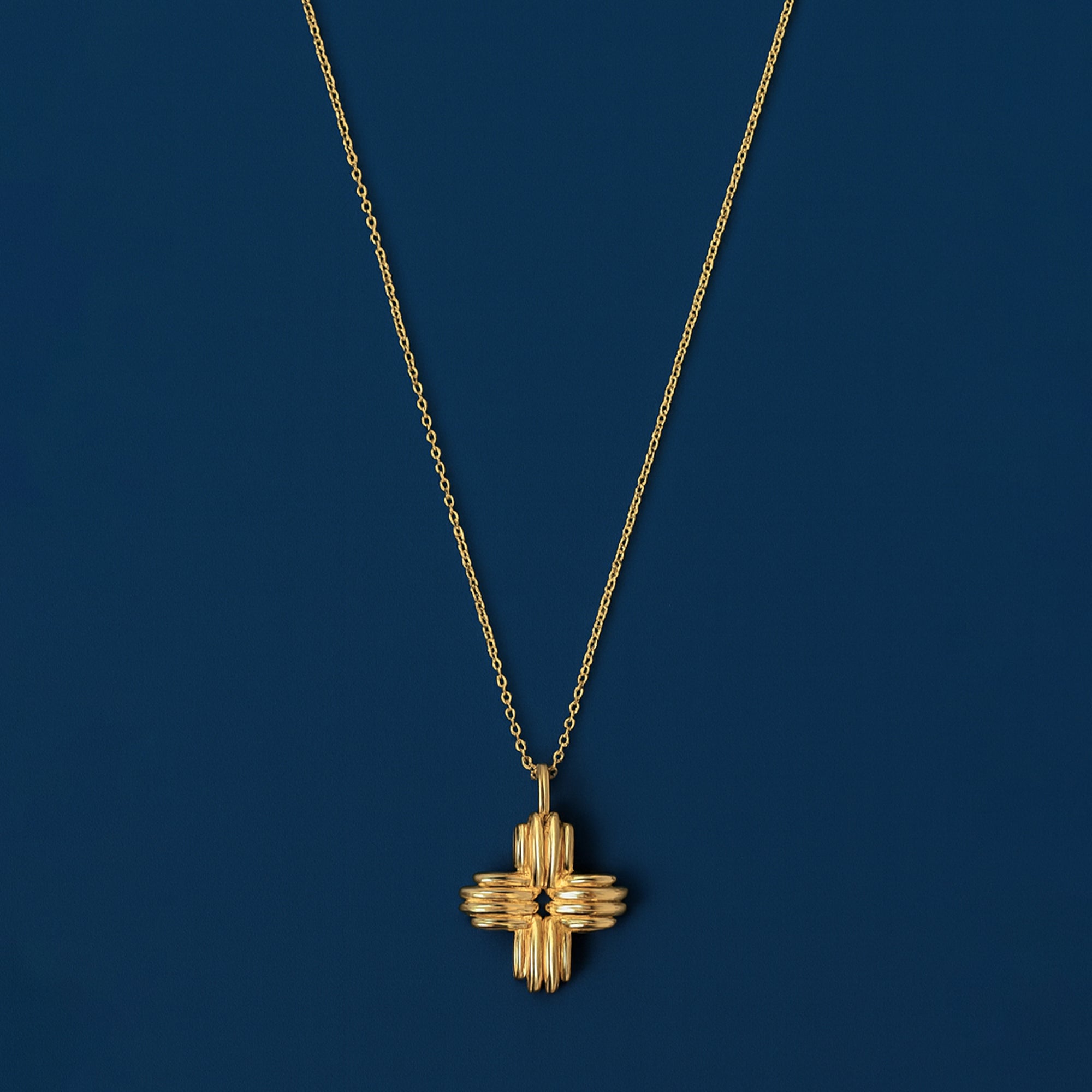 A modern heirloom you can love and wear, forever. Featuring a classic link chain with a lobster clasp fastening and extender, this necklace showcases a cross-shaped pendant with a contemporary ribbed design.