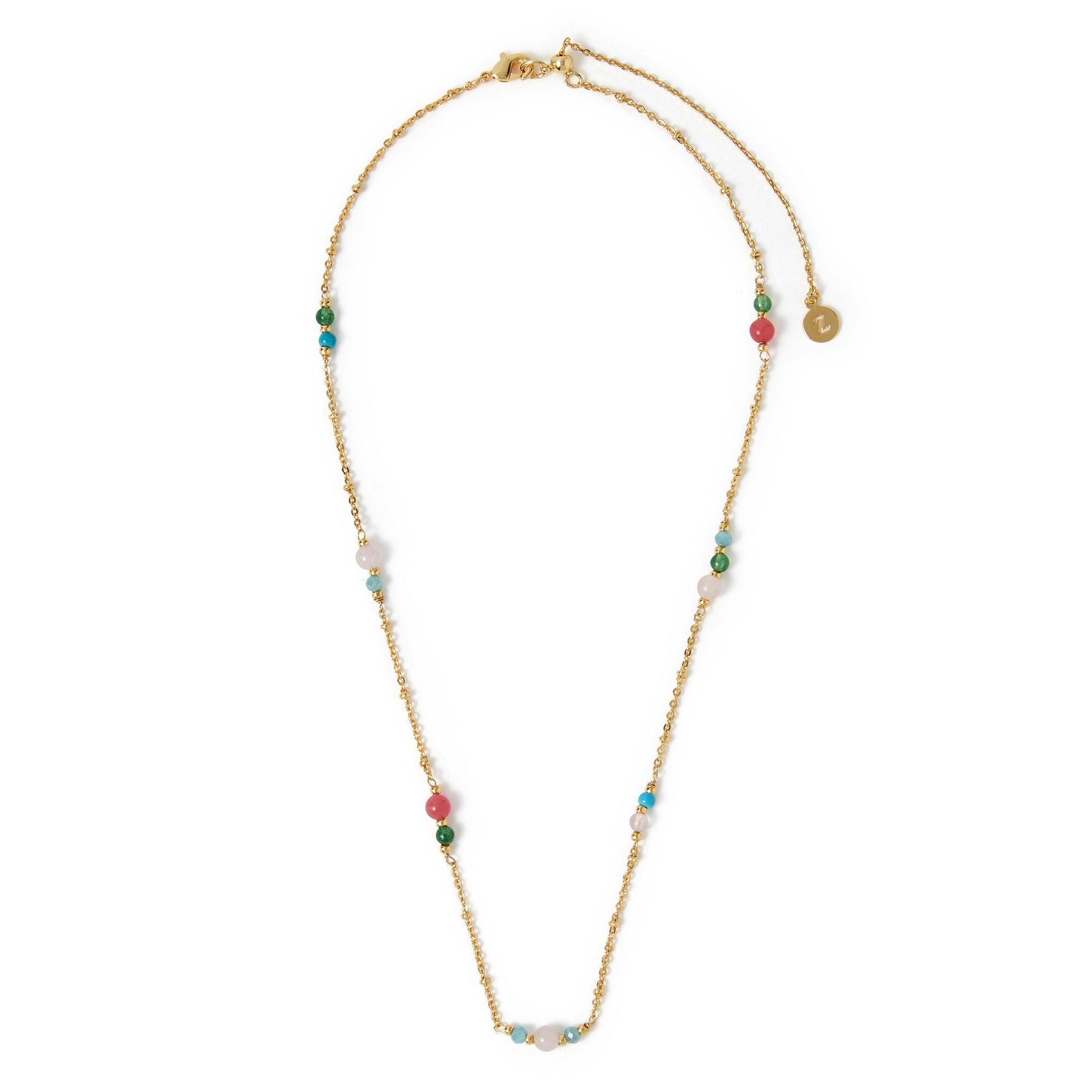 14K Gold-Plated Semi-Precious Bead Station Necklace