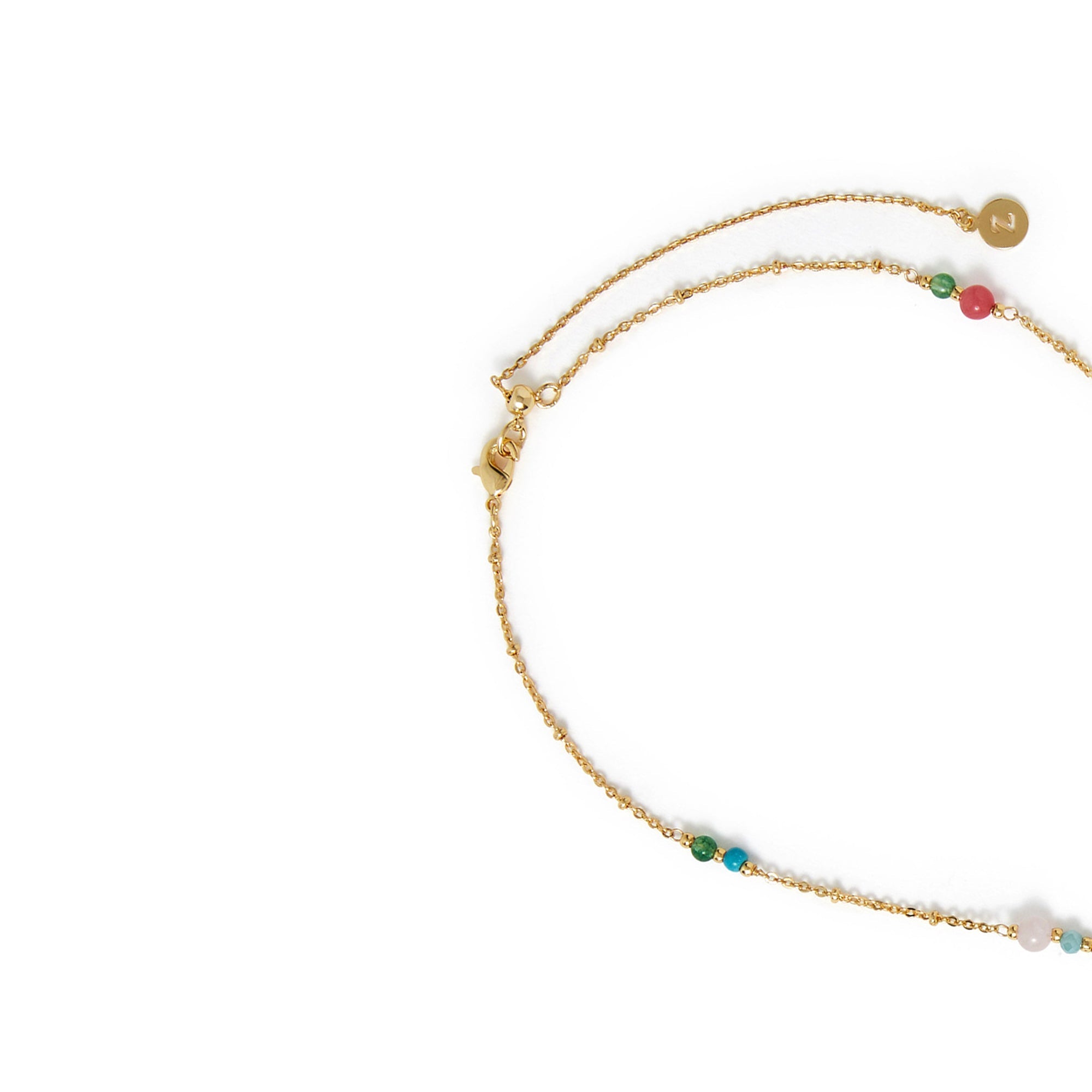 Decoratively strung with evenly-spaced green aventurine, rose quartz and turquoise beads, this semi-precious beauty makes the perfect present for anyone and any occasion.