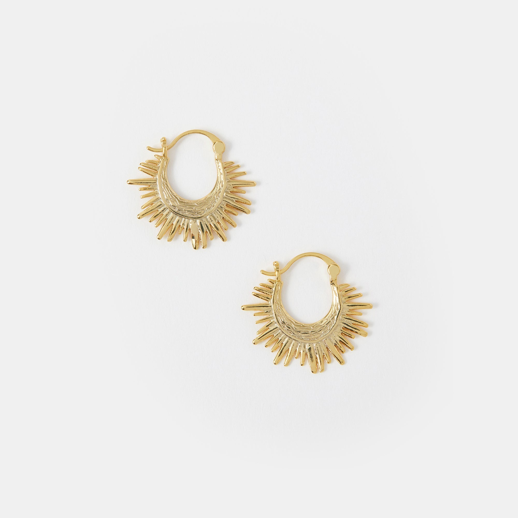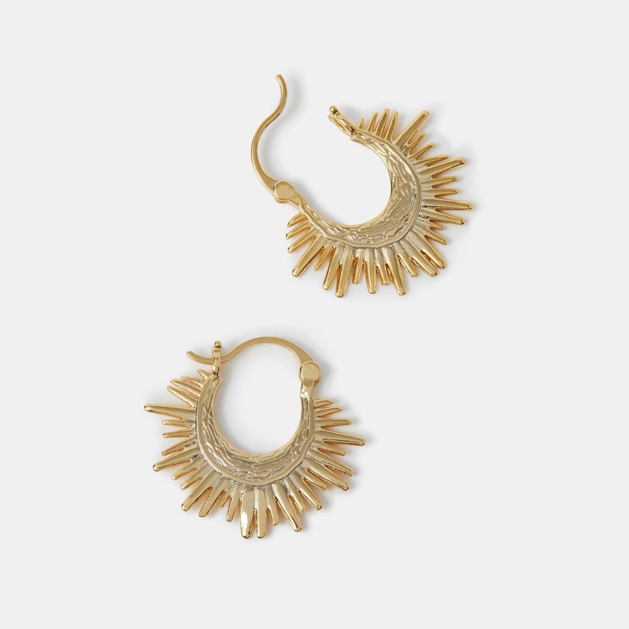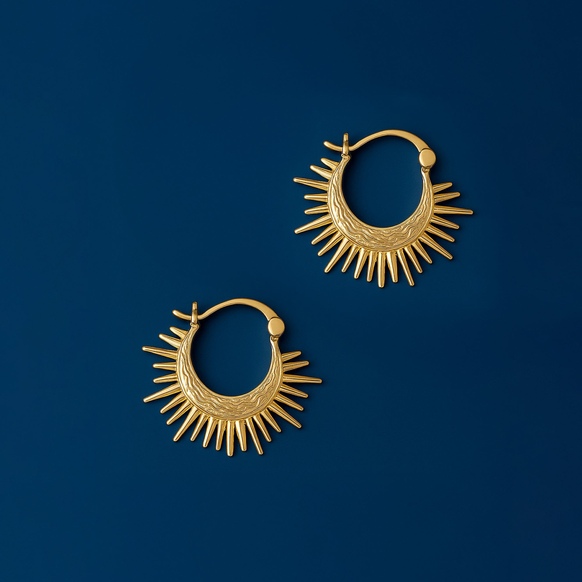 Framed with spikes reminiscent of sun beams, these hoops are a fun addition to all your summer looks (and beyond)!
