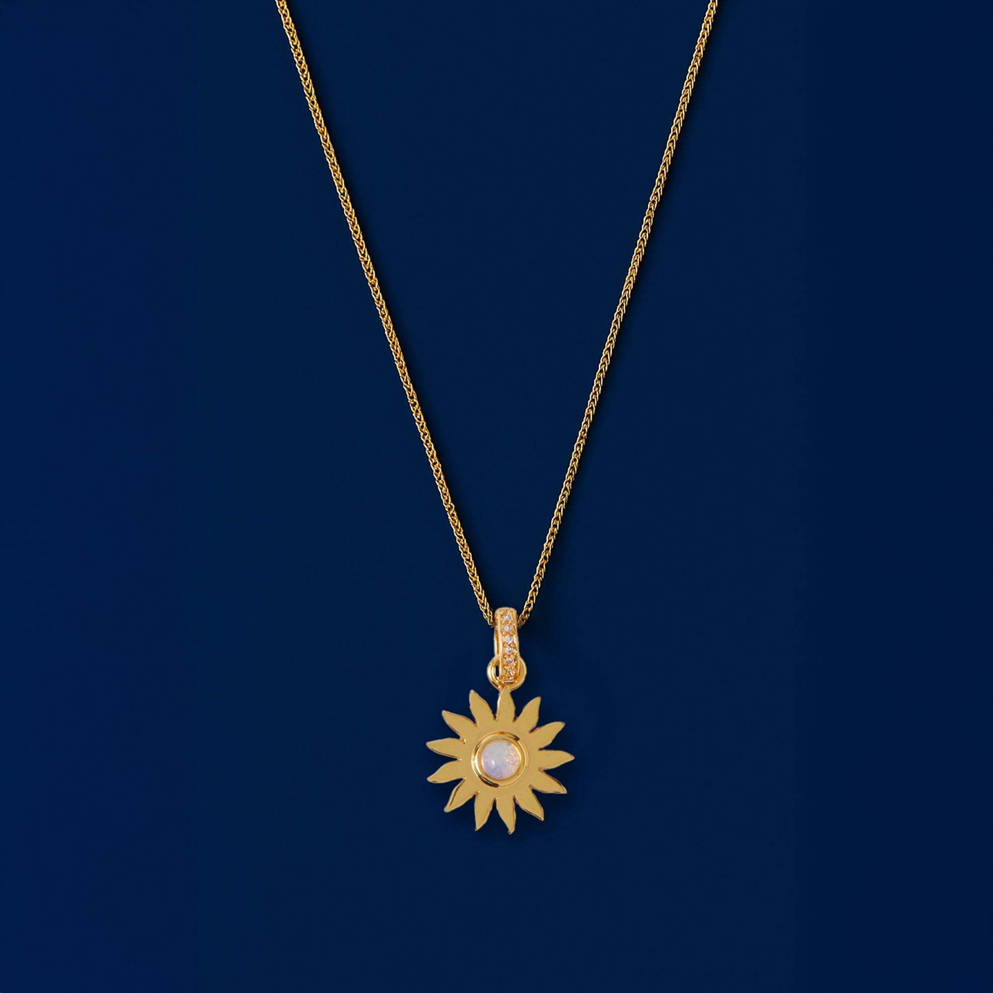 Calling all sun worshippers: This necklace is for you. Designed with a classic link chain, this necklace showcases a sunbeam pendant with a opal-inspired detail at the centre.