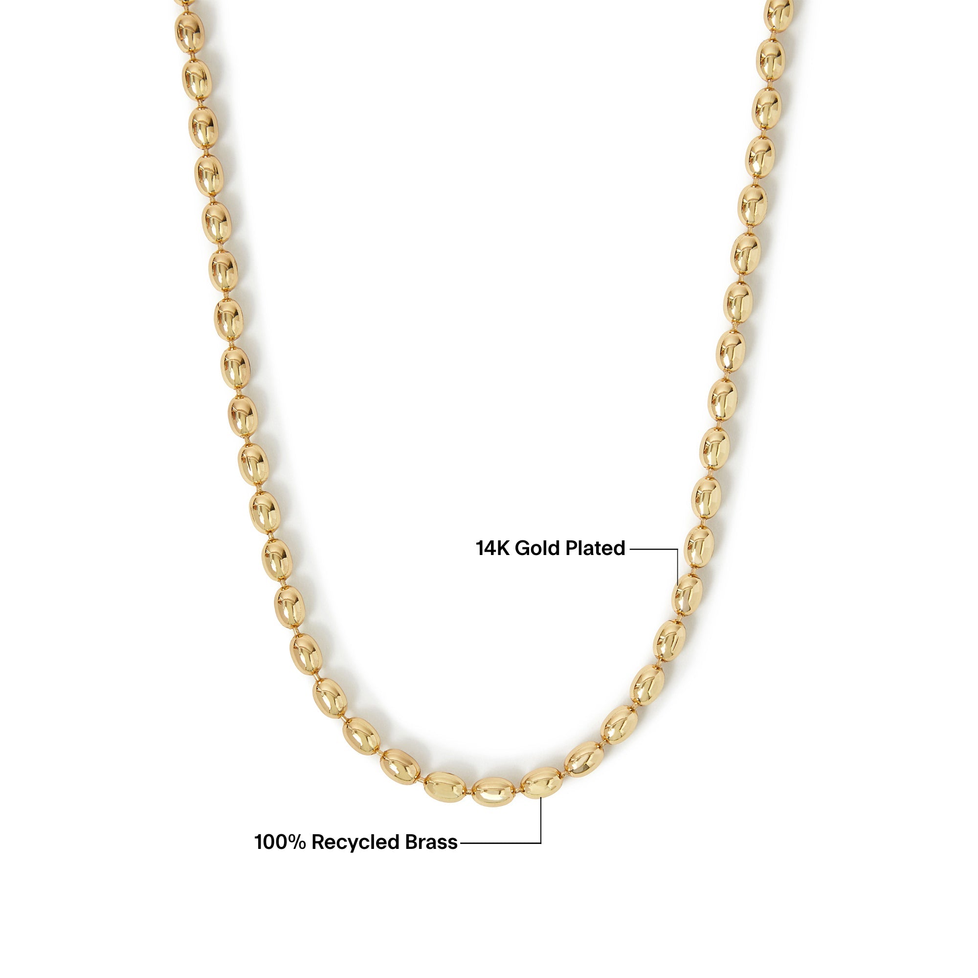 14k Real Gold-Plated Oval Bead Chain Necklace