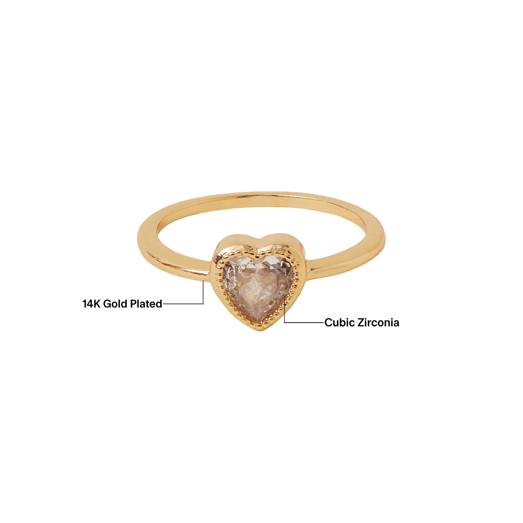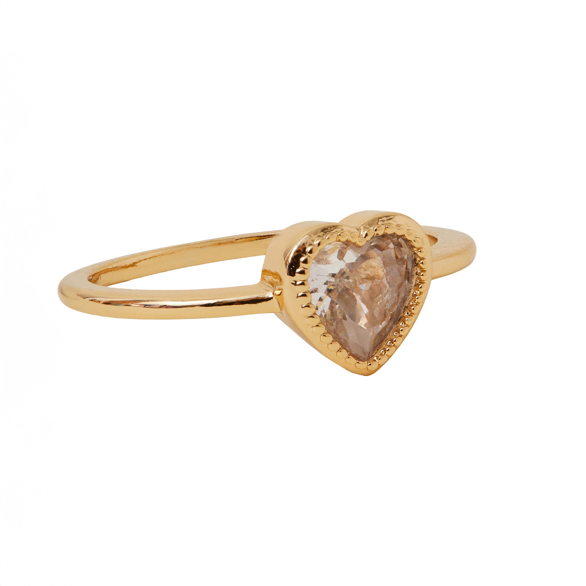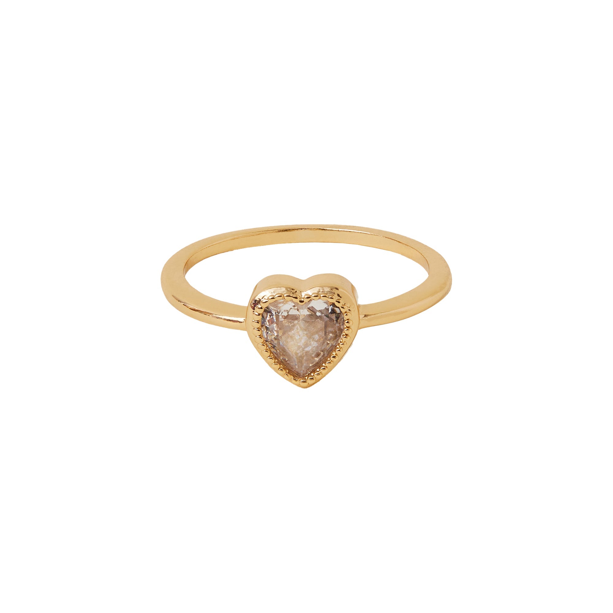 Embedded with a sparkling gem, this ring boasts a super-cute heart profile on a simple gold-plated band.