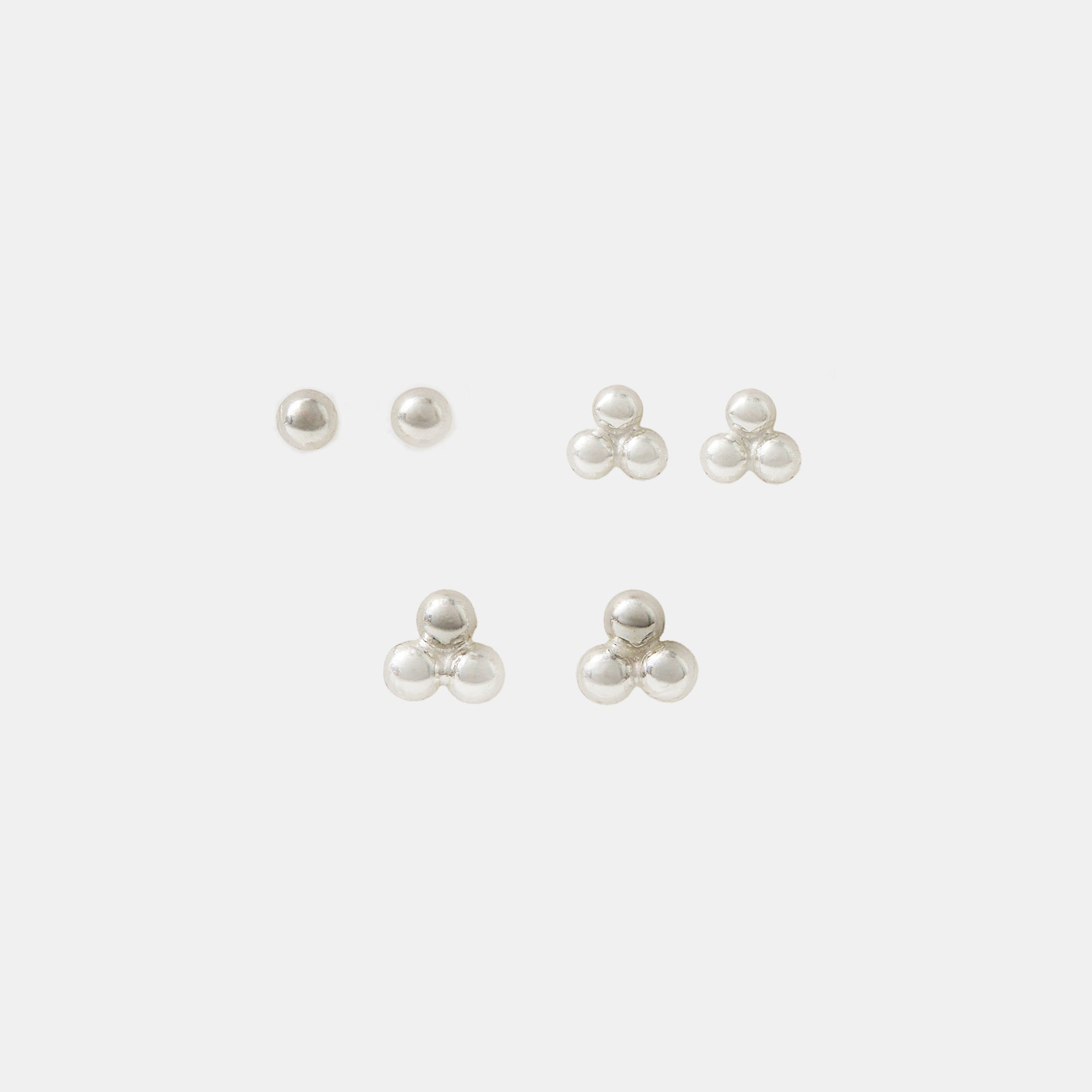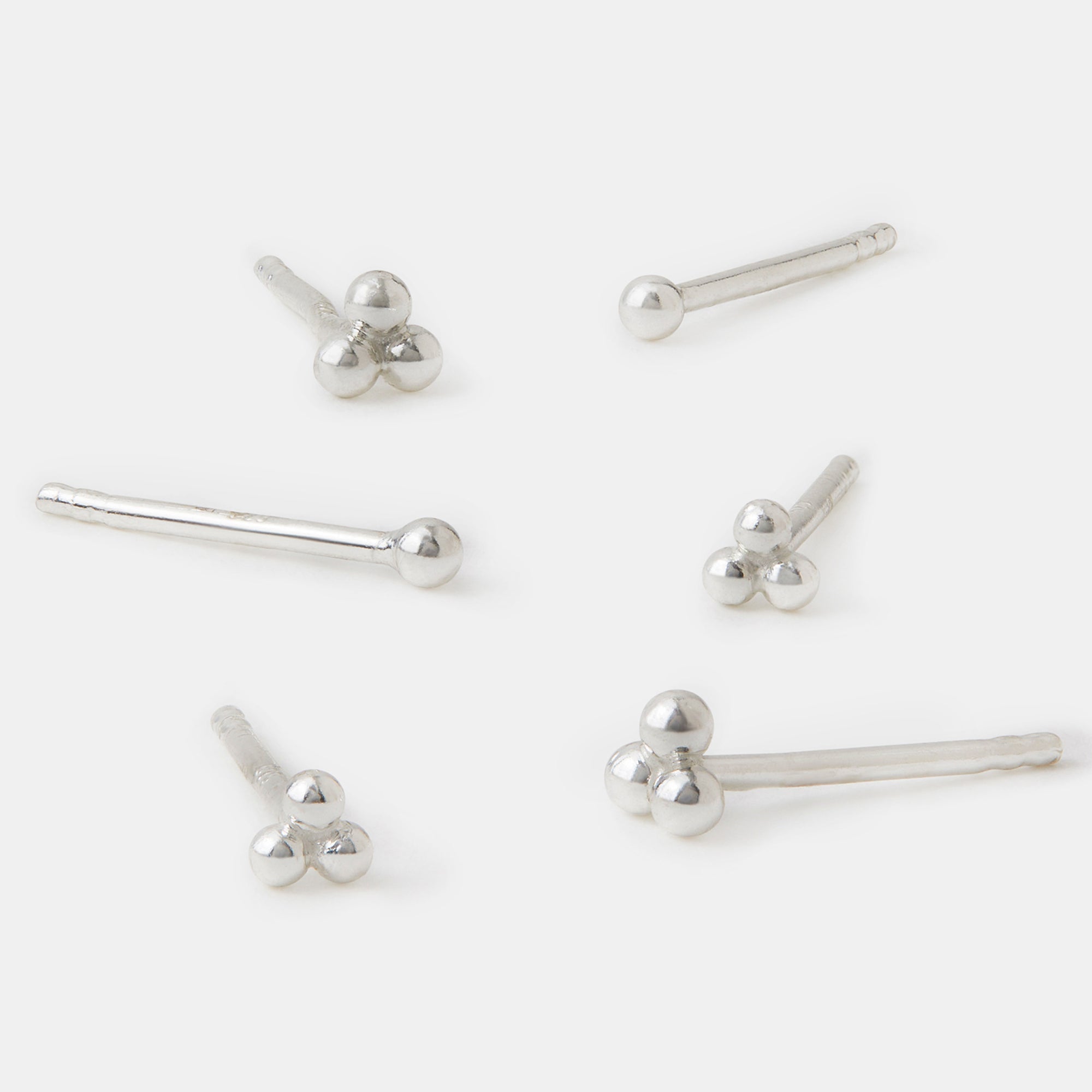 For those who like the simple things in life... Crafted from solid 925 sterling silver, these studs are finished with small ball designs. Three pairs included.