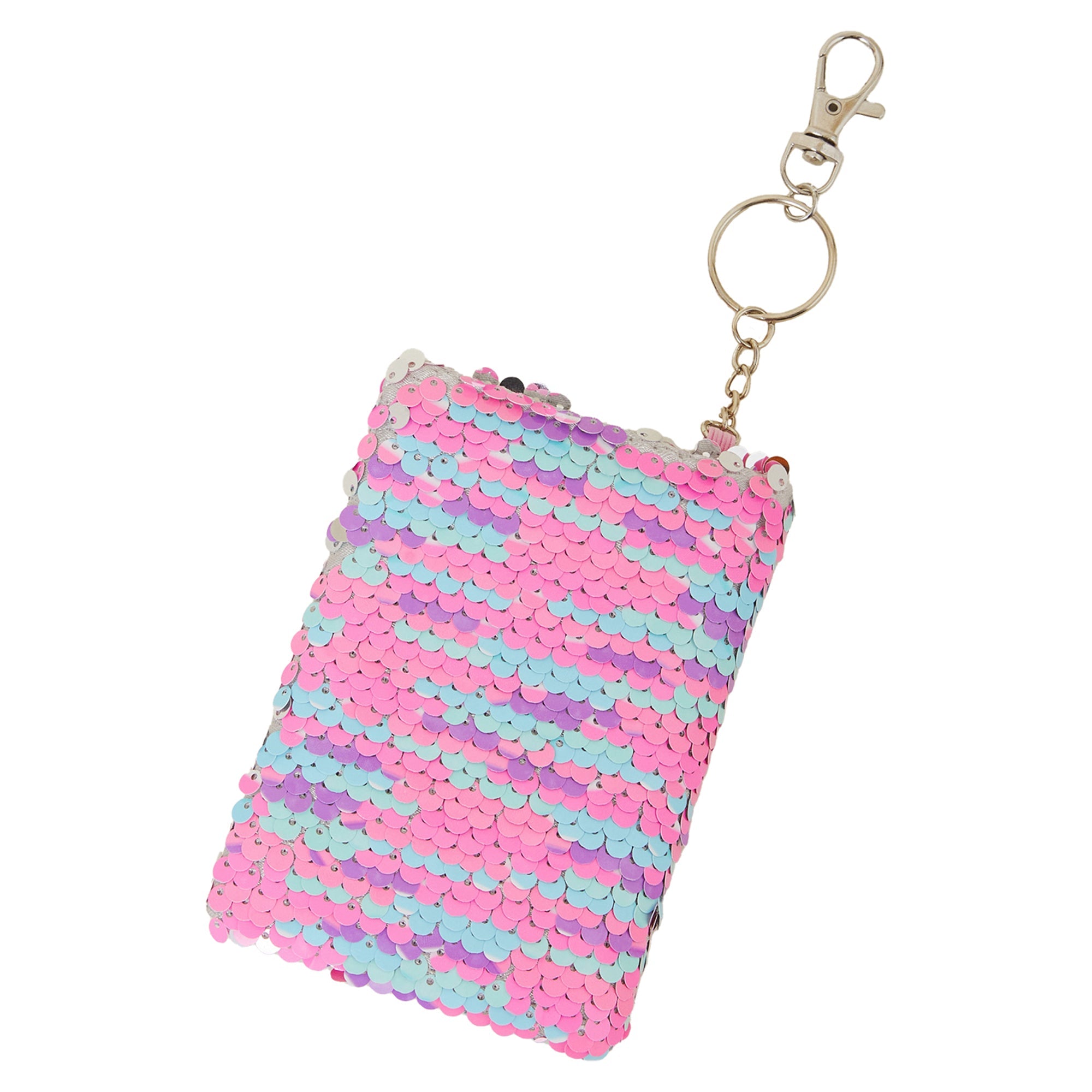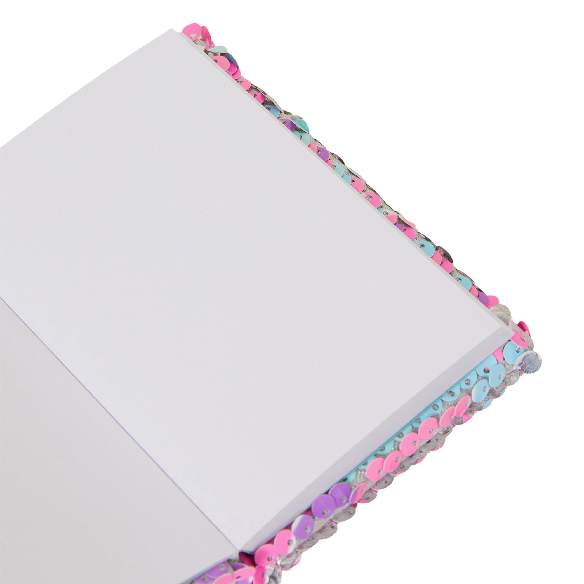 The perfect bag charm for doodling on-the-go, this keyring features a notebook with a sparkly sequin cover and blank pages inside