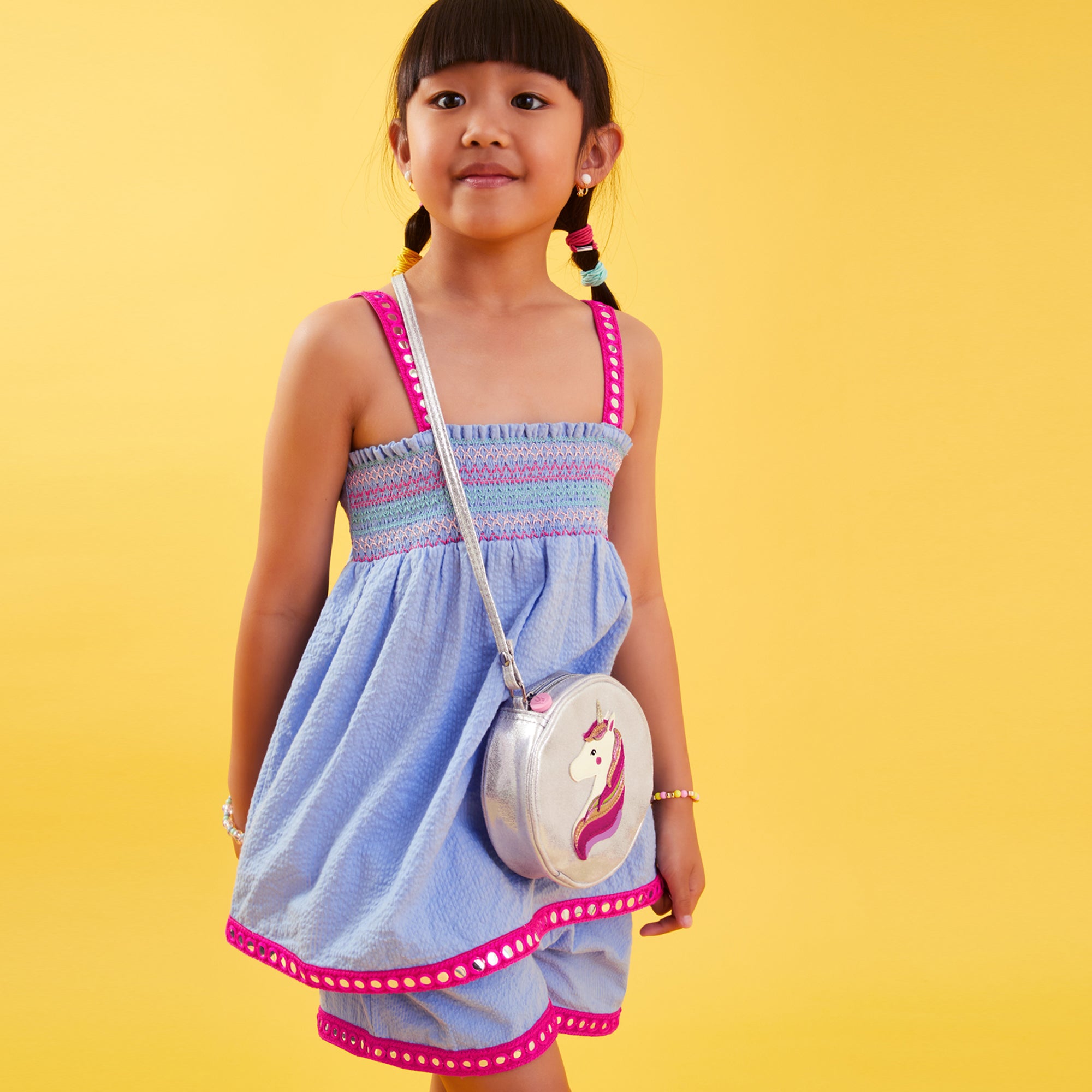 For the unicorn obsessed. This cross-body bag is perfect for housing their essentials while they're on the go. It features a fun unicorn applique atop a glittery backdrop and an adjustable strap.