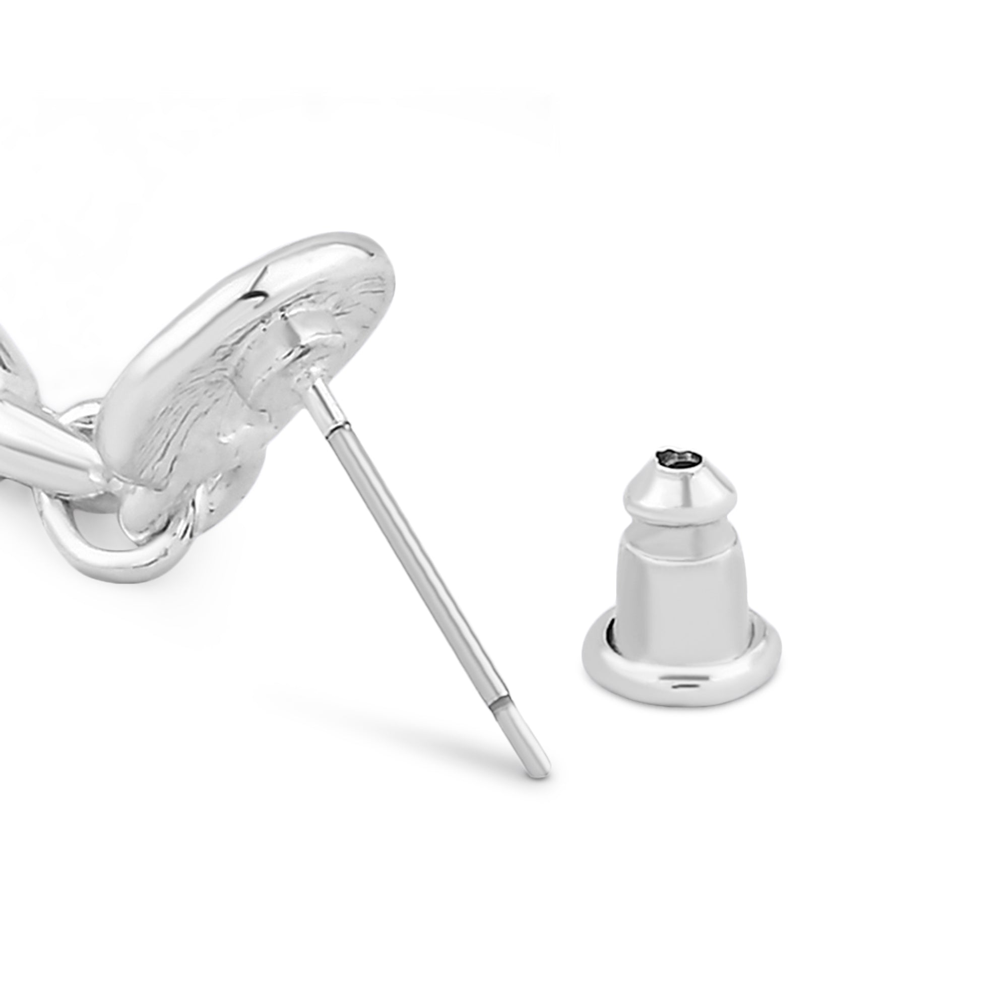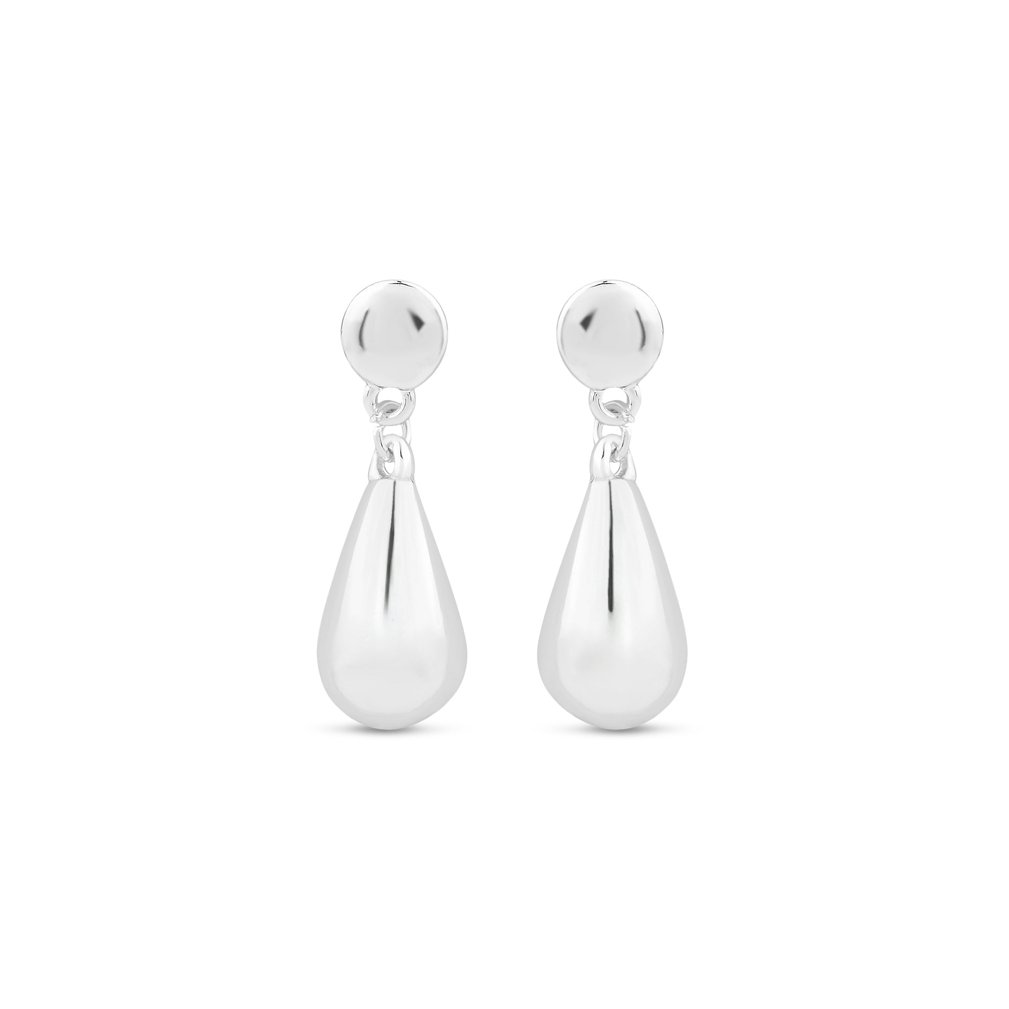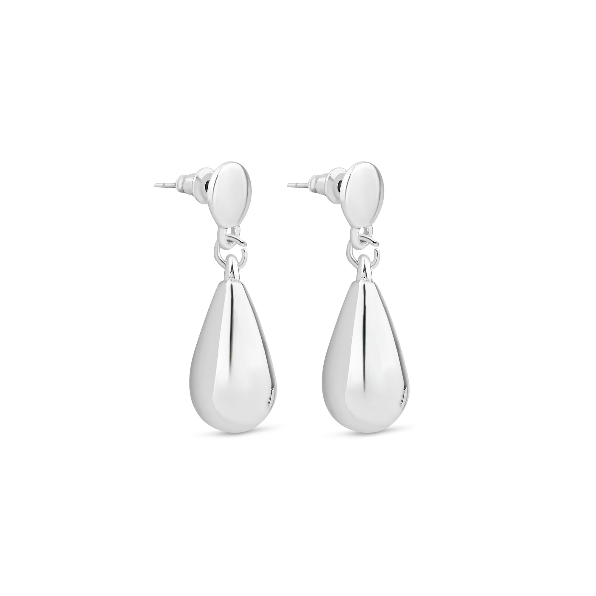 Designed in silver-plated metal, these earrings feature a teardrop charm that hangs from a simple disc stud. The Post and Back lock offers both security and ease of wear, providing a comfortable fit while keeping the earrings securely in place