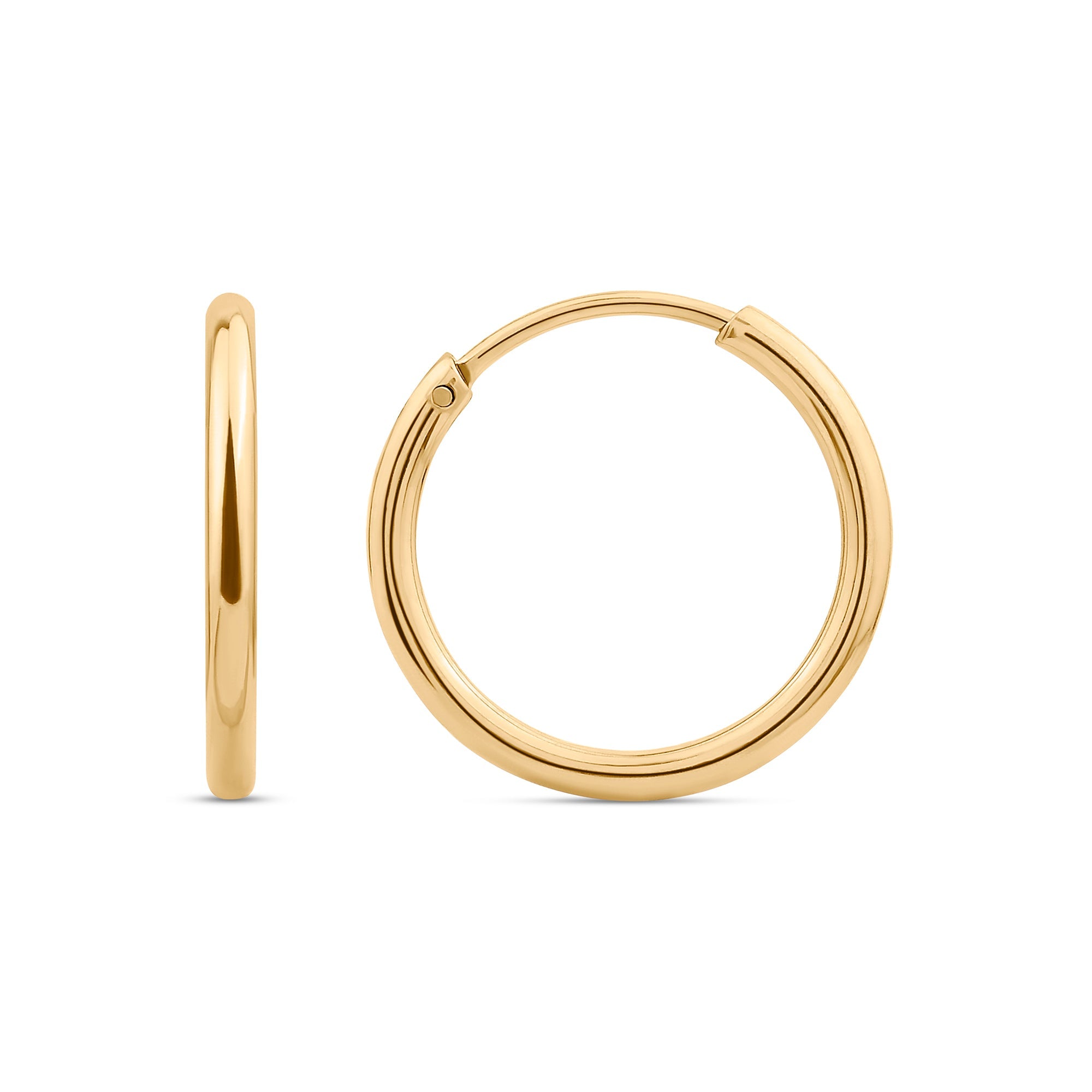 Everyone...and we mean everyone needs a pair of gold hoops, no matter what the occasion. Finished with a secure hinged closure.