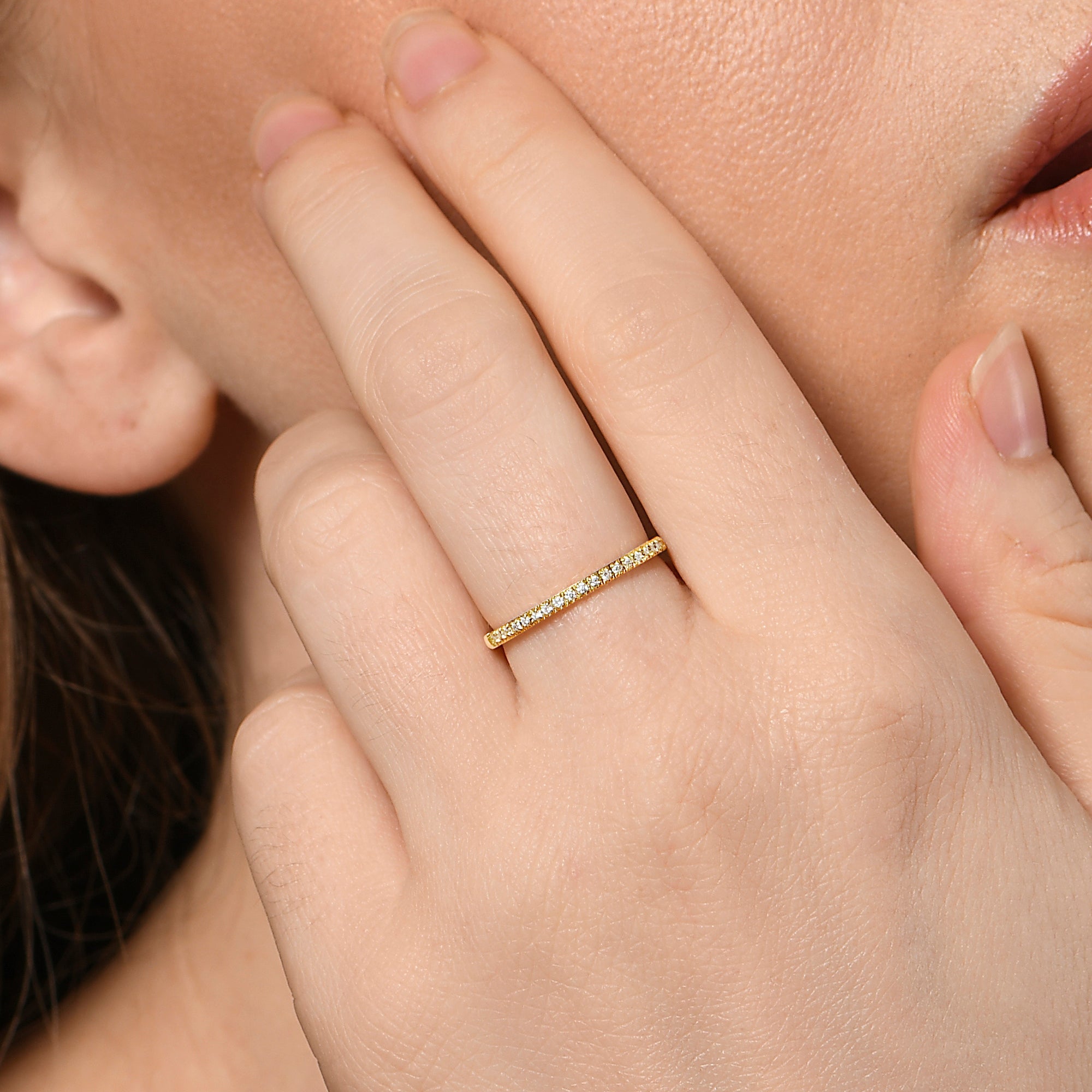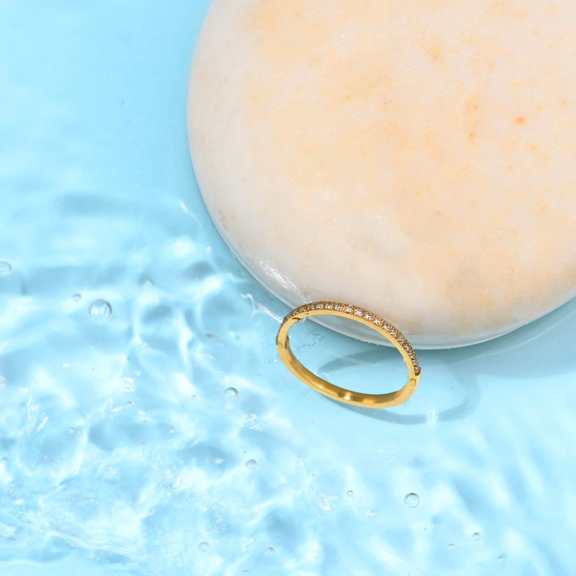 Infuse opulence into your ring stack and opt for this ring. It's crafted in gold-tone stainless steel, with a row of encrusted diamantés on a simple band.