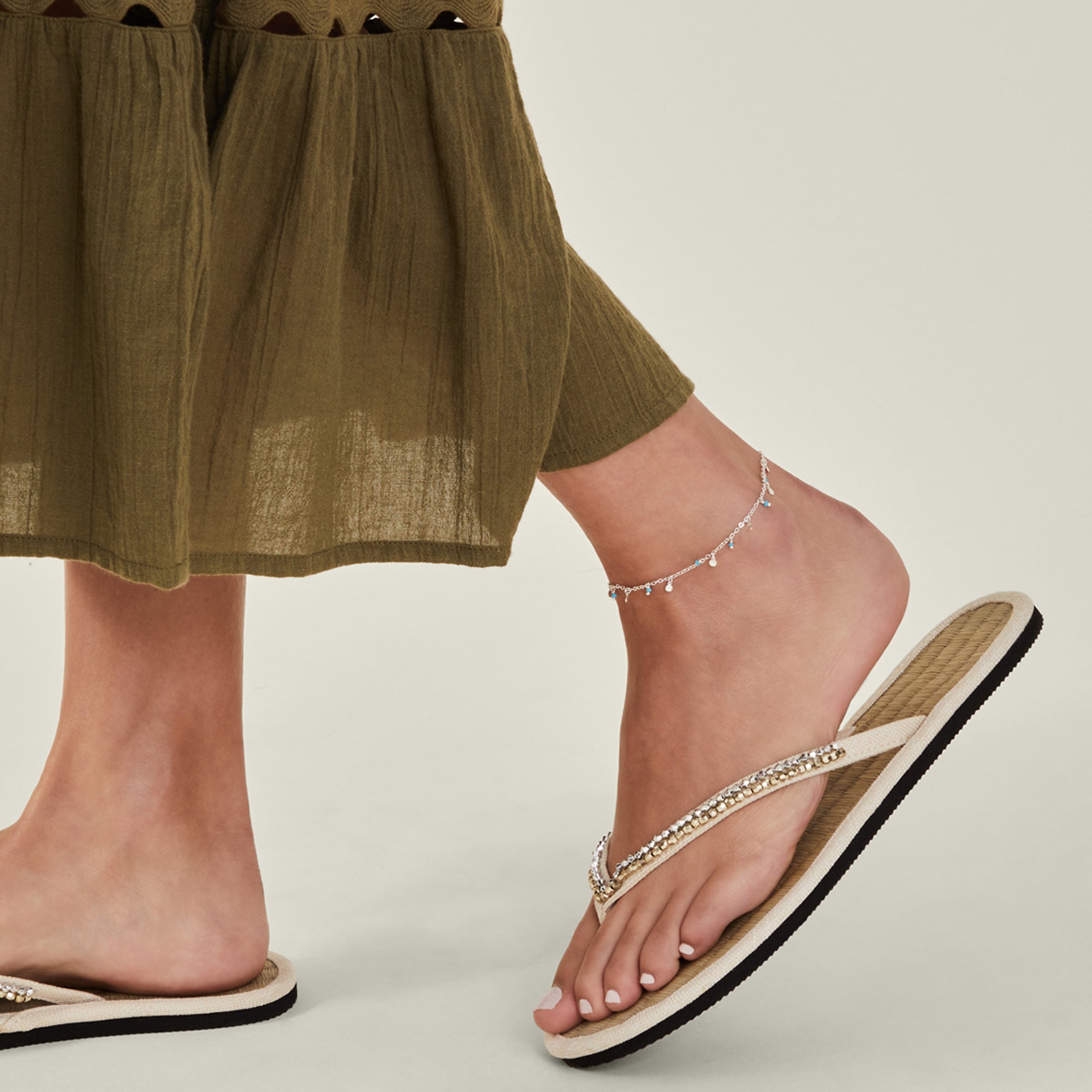 Accessorize London Women Sterling Silver-Plated Beaded Anklet