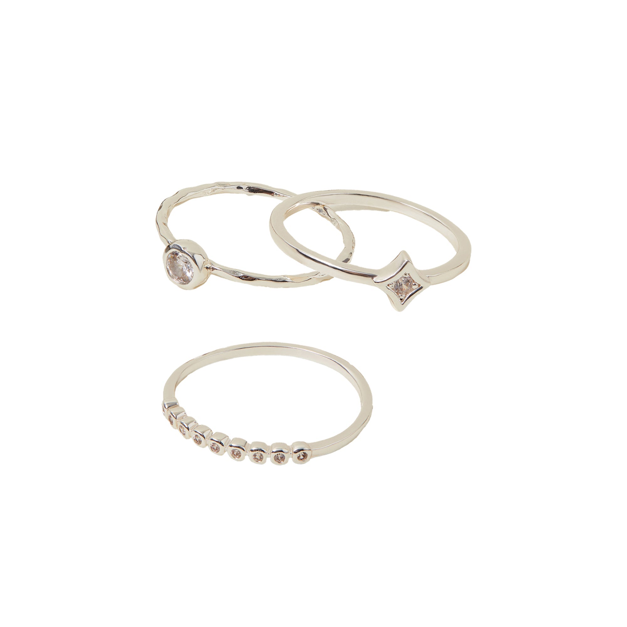 Accessorize London Women Sterling Silver-Plated Crystal Rings Silver Pack of 3-Small