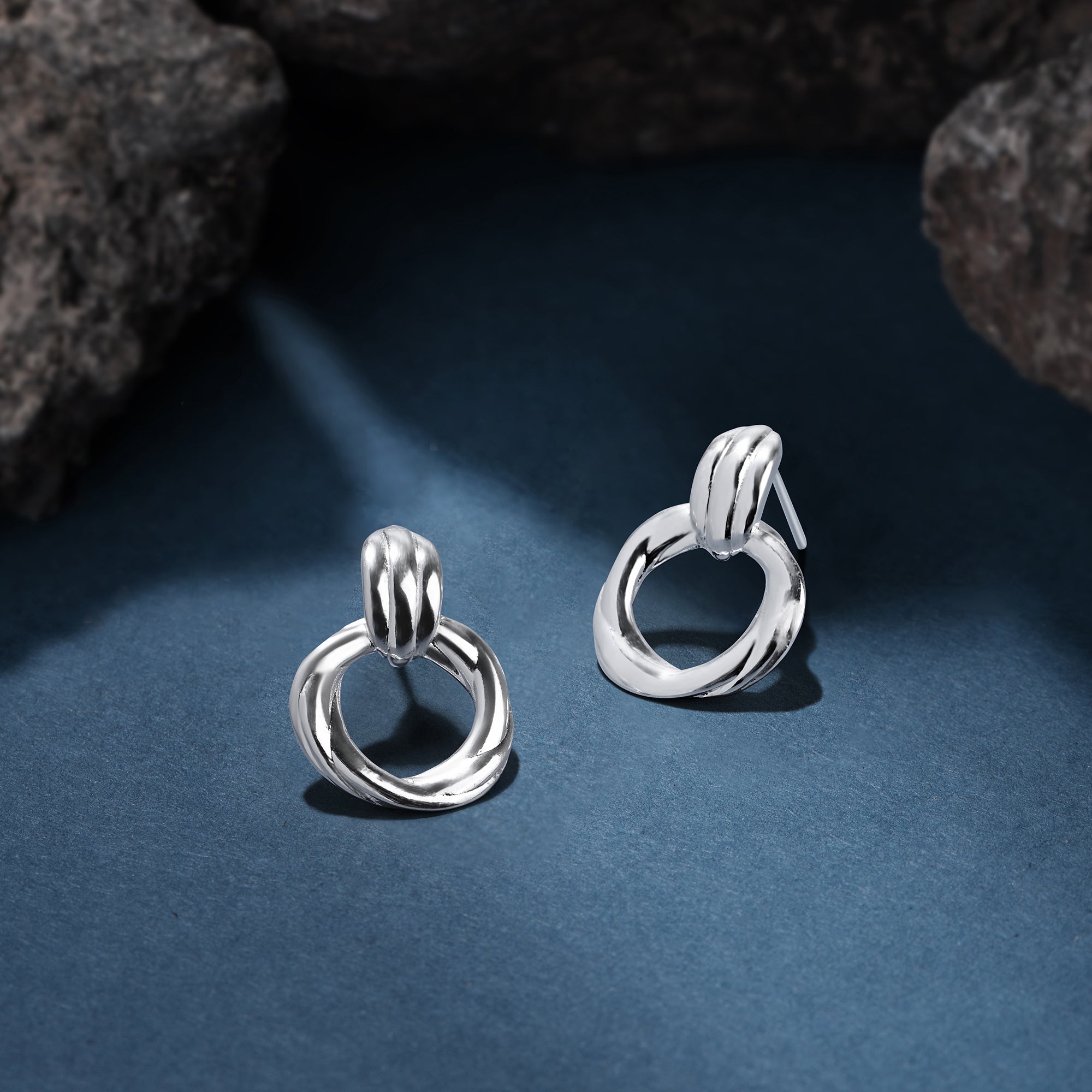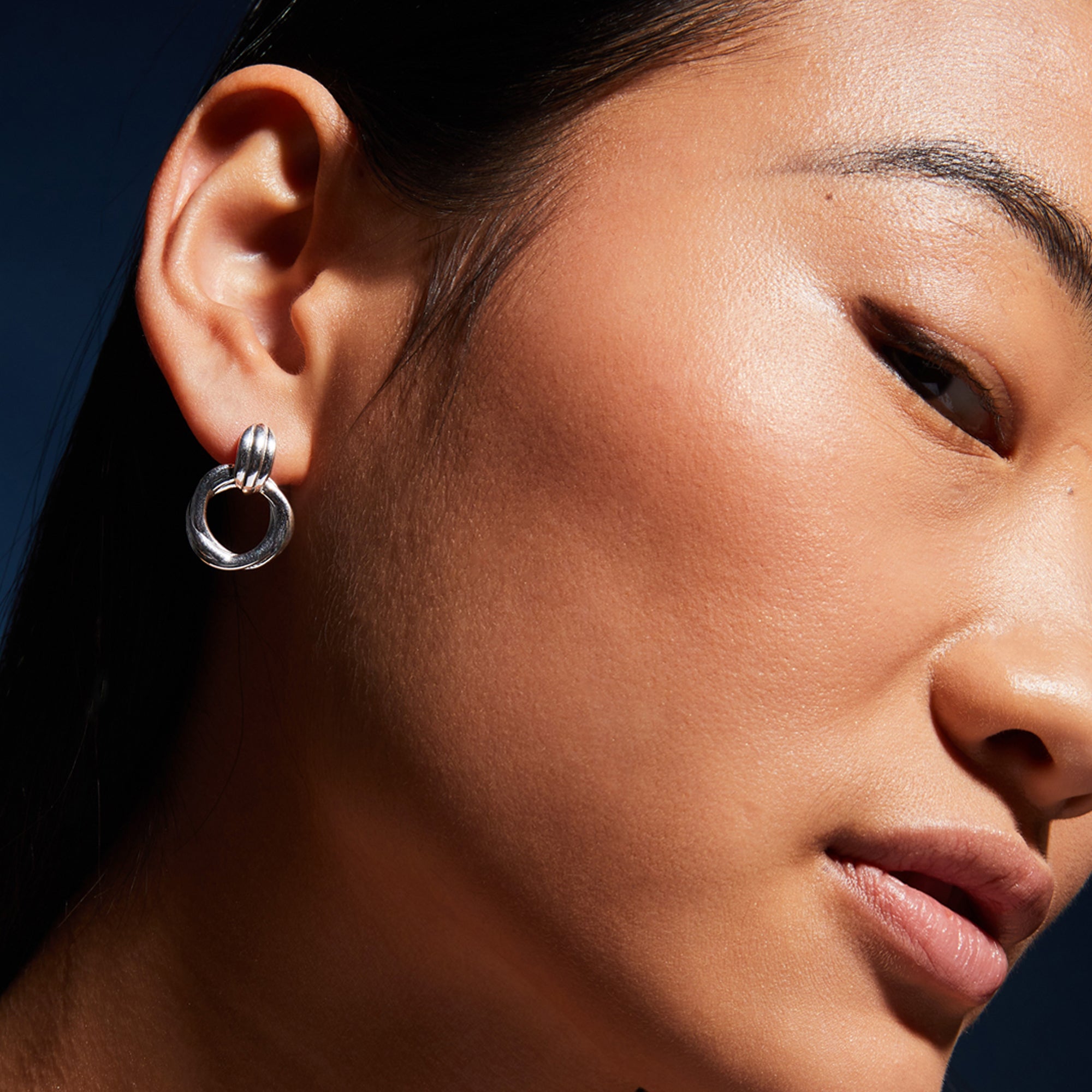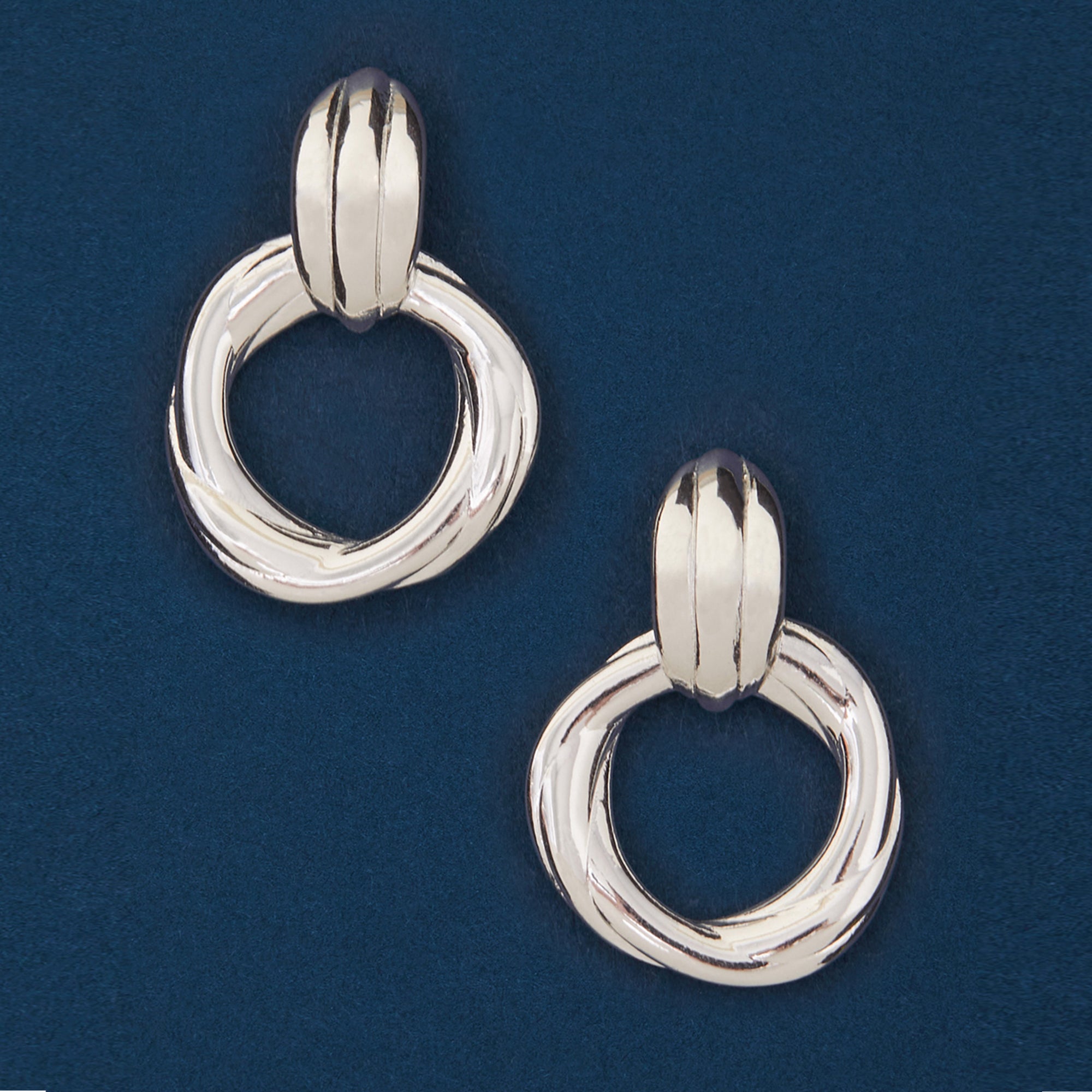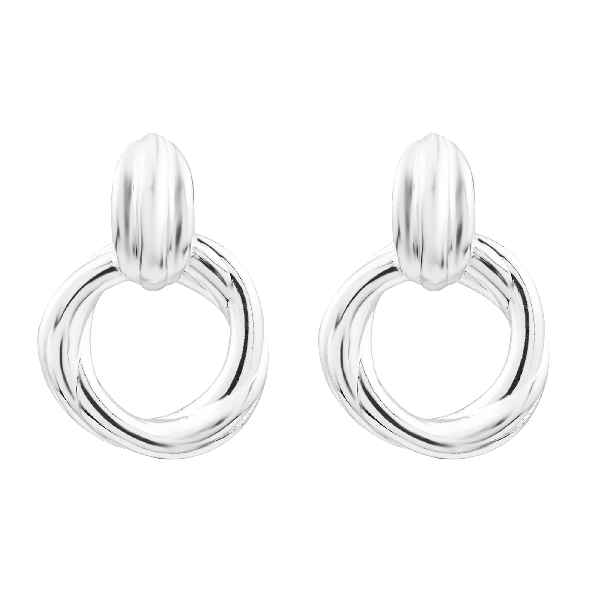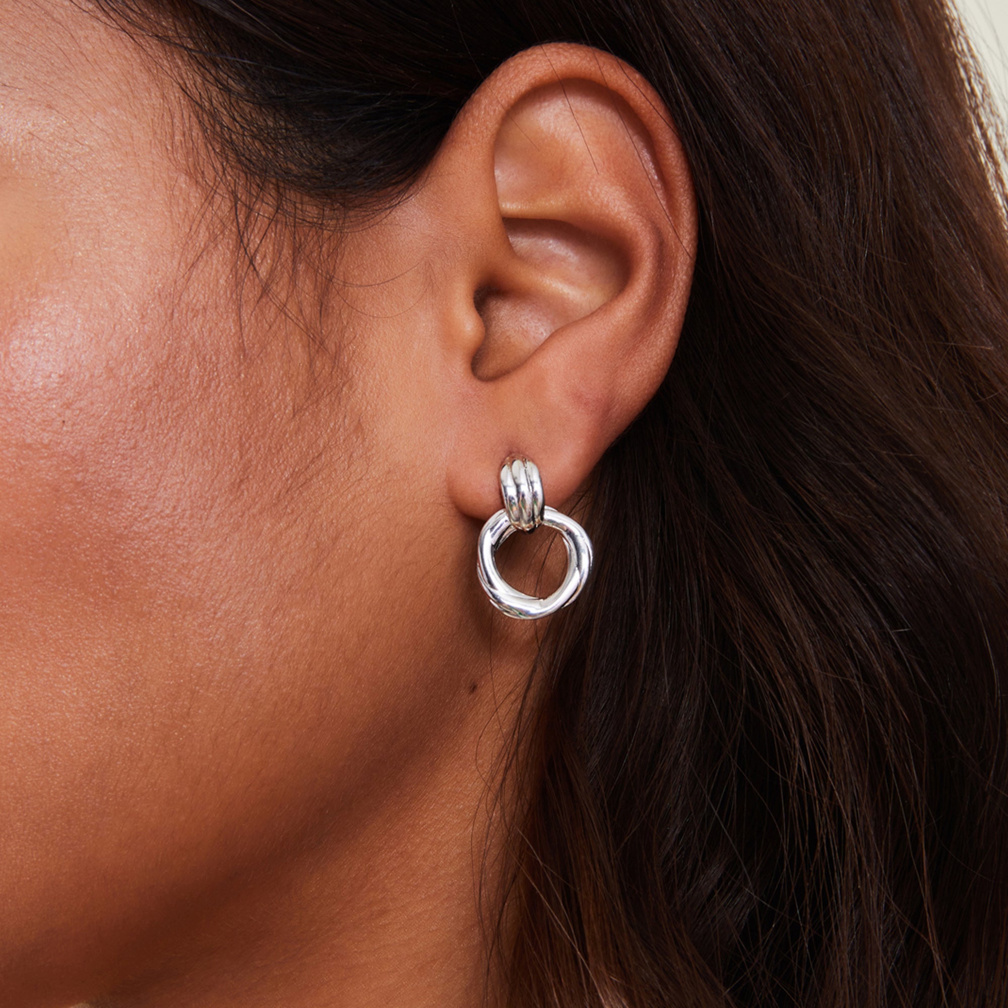 Designed In London, Part of the Sterling Silver Range. This product has Allergy free material with anti-tarnish coating. Crafted in sterling silver-plated metal, these stud earrings boast a layered door knocker design that's perfect for your every day jewellery edit. The Post and Back lock offers both security and ease of wear, providing a comfortable fit while keeping the earrings securely in place.