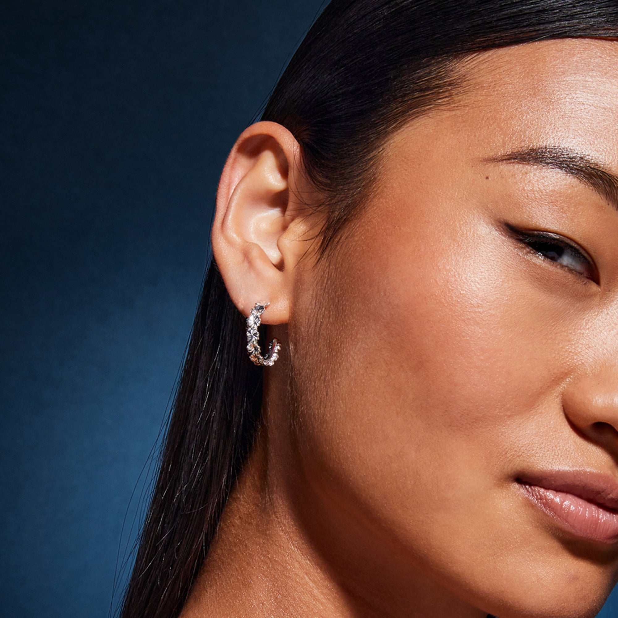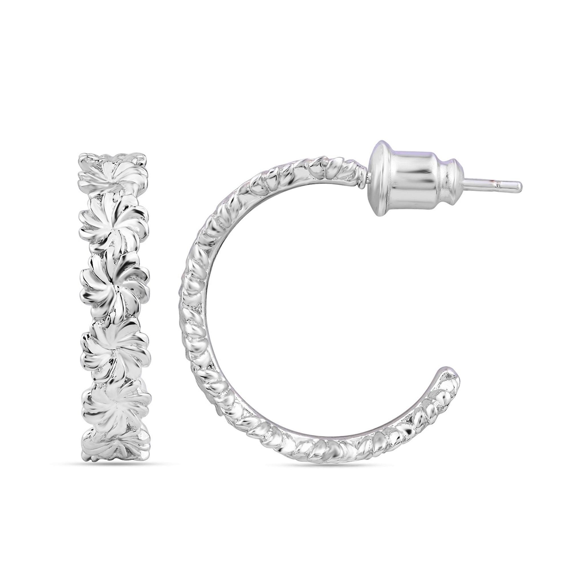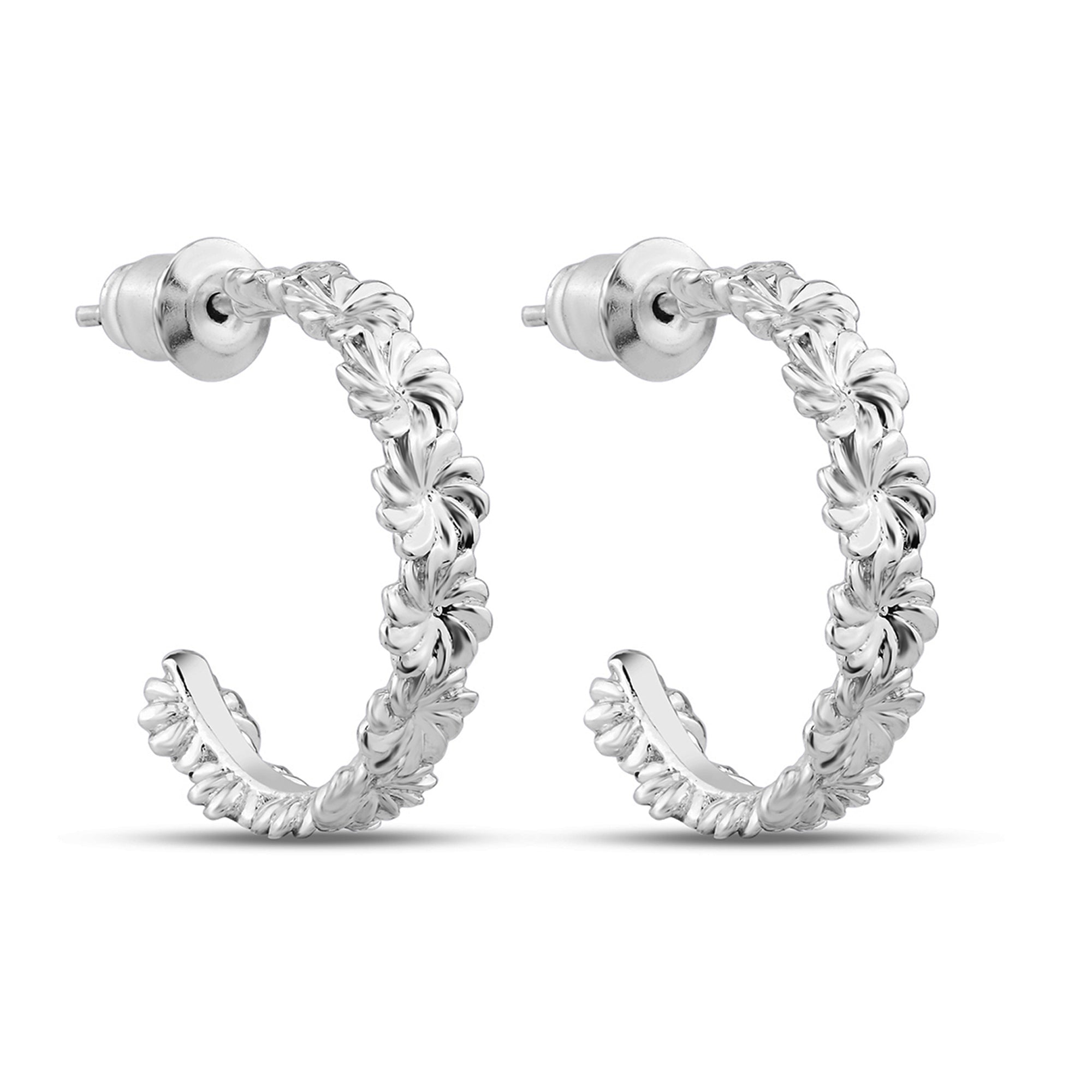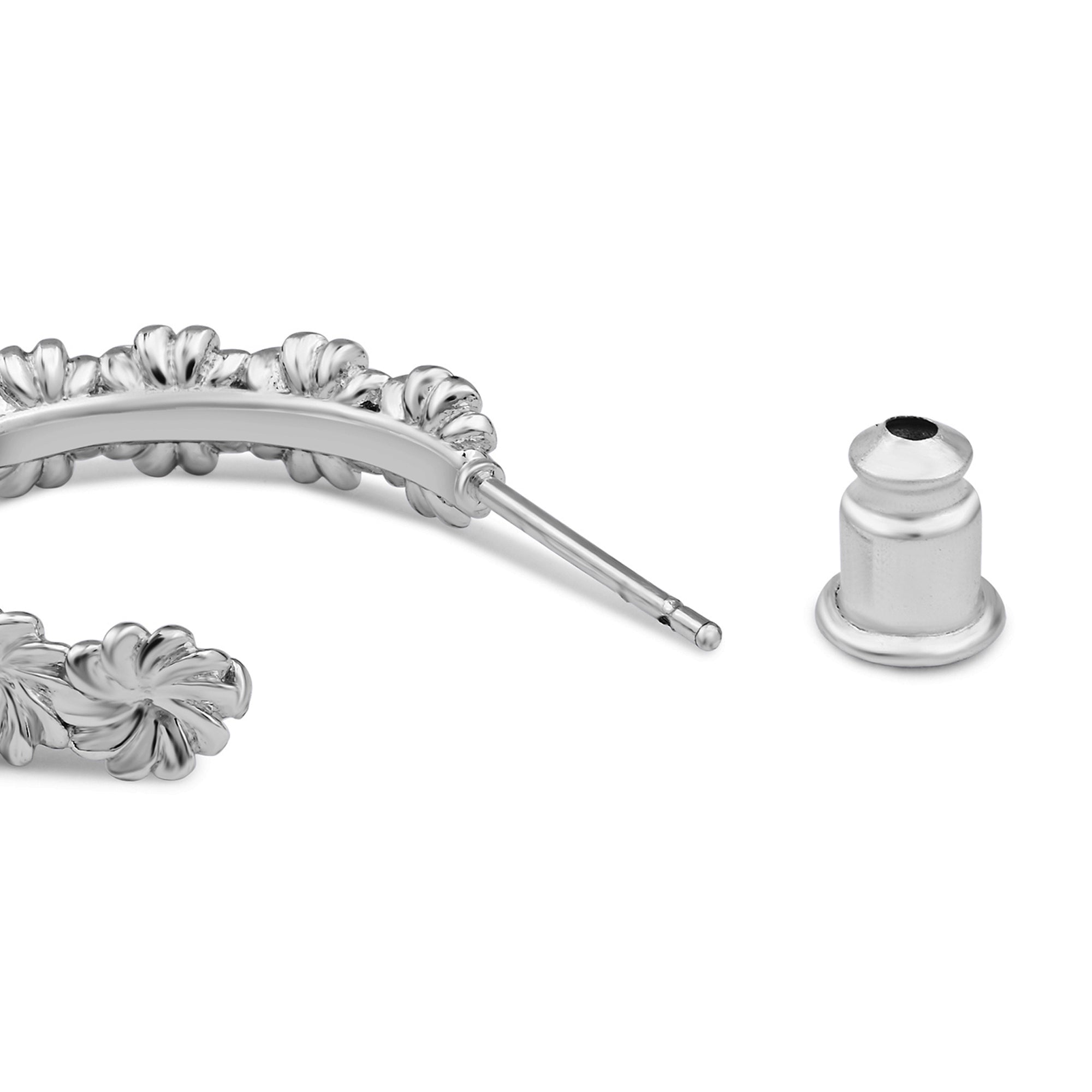 Designed In London, Part of the Sterling Silver Range. This product has Allergy free material with anti-tarnish coating. Add timelessly charming touches to your lobes with these hoop earrings. Reminiscent of daisy chains, they're plated with sterling silver for an extra-shiny finish. The Post and Back lock offers both security and ease of wear, providing a comfortable fit while keeping the earrings securely in place.