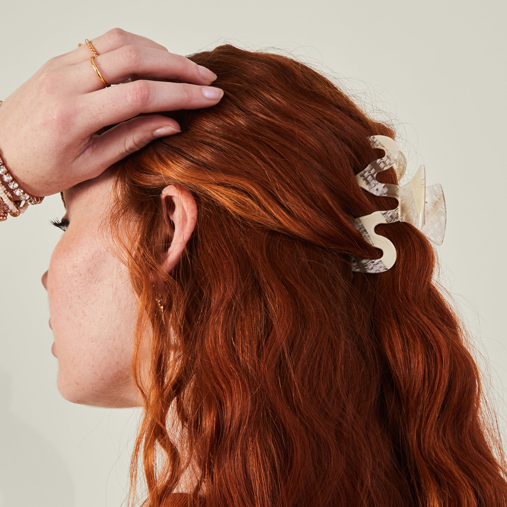 The claw clips for any occasion. Including one marble design and one geometric, keep these neutral beauties close by for half-up half-down dos.