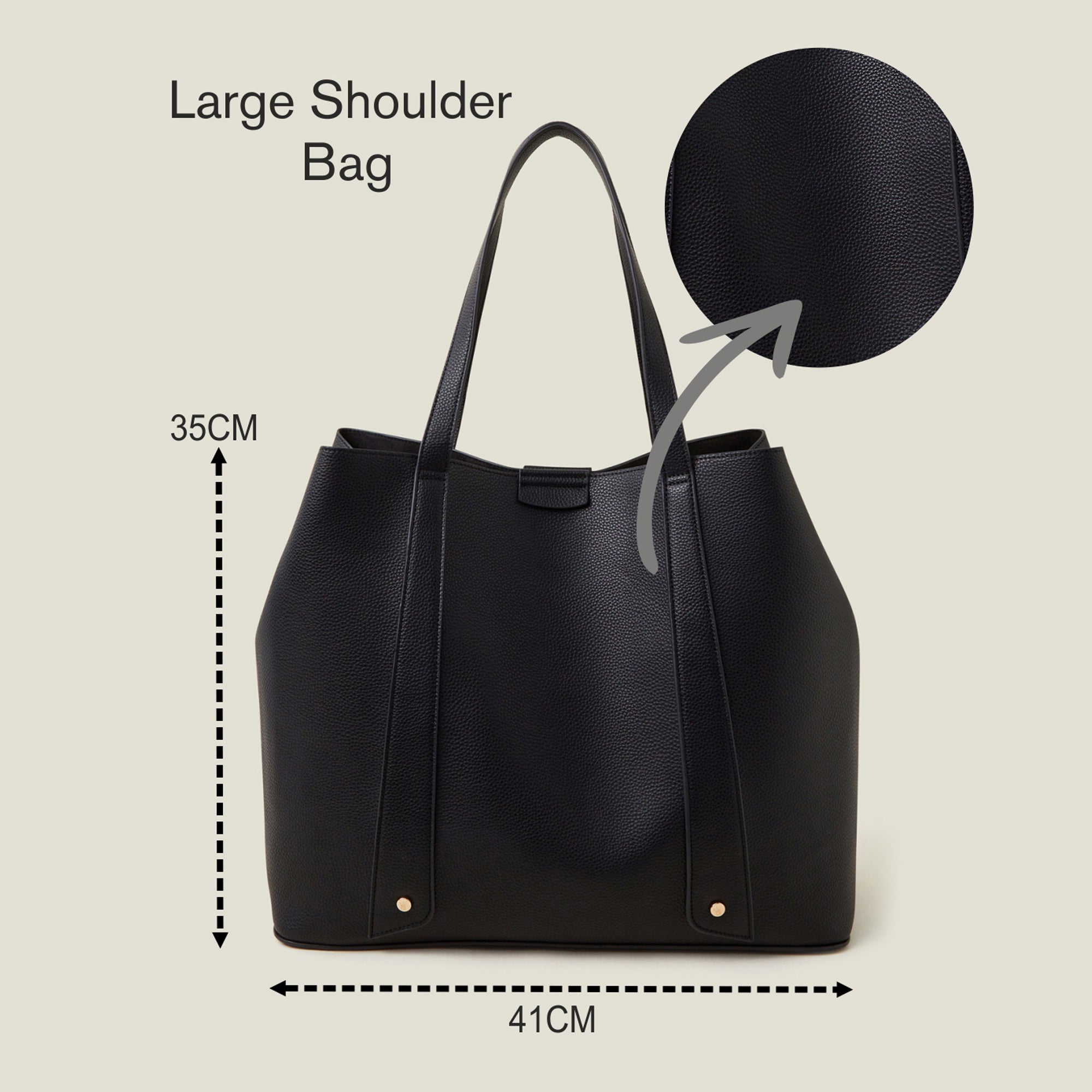 In soft, flexible faux leather, this shoulder bag was made to mould around your books, flask and purse. Its large size allows room for all your essentials, with long shoulder straps for comfort. Finished with an internal zip pocket and magnetic snap closure.