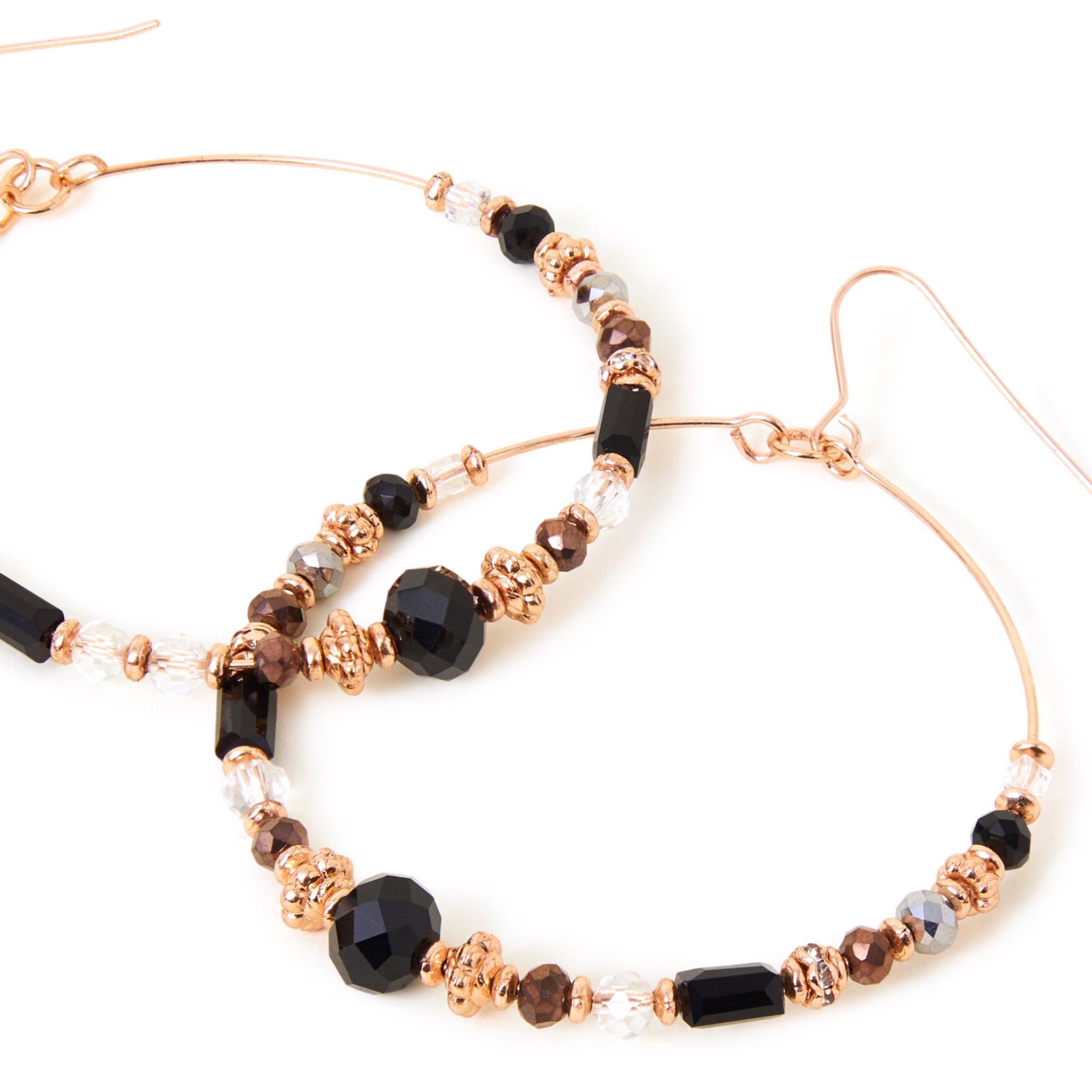 Accessorize London Women's Black Large Beaded Hoop Earrings