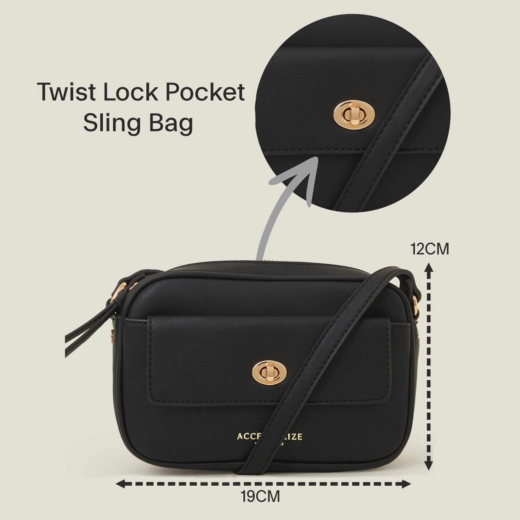 Accessorize London Women's Black Twist Lock Pocket Sling Bag