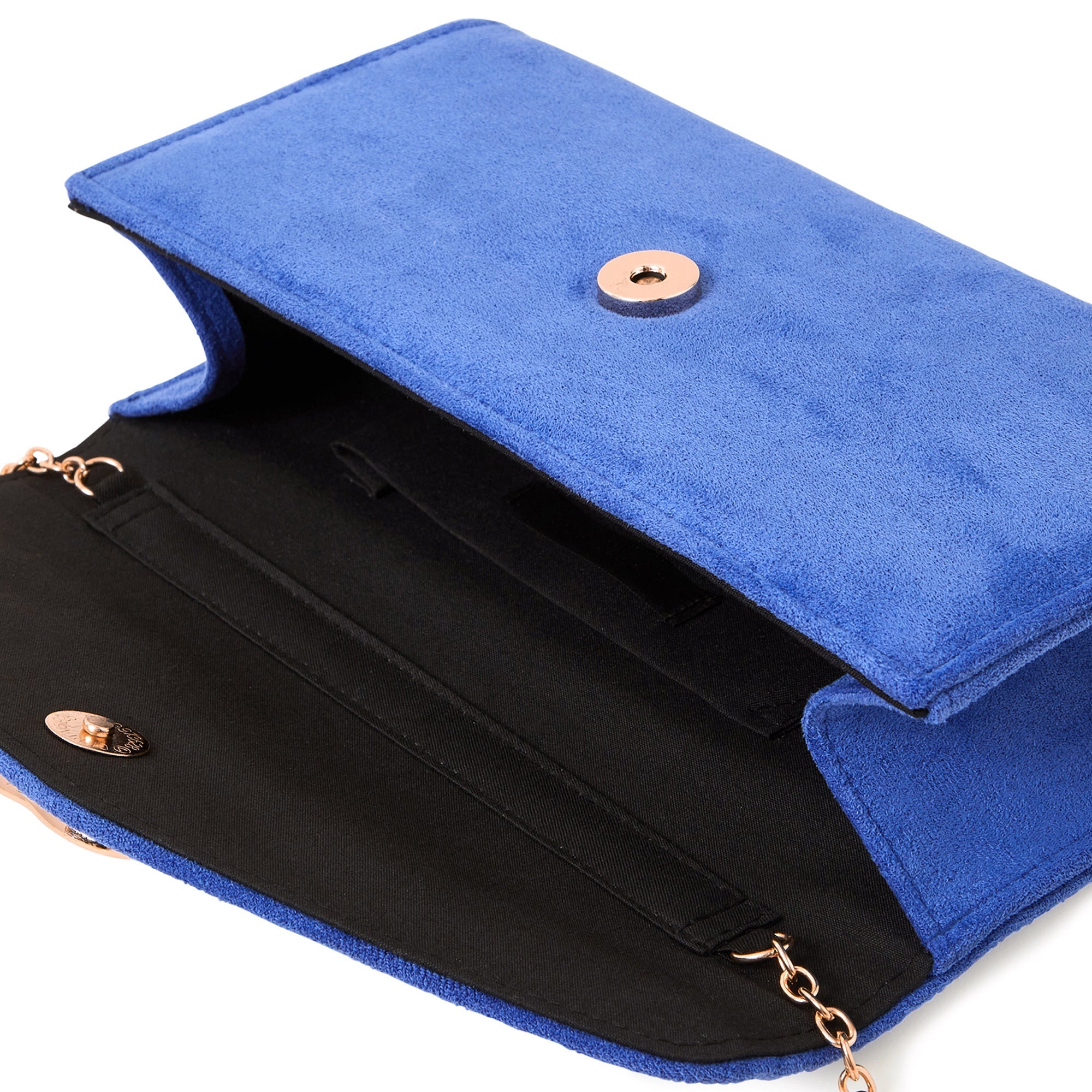 Accessorize London Women's Blue Suedette Box Clutch Bag