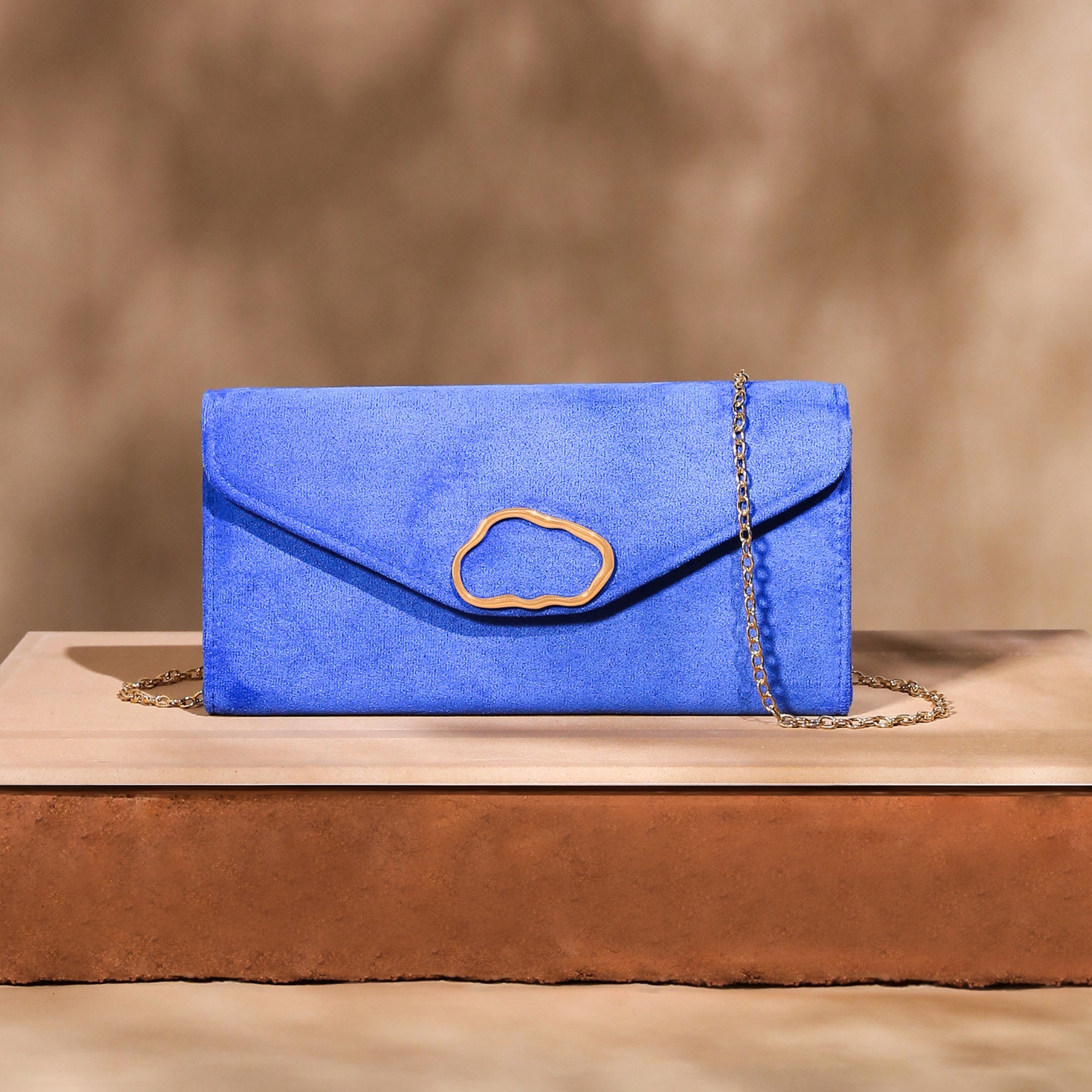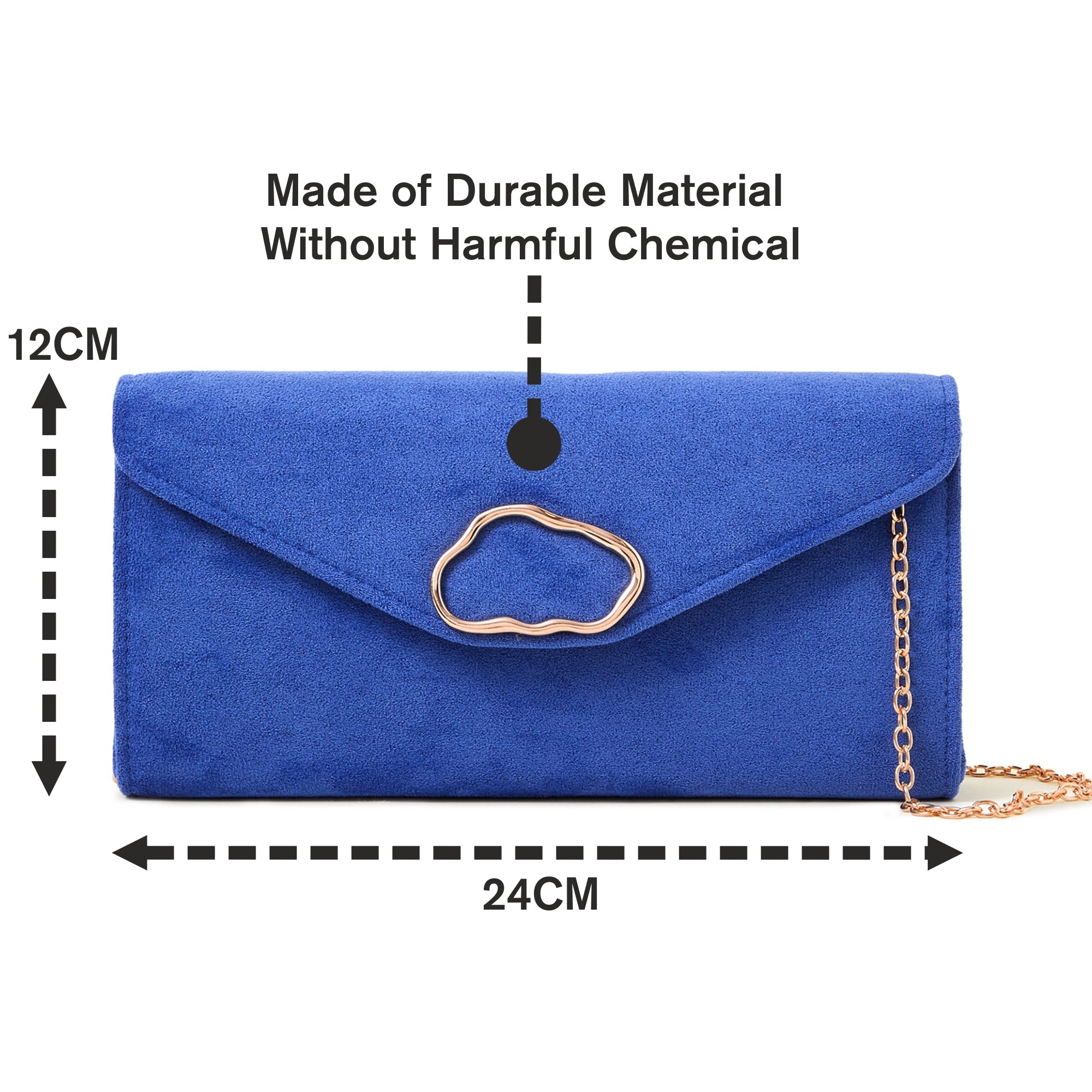 For your evening edit. This clutch bag gives off maximum opulence with its soft, faux suede exterior and molten detail to the front. It features a small compartment inside, a magnetic popper fastener, and a chain strap that can be tucked in or styled over the shoulders