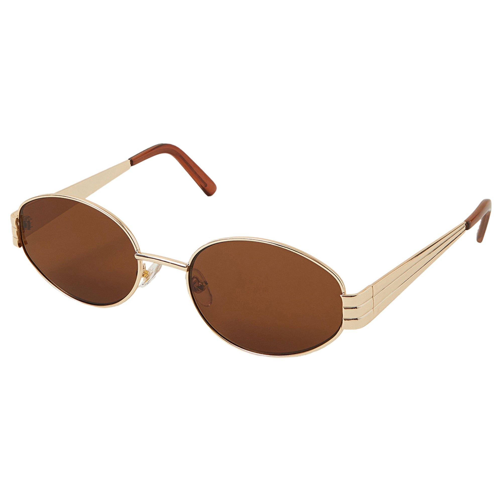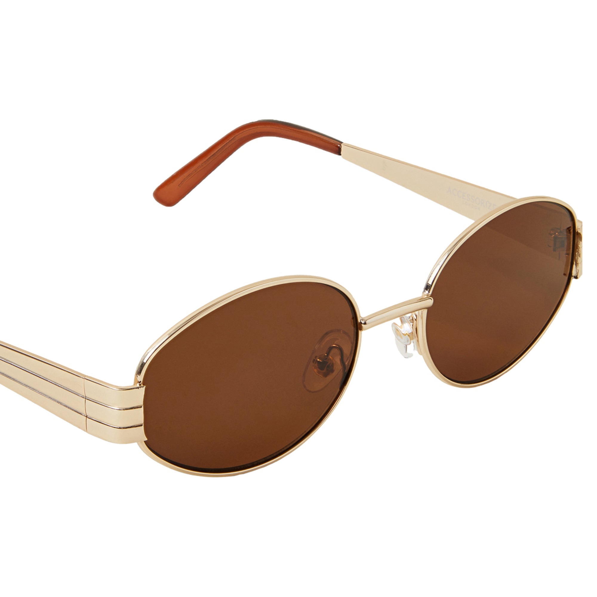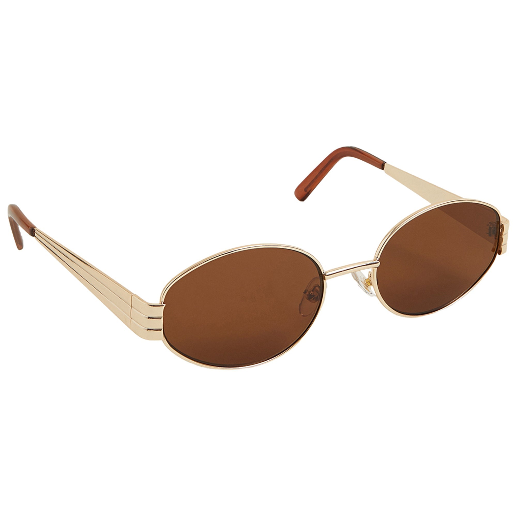 90s vibes. Designed with oval frames, these sunnies feature tinted brown lenses and gold-tone metal arms.