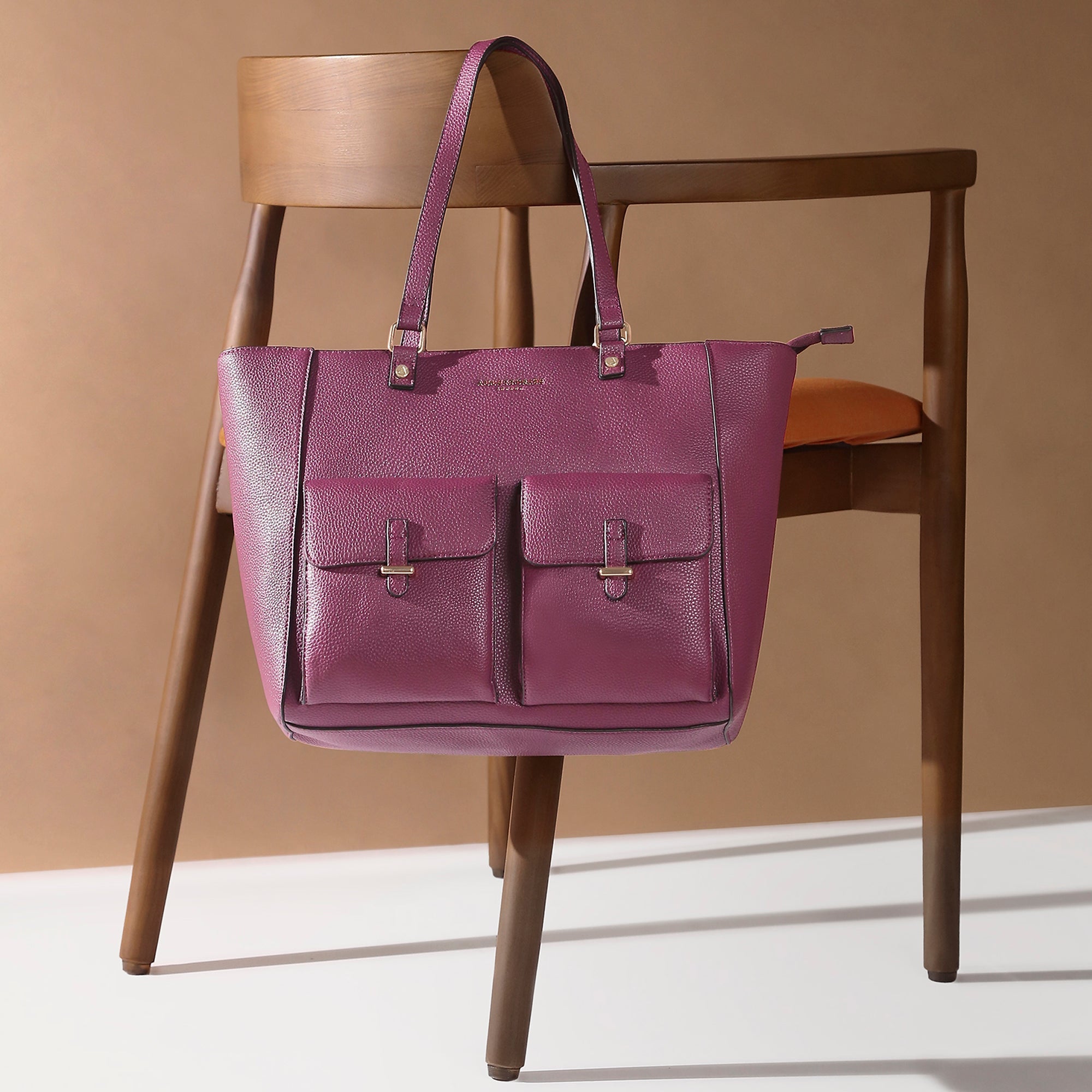 These Synthetic leather Large tote bag , With Two front pockets with snap magnet closure, Metallic top zip closure, Large inner compartment with one zip pocket & 2 slip pocket , Metallic back zip pocket,
