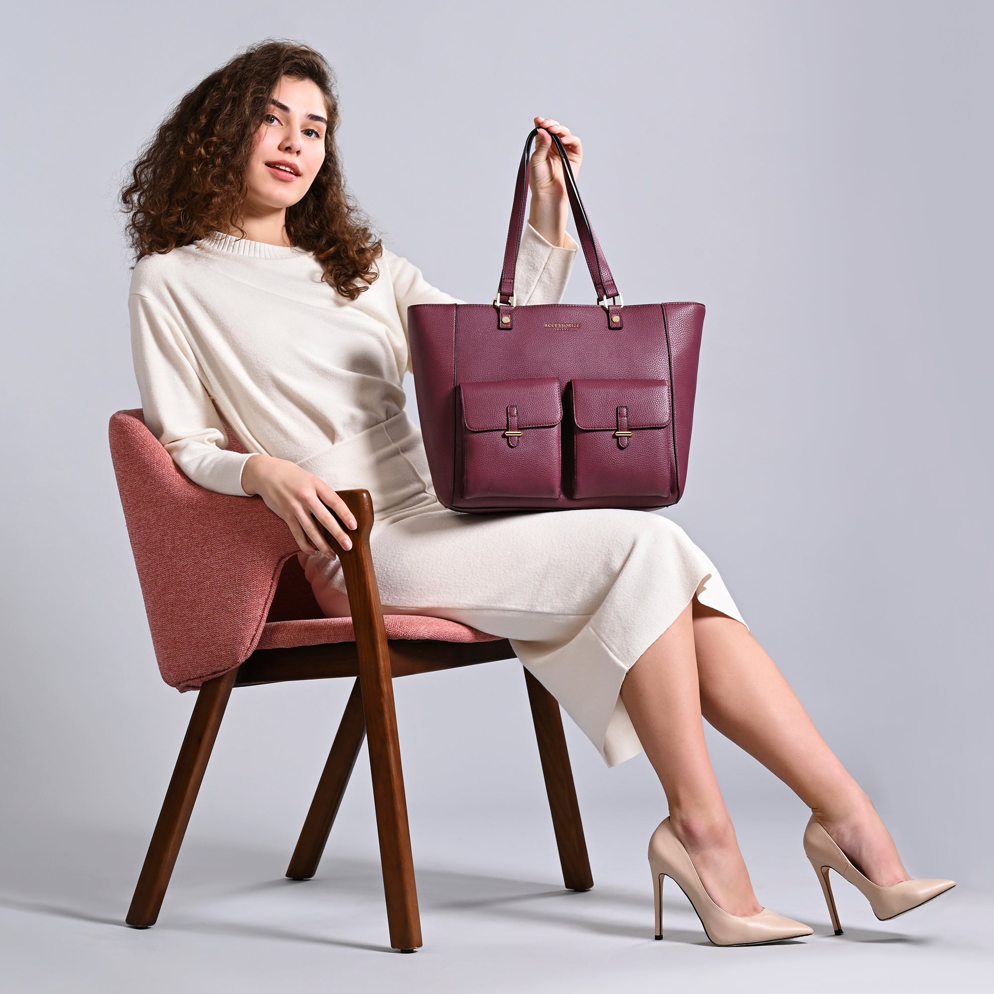 Accessorize London Women's Burgundy Dana Tote Bag