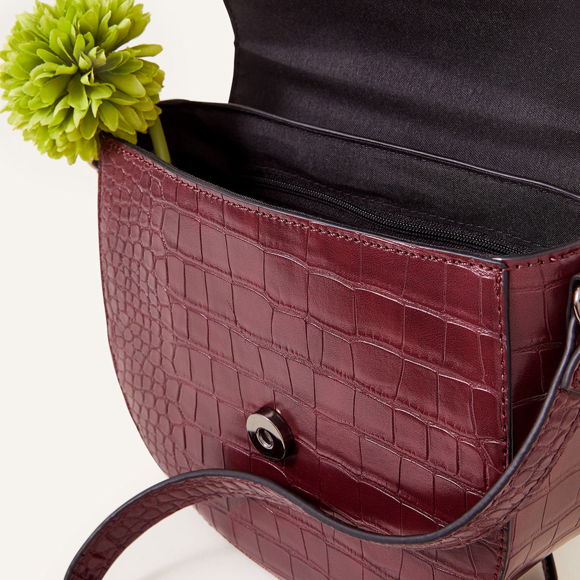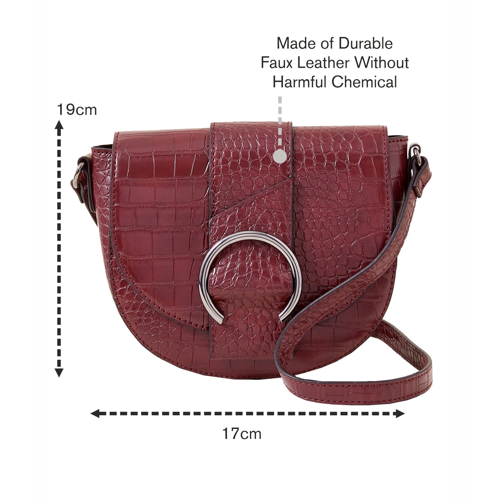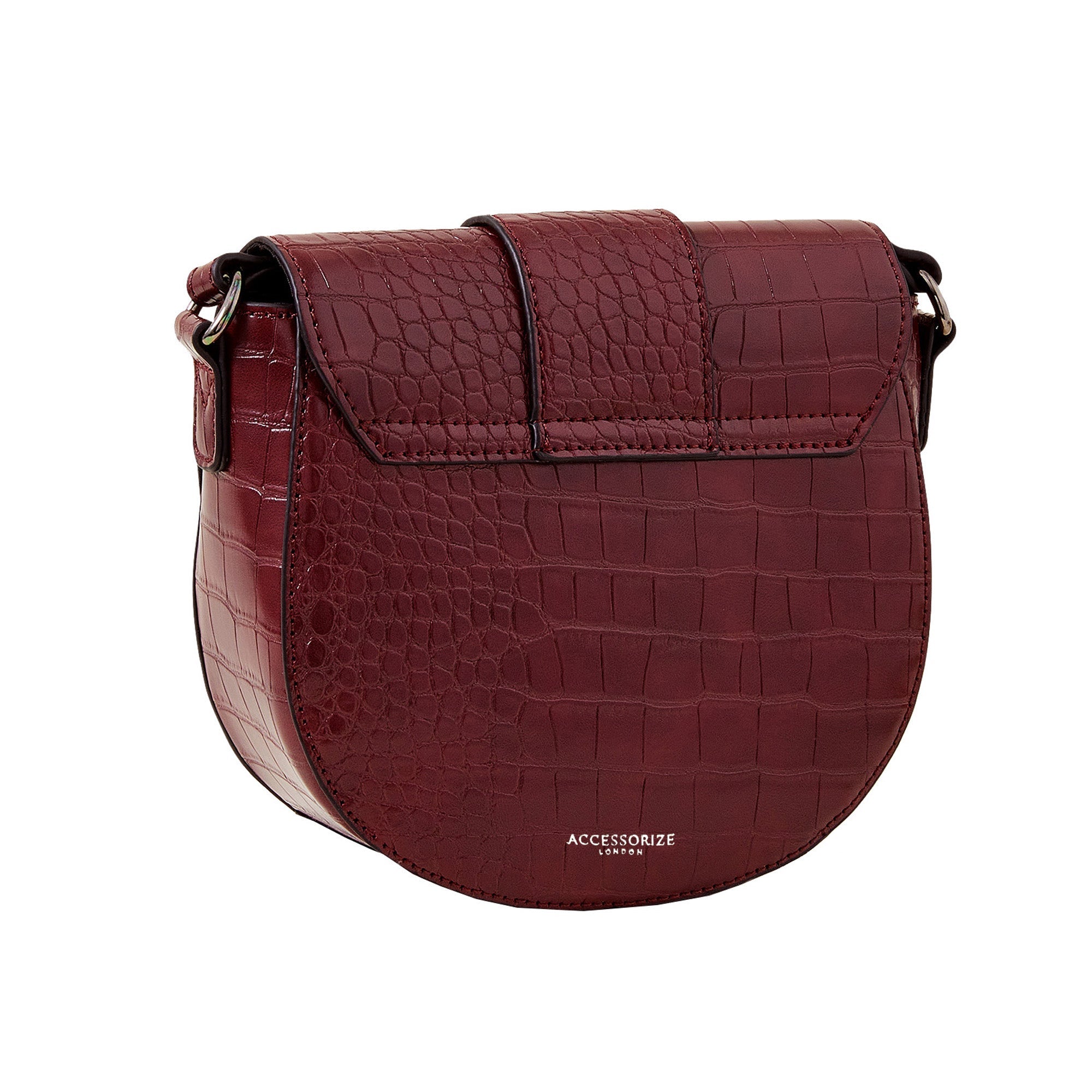 Accessorize London Women's Burgundy Faux Croc Ring Detail Saddle Bag