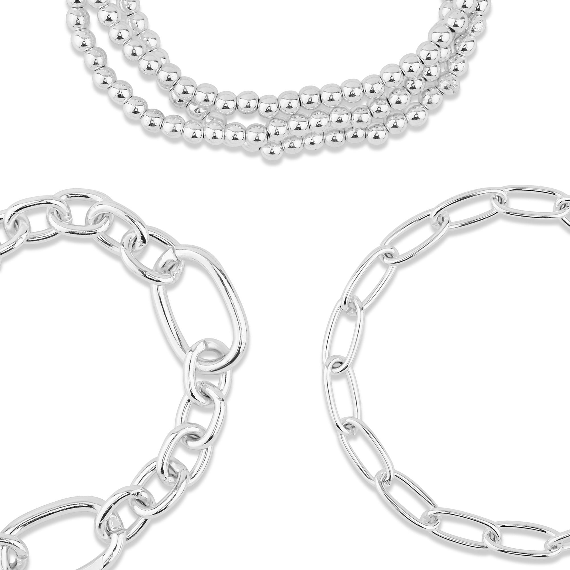 Accessorize London Women's Chain And Stretch Beaded Bracelets 5 Pack Silver