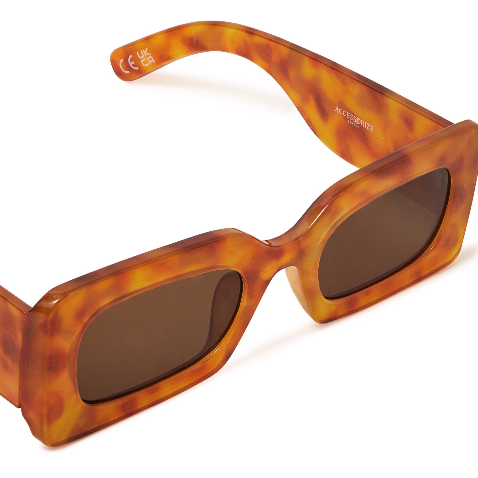 Accessorize London Women's Chunky Amber Rectangle Sunglasses