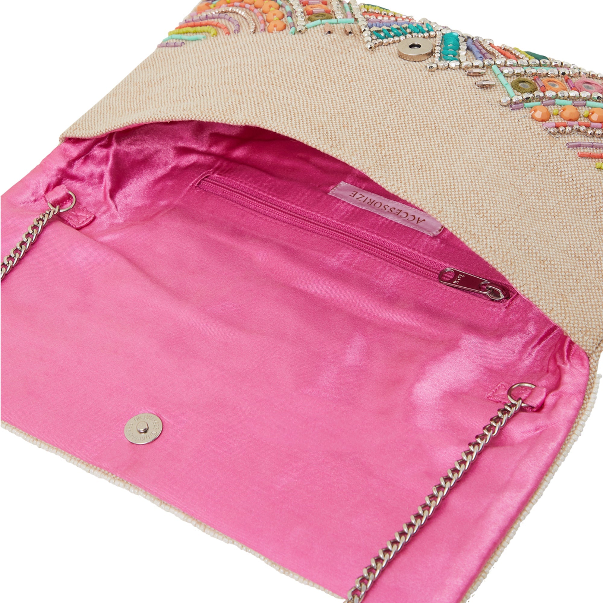 Accessorize London Women's Cream Beaded Mirror Clutch Bag
