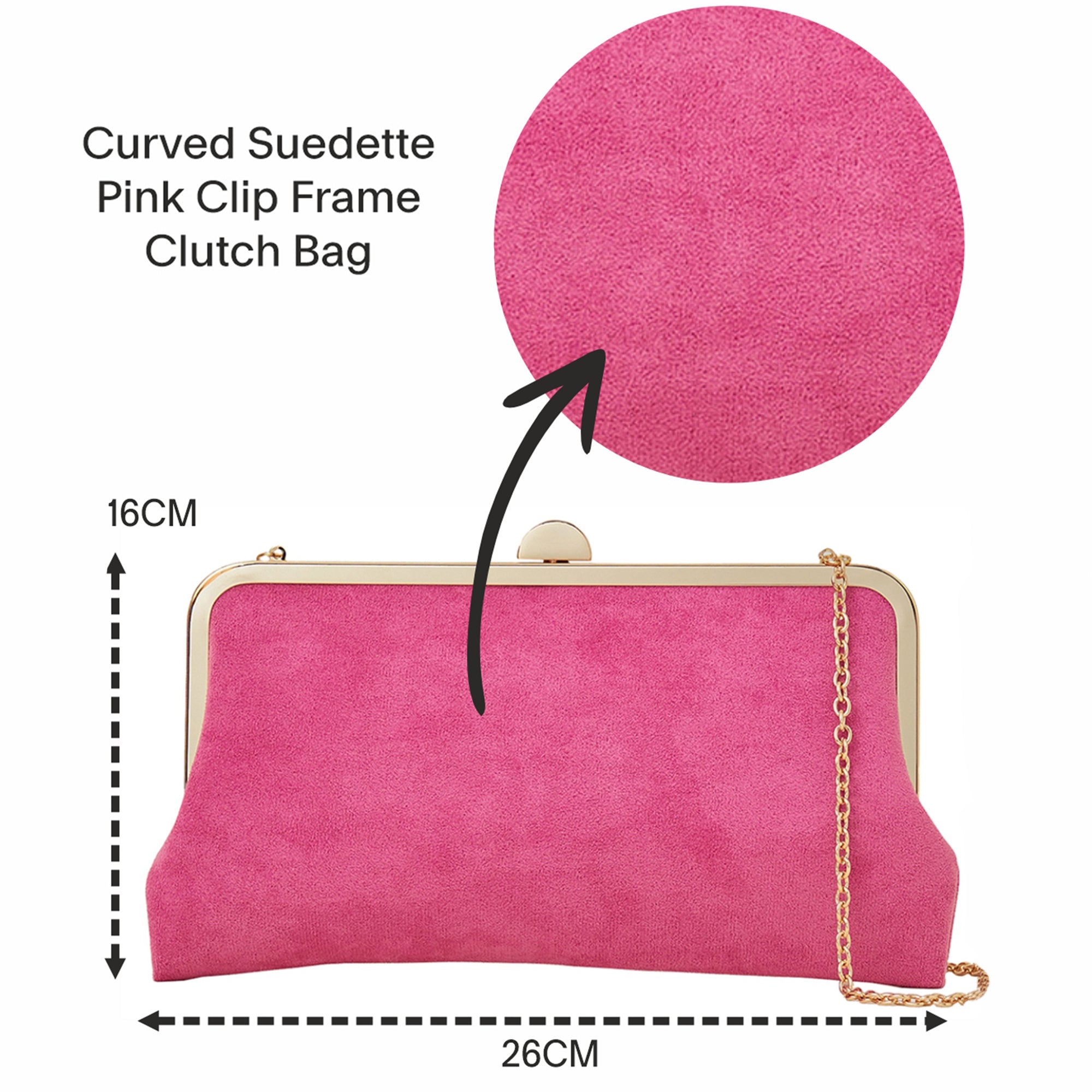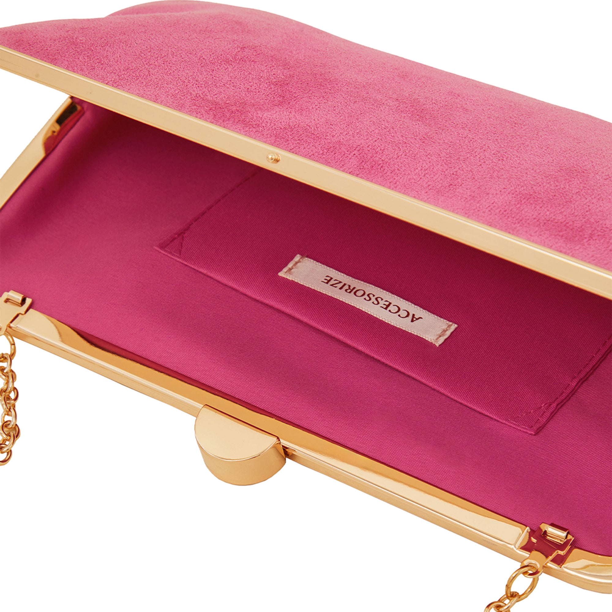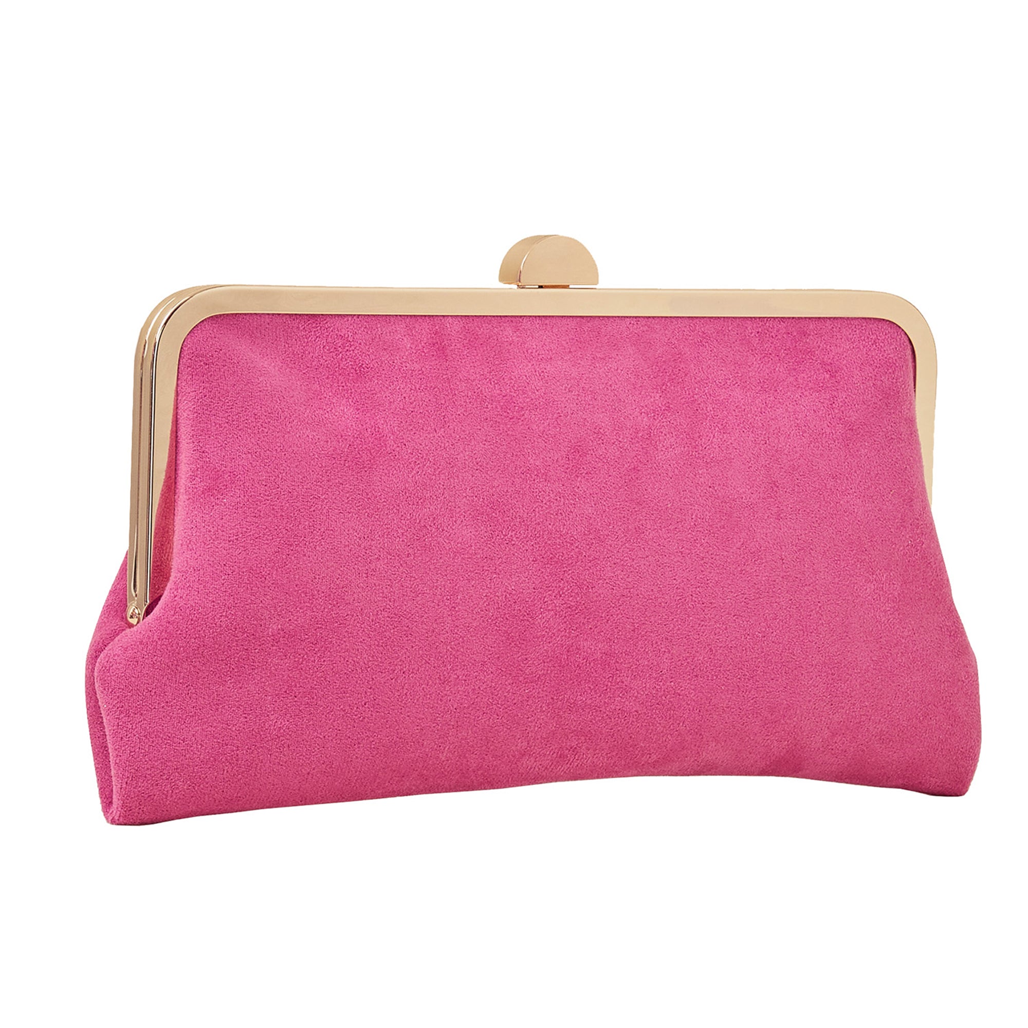 Accessorize London Women's Curved Pink Suedette Clip Frame Clutch Bag