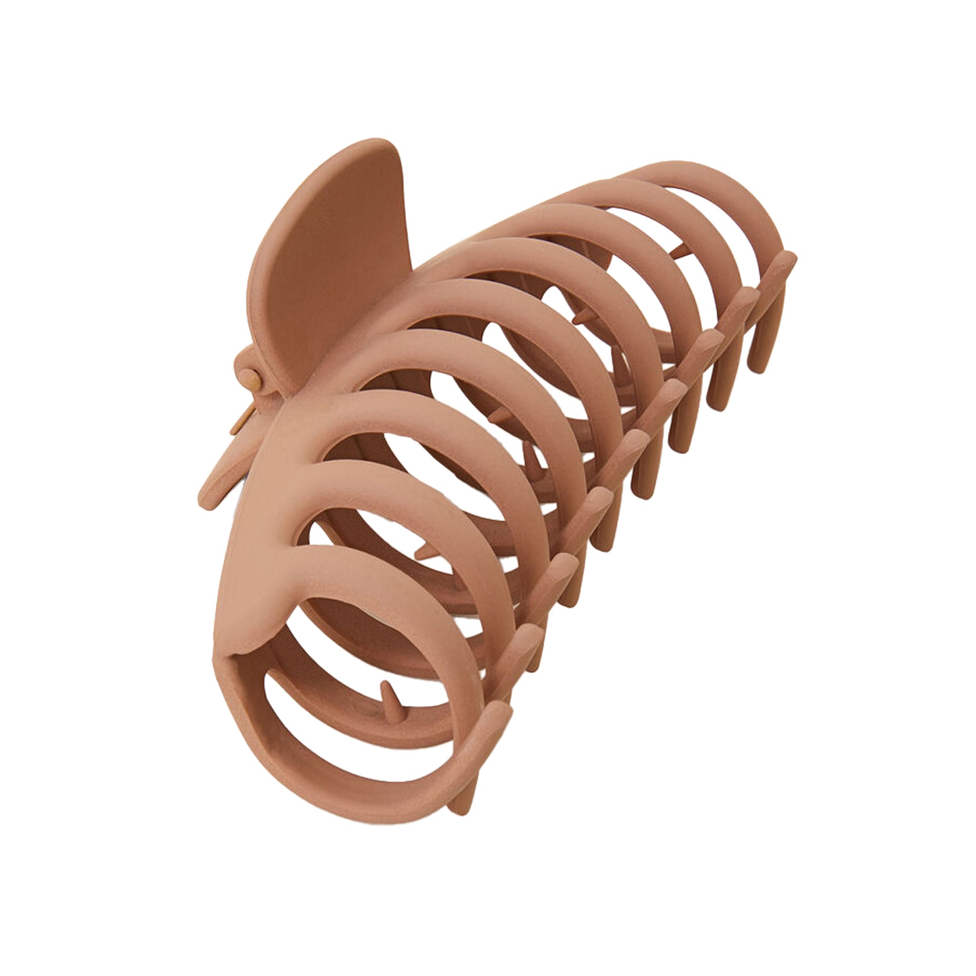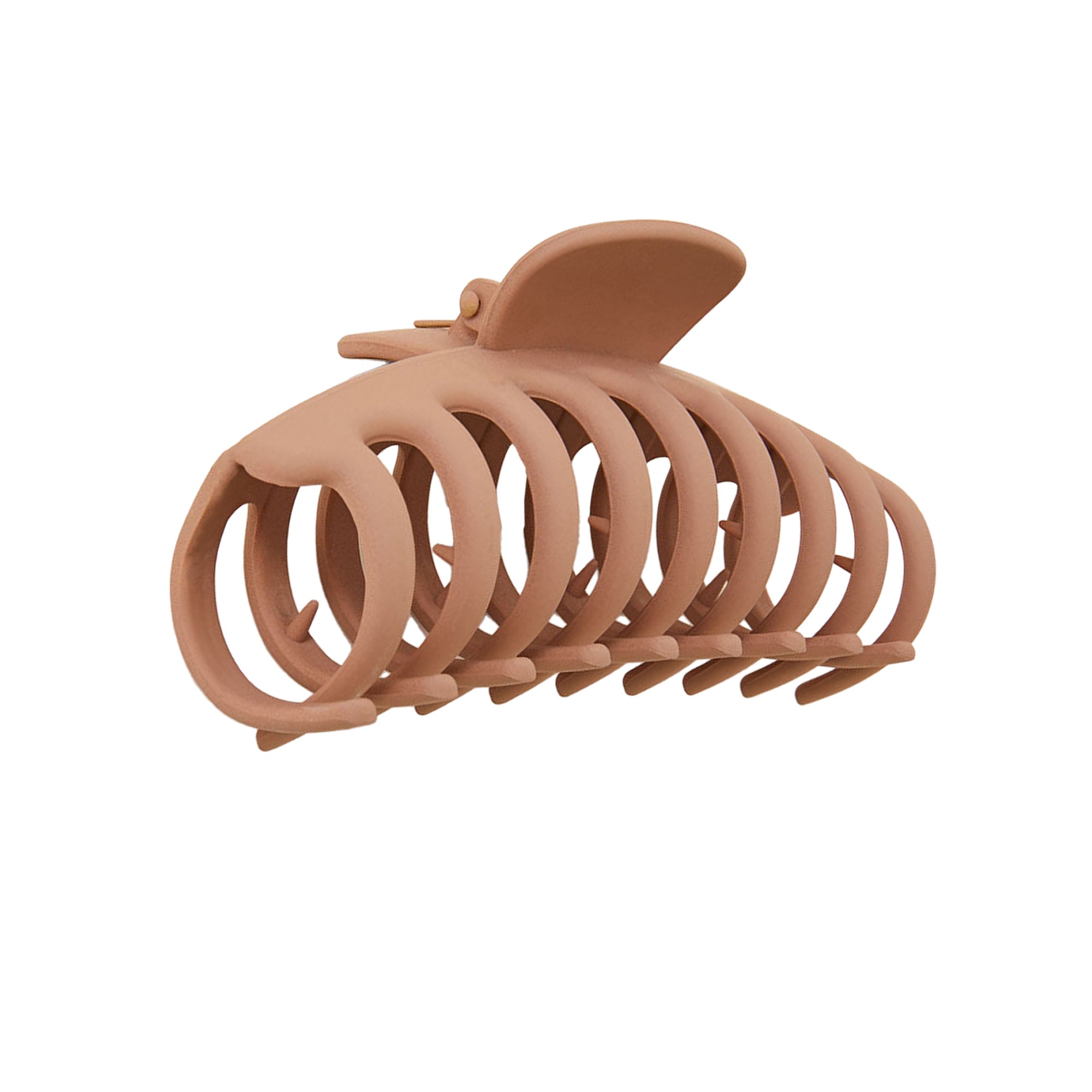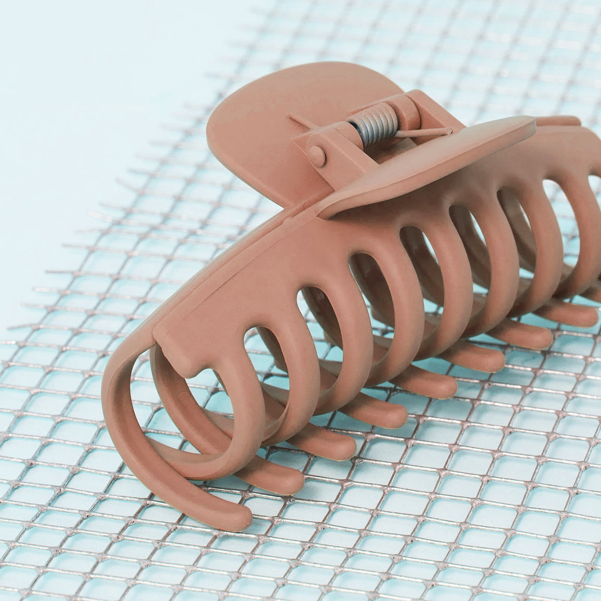 Matching your claw clip to your morning coffee: this sweet piece is large in size and finished in a matte mocha hue. Perfect for those with long hair.