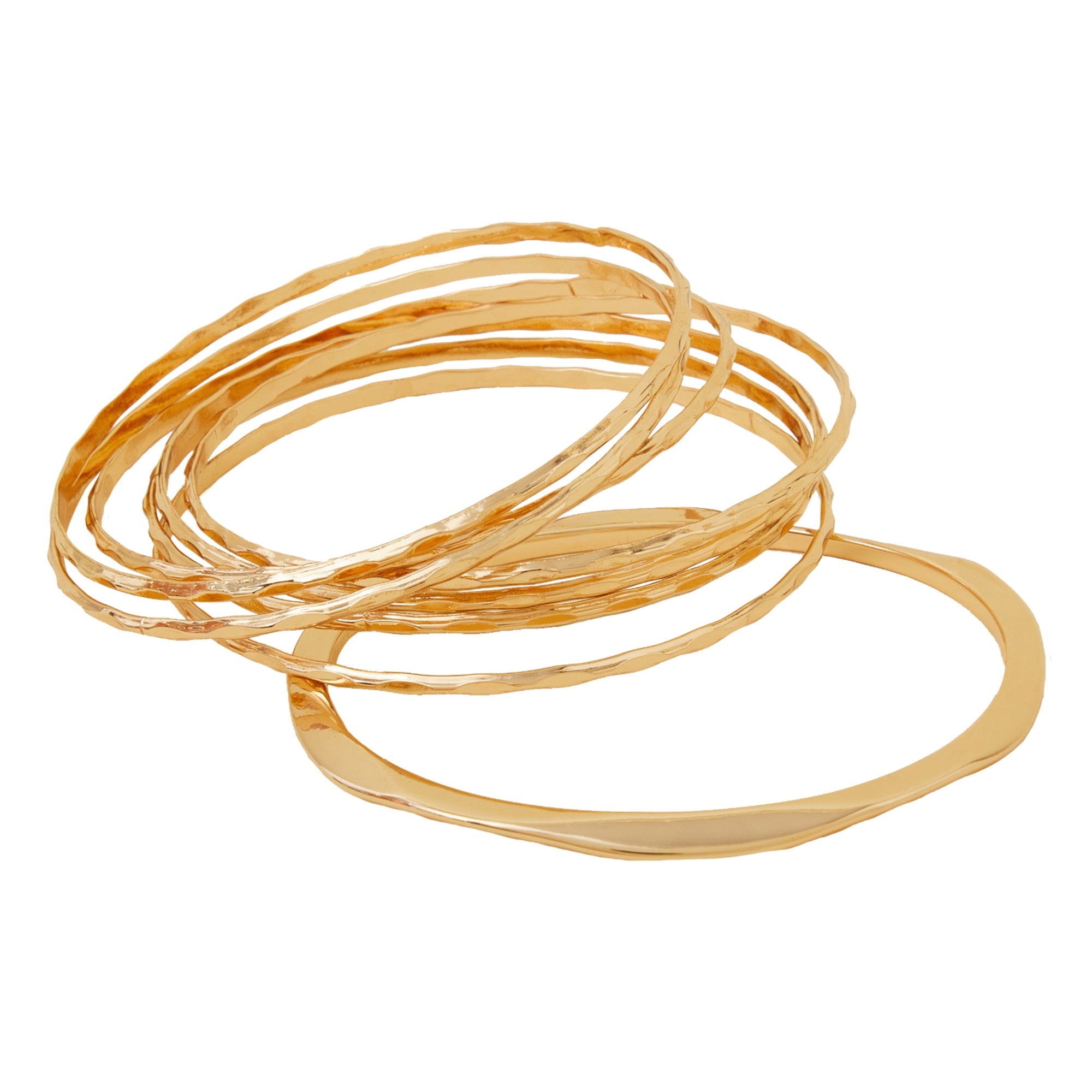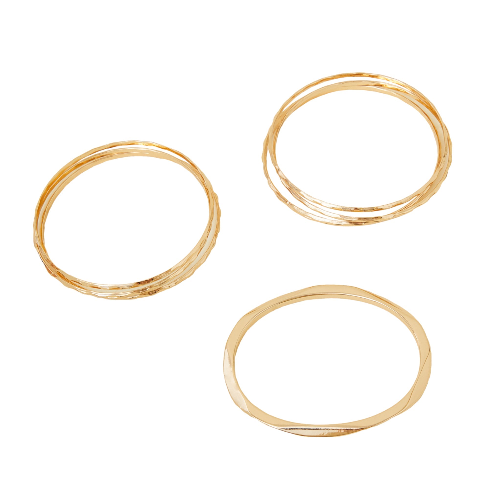 Leave the stacking to us with this simple set. Designed in gold-tone metal, these bracelets feature a textured design for a contemporary touch. Eight included.