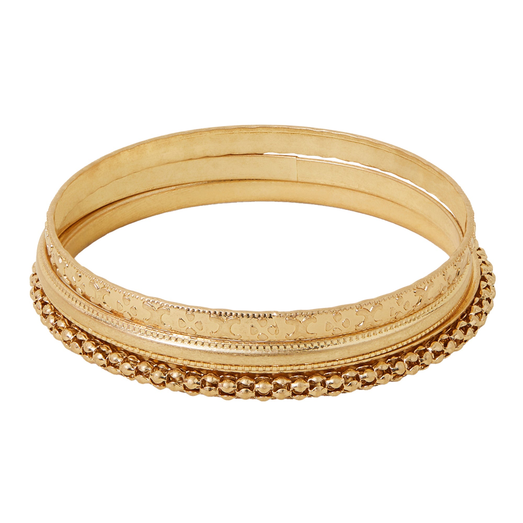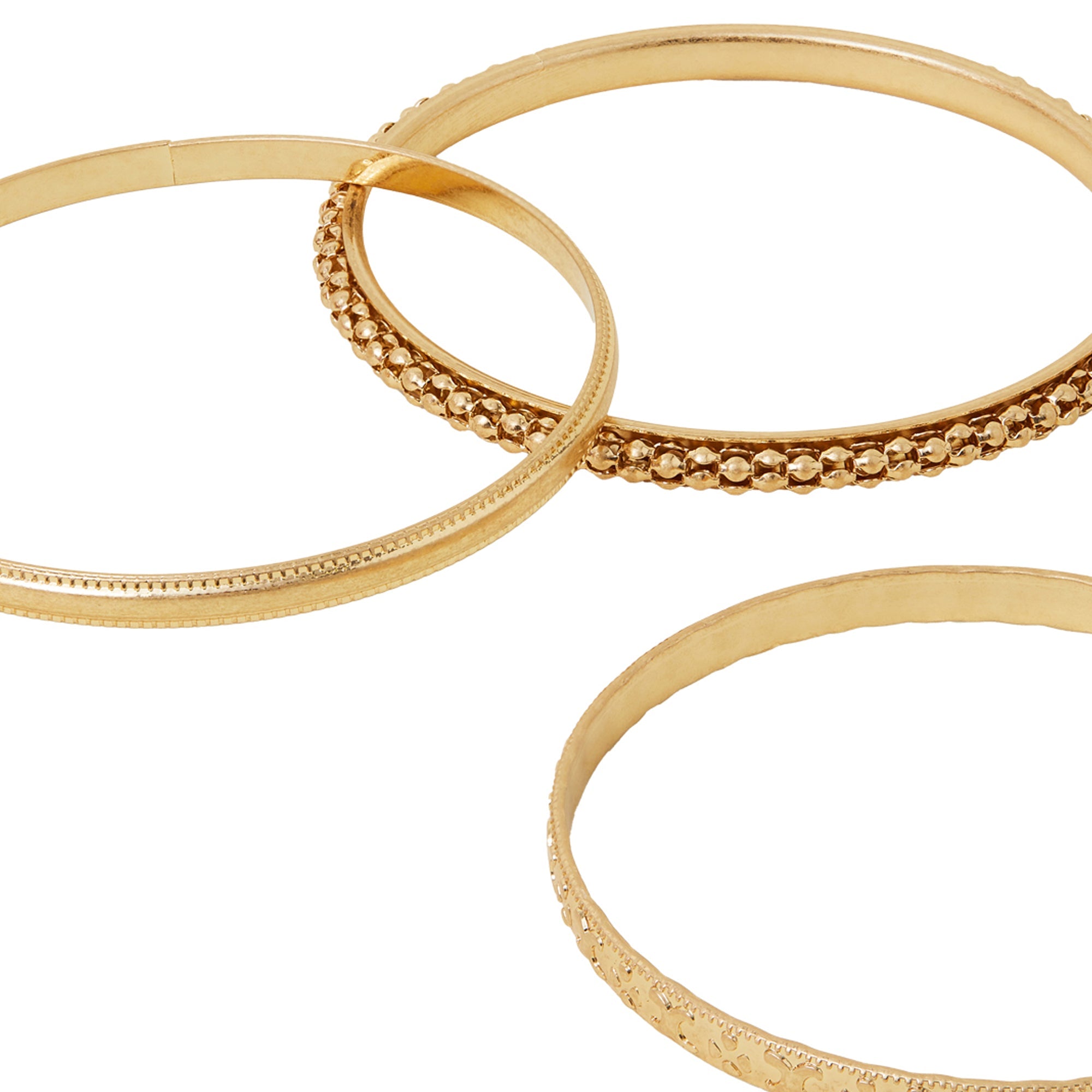 Go all the way with your bracelet stack and opt for this set, comprised of three individually designed bangles in gold-tone metal.