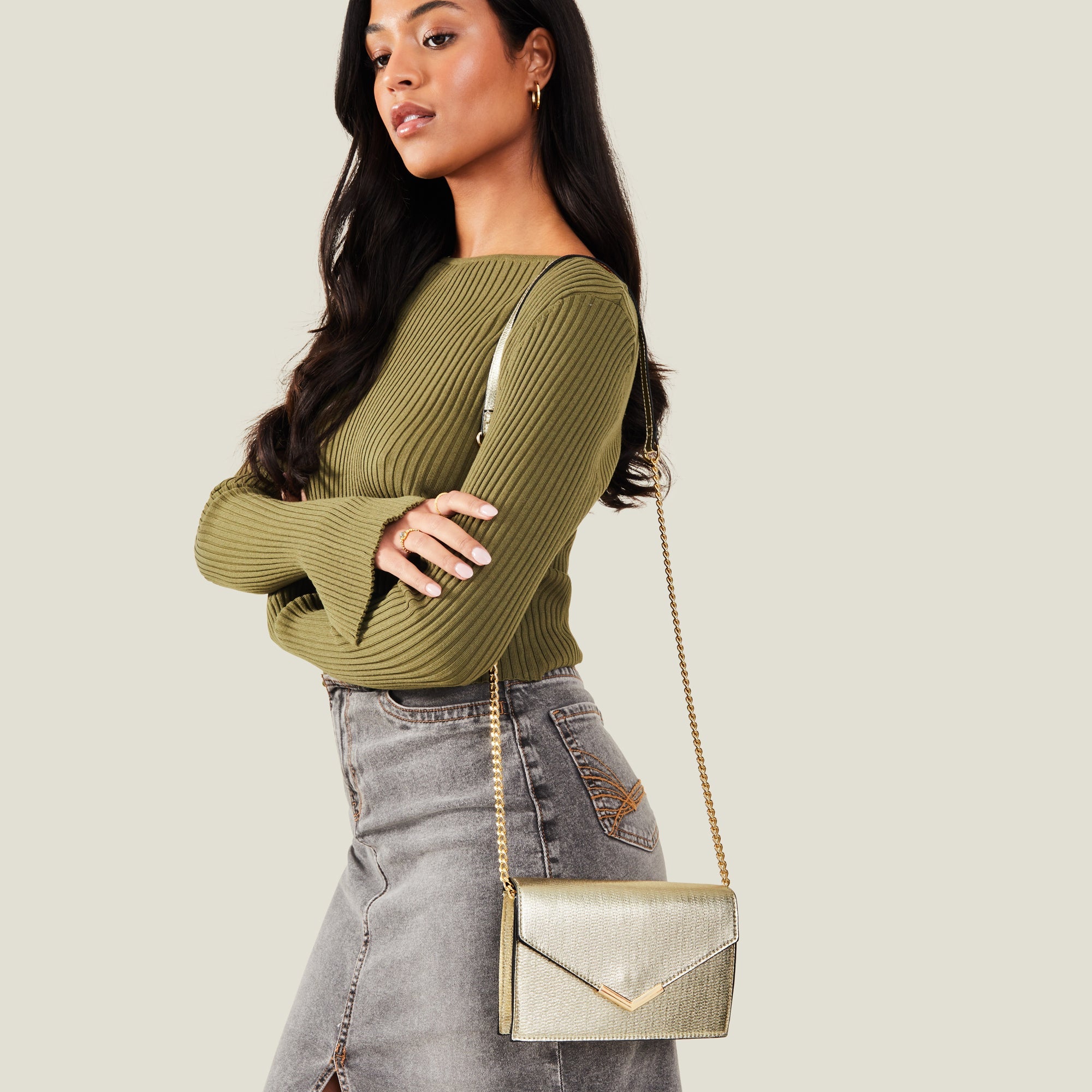 Accessorize London Women's Gold Envelope Sling Bag