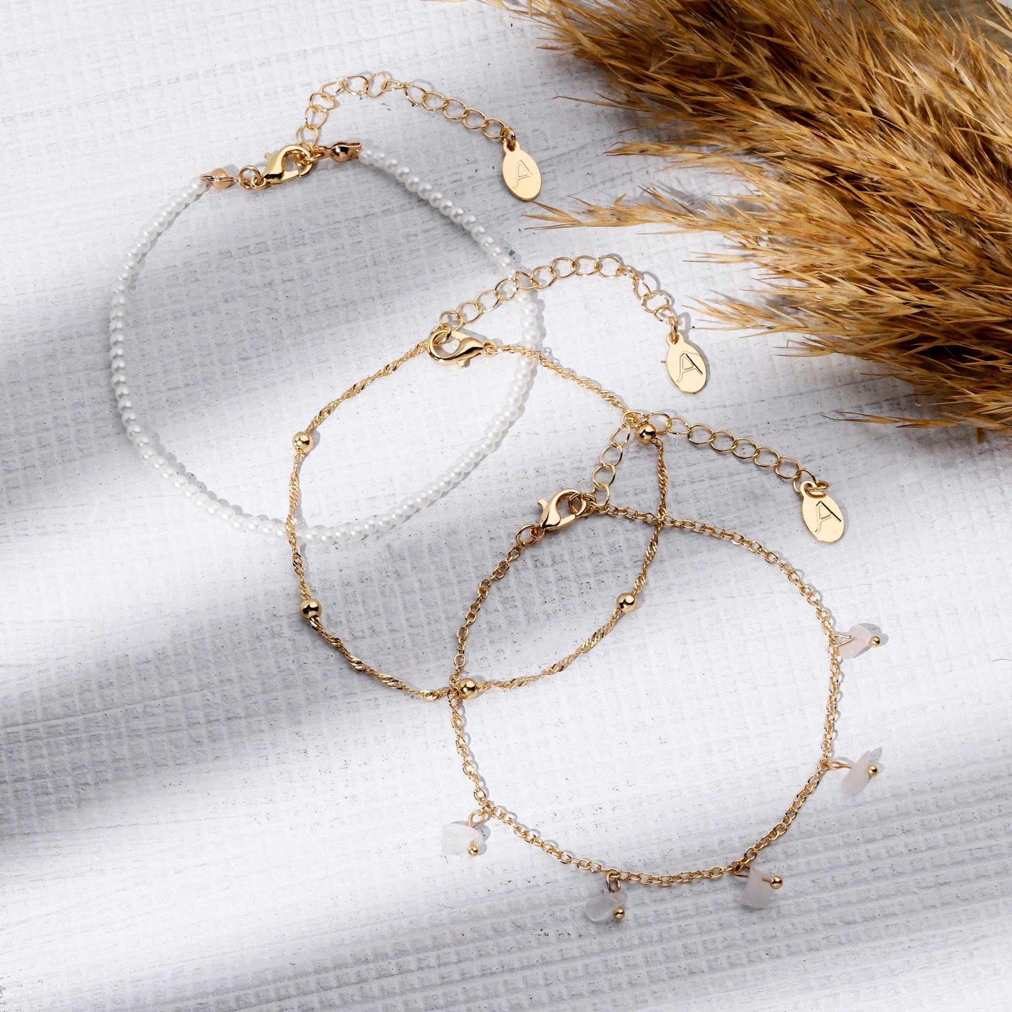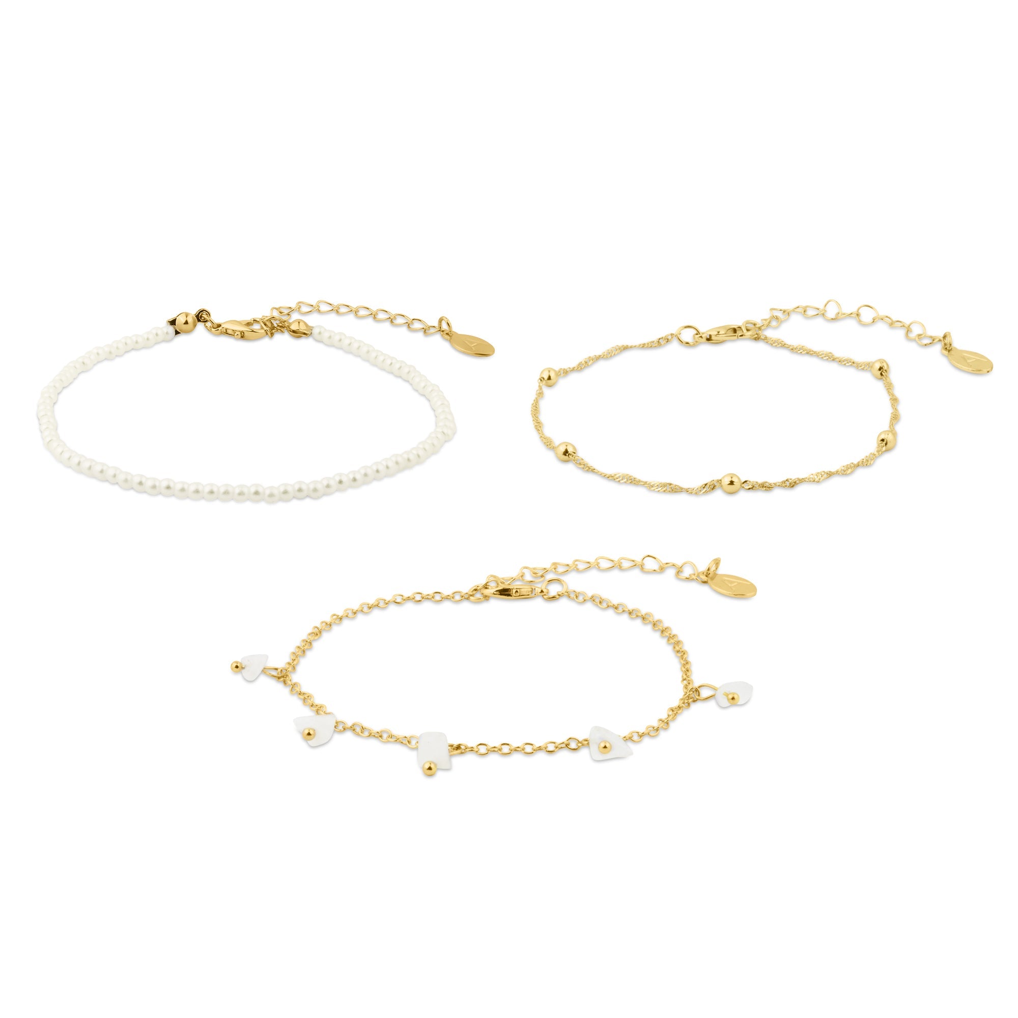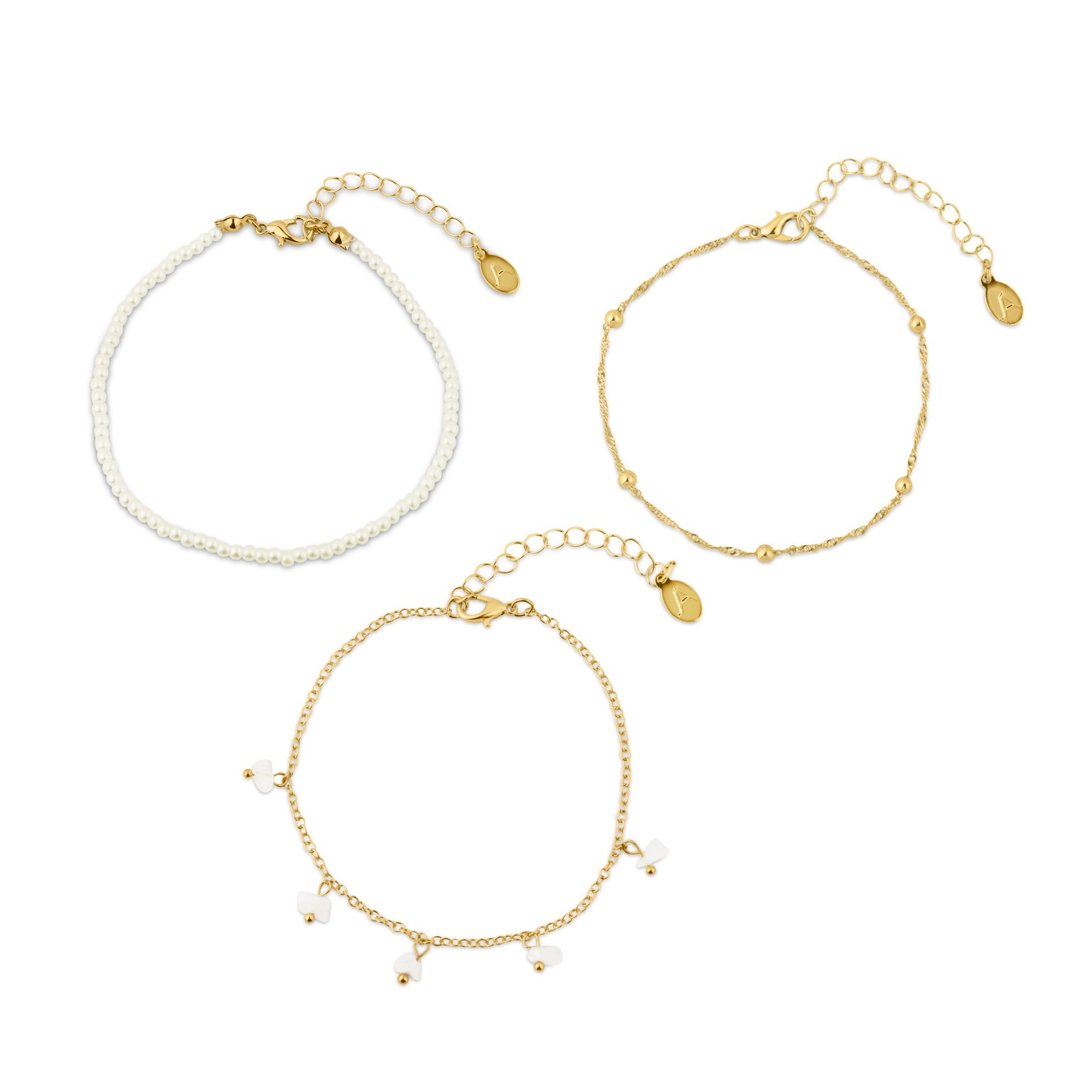 Accessorize London Women's Gold Faux Pearl Stone Anklets Pack Of 3